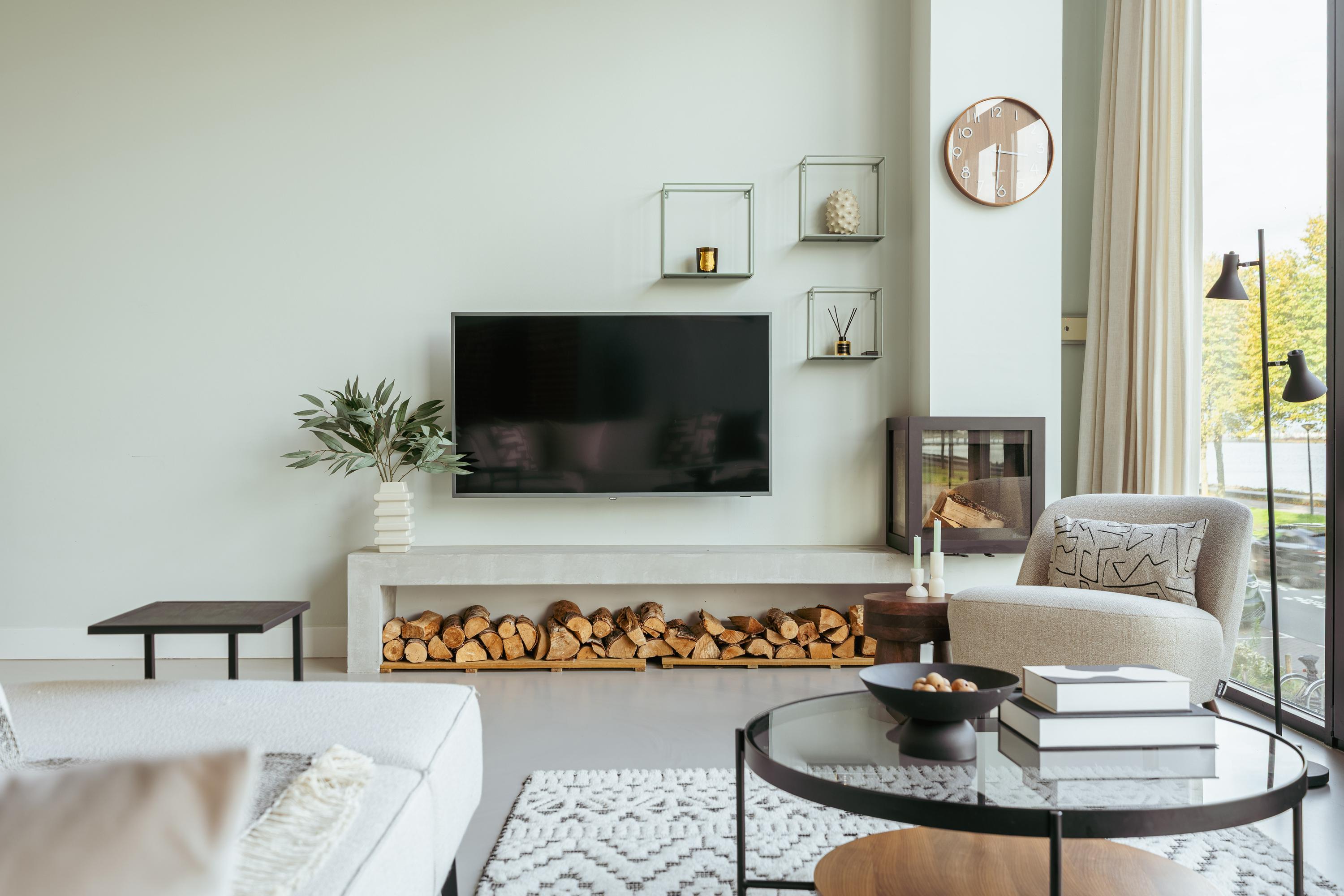 Aangrenzend bevindt zich een sfeervolle tv- of bioscoopkamer, volledig geïsoleerd en voorzien van akoestische wandpanelen — de ideale plek voor een filmavond of om ongestoord muziek te luisteren.