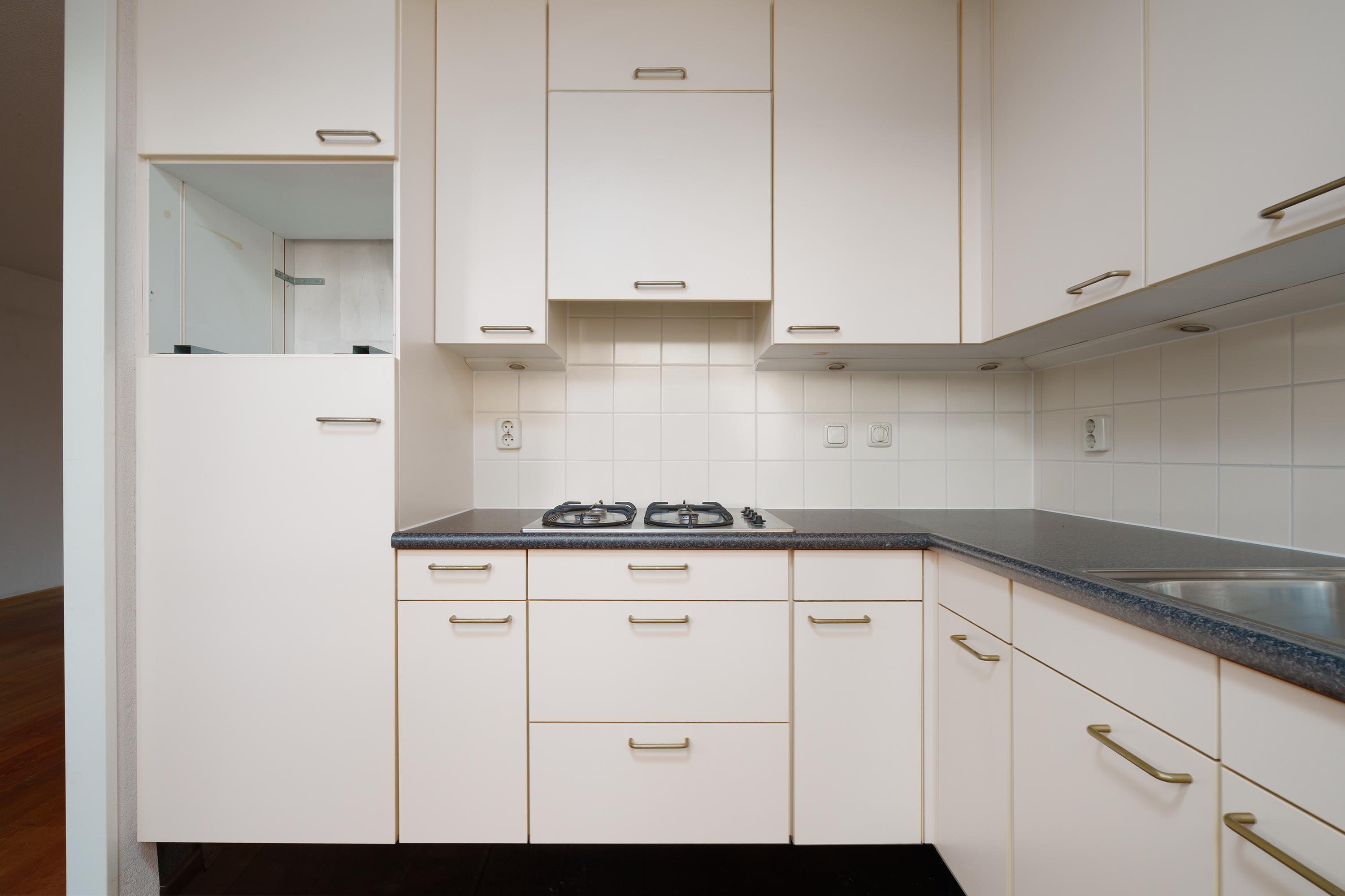Aan de keuken grenst het zéér ruime dakterras (circa 46 m²), ideaal voor zonnige dagen en lange avonden buiten.