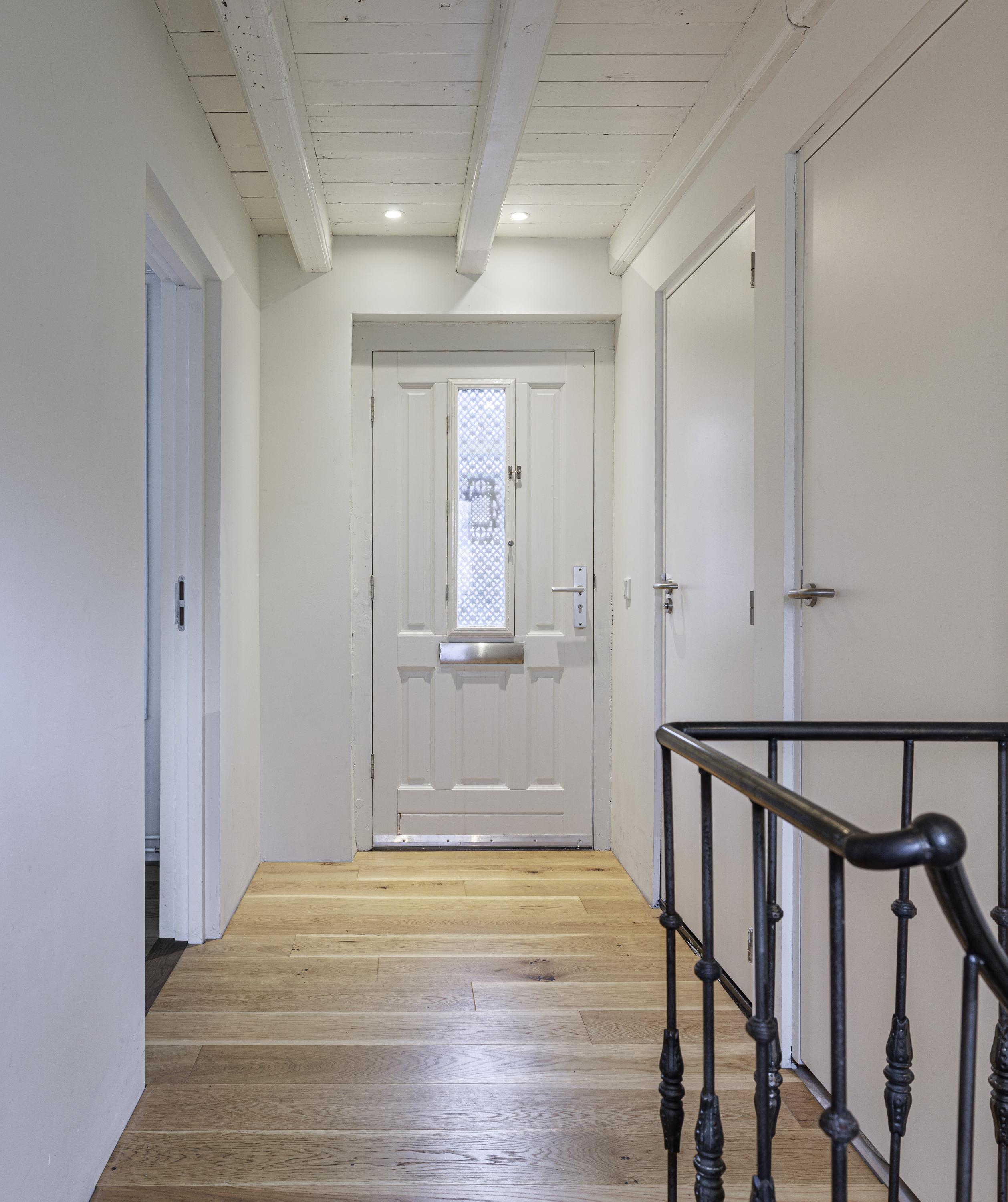 Zaans huis: entree, ruim kantoor (vide), trap naar de living.