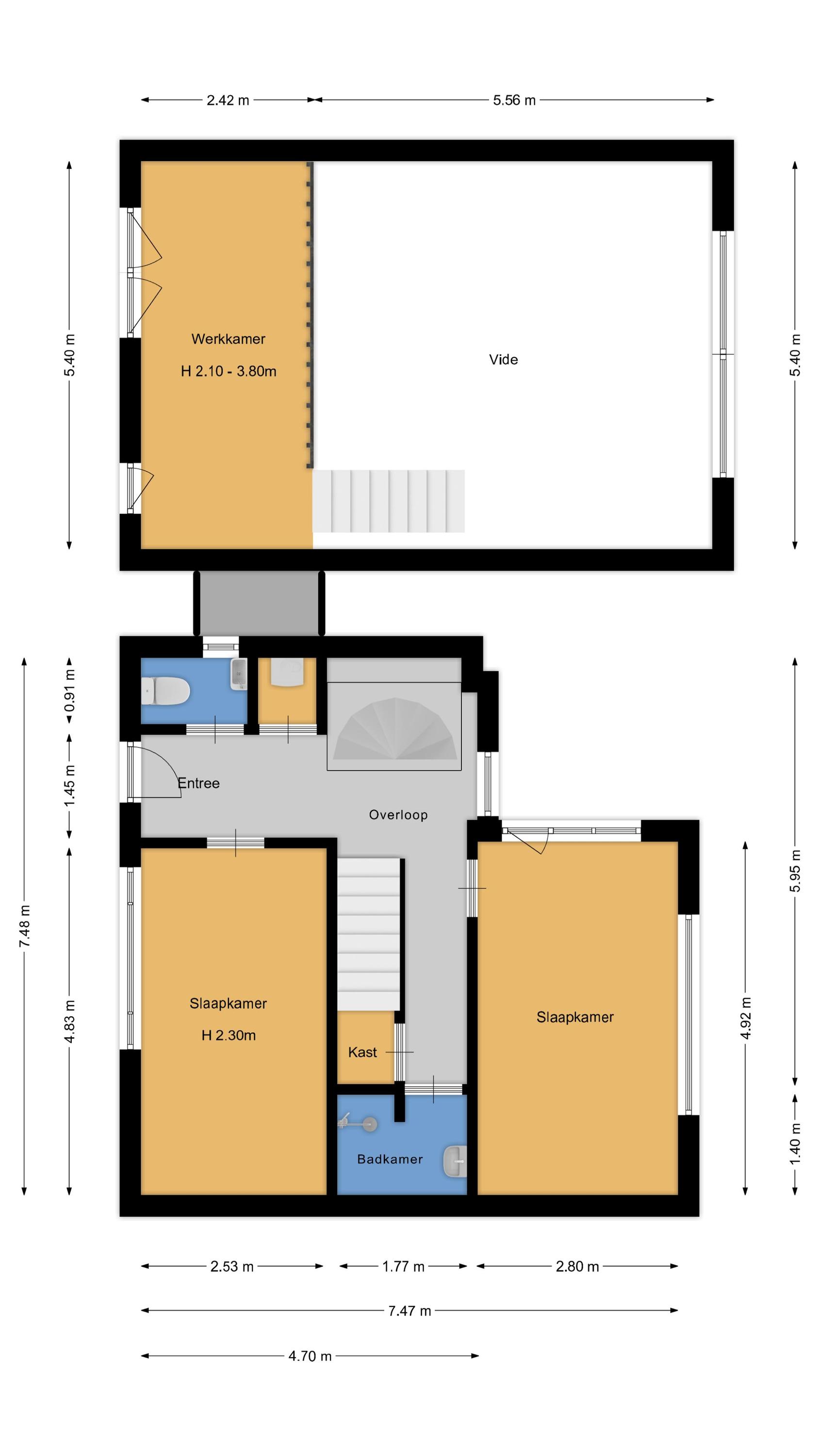• Mogelijkheid tot uitbreiding van de vide met ca. 12 m² extra woonruimte (zie plattegronden)