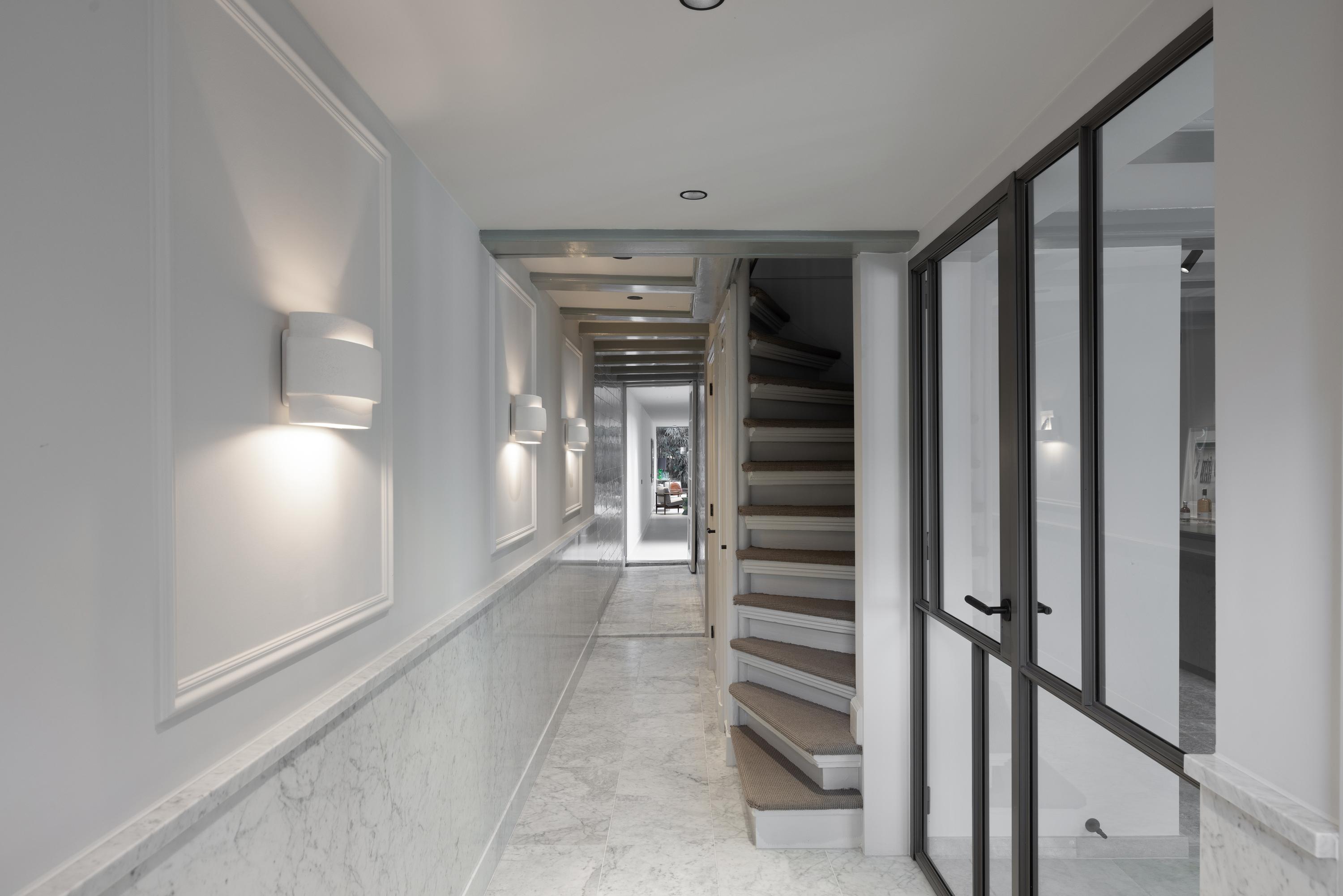 Vanuit de prachtige entree aan de gracht, bereikt u de woning. De hal en gang met marmeren vloer en lambrisering geeft toegang tot alle vertrekken op deze verdieping. De prachtige wandverlichting en muurdecoratie geven de entree bijzonder veel sfeer.