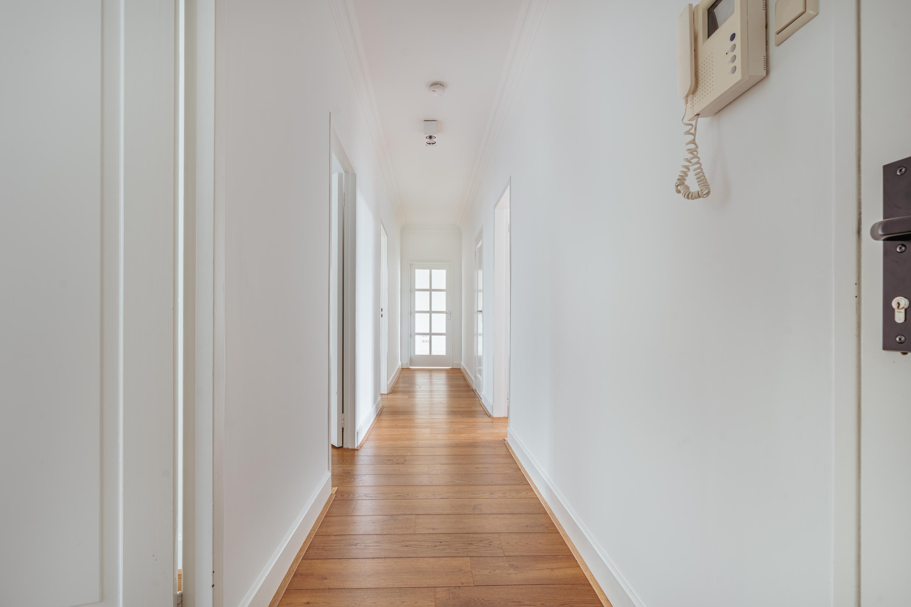Via het verzorgde gemeenschappelijke entree met trappenhuis en lift bereikt u dit ruime en lichte appartement op de vierde verdieping. U komt binnen in een royale hal van waaruit alle vertrekken toegankelijk zijn.