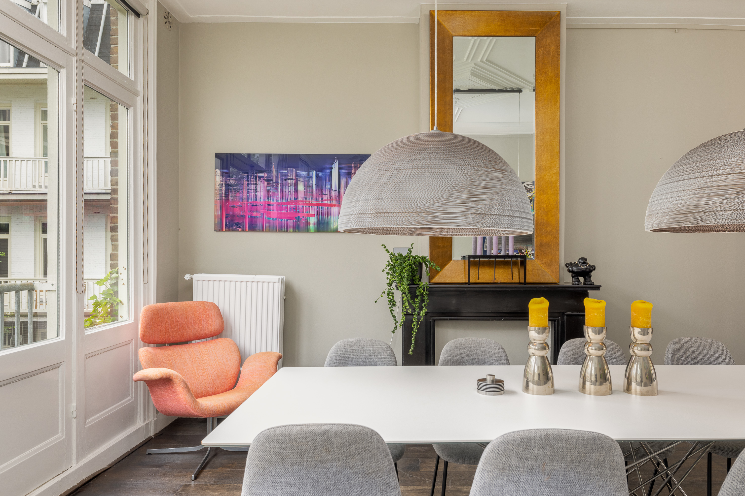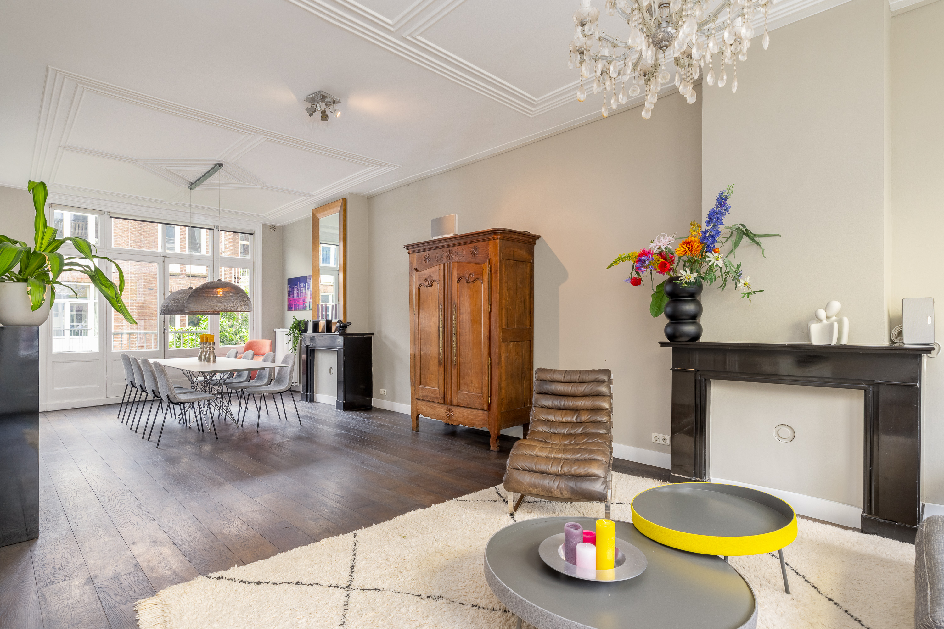 Op de overloop vindt u een apart toilet met fontein. Vanuit de overloop heeft u toegang tot de ruime doorzonwoonkamer. Aan de voorzijde van de woonkamer is er voldoende ruimte voor zowel een formele zithoek als een gezellige tv-hoek. Tevens is hier een fraai balkon met uitzicht op de Valeriusstraat en de Amstelveenseweg.
