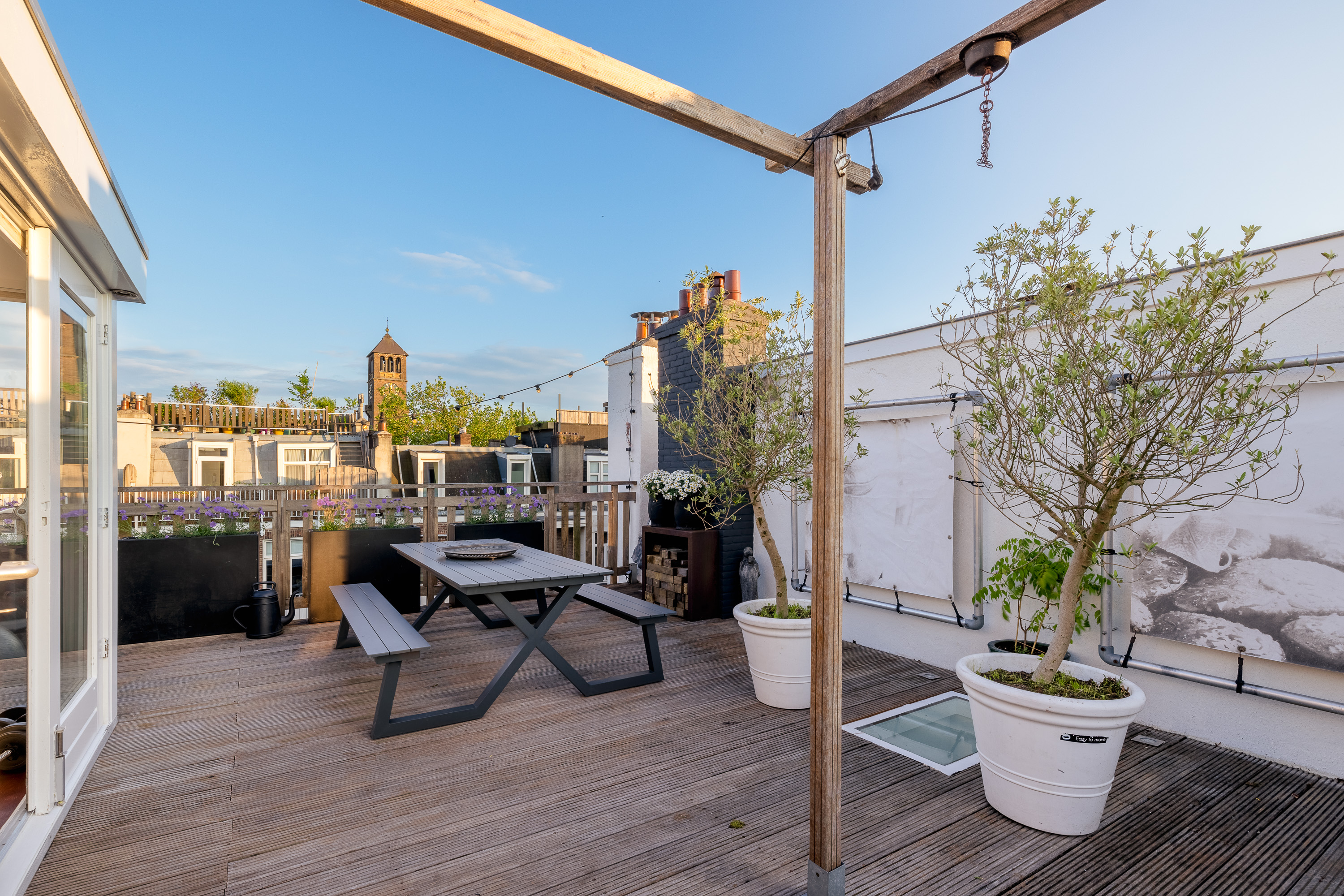 Op een fantastische locatie in het populaire Amsterdam Oud-Zuid bieden wij dit heerlijk lichte en ruime dubbele bovenhuis (ca. 150m²) aan. Het prachtige dakterras biedt veel privacy en u kunt hier de gehele dag van de zon genieten. Er zijn meerdere zitmogelijkheden te creëren. De woning beschikt over drie slaapkamers, een ruime inloopkast, en een dakterrasopbouw die tevens kan worden ingericht als thuiswerkplek of yogaruimte. Aan de voorzijde van de woning treft u ook een heerlijk balkon.