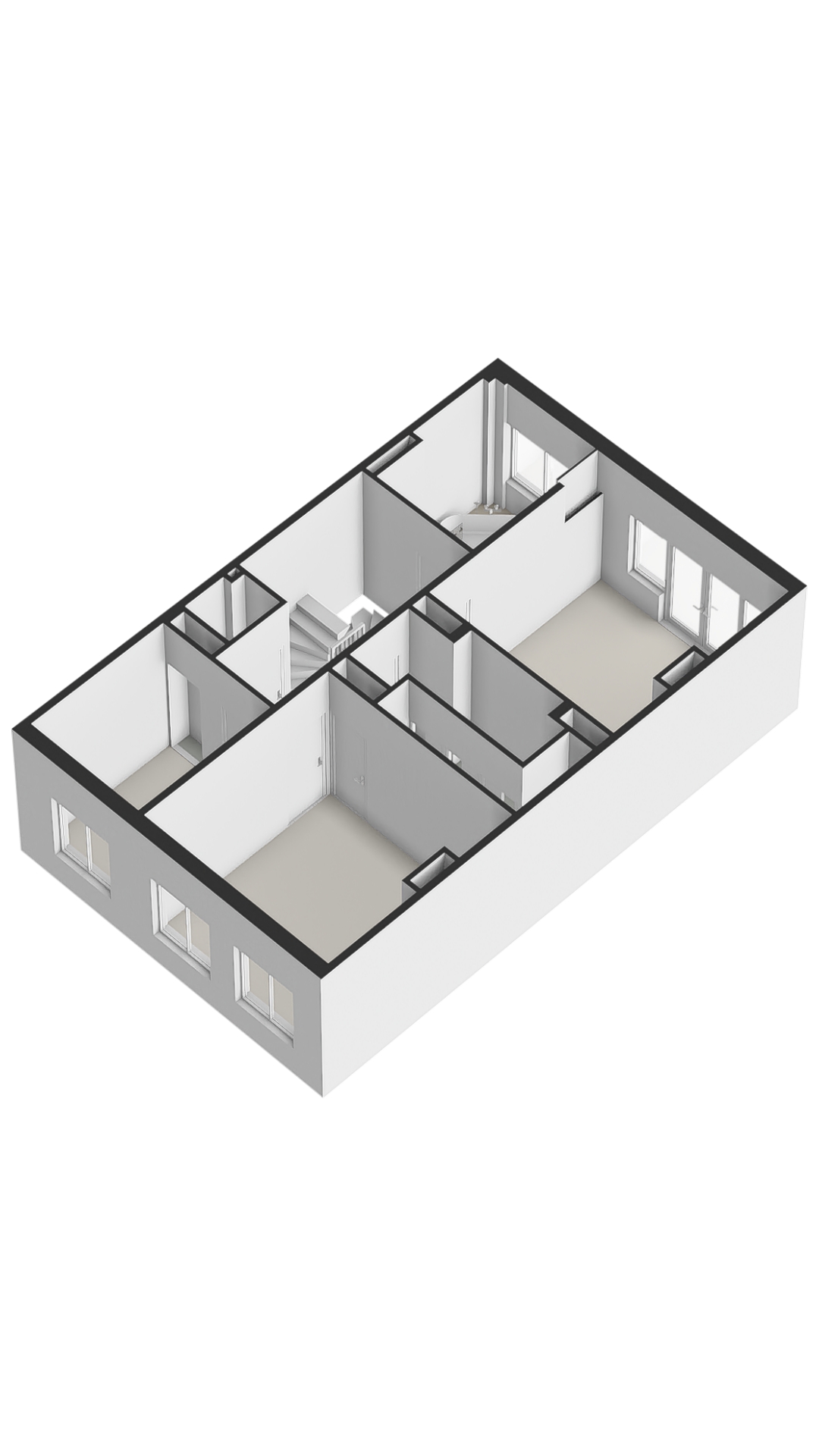 Eigen entree en opgang naar de tweede verdieping. Via de ruime overloop, waar zich tevens een inbouwkast bevindt, heeft u toegang tot de trap die u naar de entree van de woning op de tweede verdieping leidt