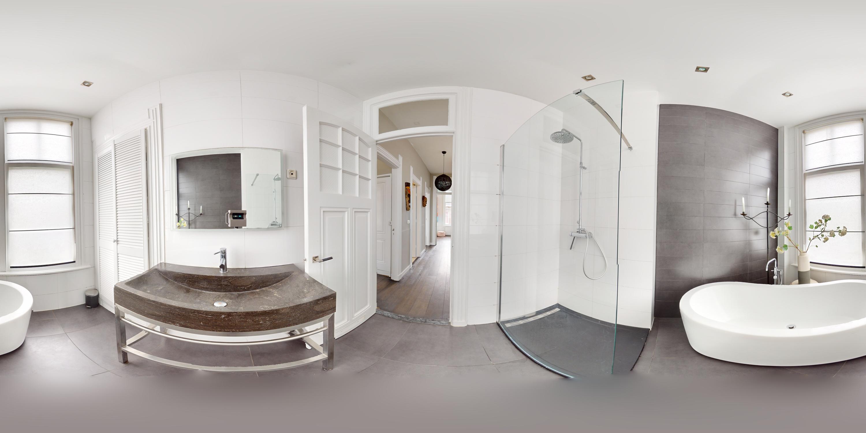 Overloop. Hier treft u ook een separaat toilet met fontein. Aan de achterzijde bevindt zich een goed bemeten slaapkamer met twee inbouwkasten en grote raampartijen. De badkamer beschikt over een ruim ligbad, inloopdouche, brede wastafel met spiegel en een inbouwkast die toegang biedt tot de slaapkamer aan de achterzijde van de woning. Aan de voorzijde van de woning bevinden zich twee slaapkamers. De ene slaapkamer biedt ruimte voor een King-size bed met inbouwkast en de andere slaapkamer beschikt over een praktisch en gezellig op maat gemaakt stapelbed met ruime lades zowel onder het bed als in de trap van het bed. Deze functioneren ook als trap, om het bovenste bed te bereiken. Het onderste bed is gemakkelijk weg te halen zodat een hoogslaper overblijft. Centraal gelegen op deze verdieping vindt u ook een erg ruime inloopkast, die tevens ook in te richten is als werkkamer.