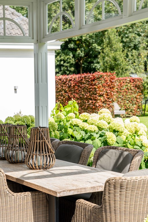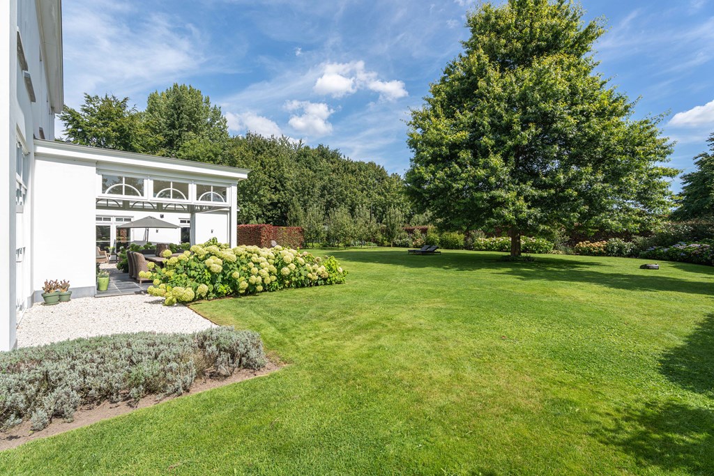 De fraai aangelegde tuin ligt rondom de woning en is een fijne plek voor mensen die van het buitenleven houden. De tuin is voorzien van een groot gazon, groenborders met volwassen beplanting, fruitbomen, verlichting, een terras met veranda, een beregeningsinstallatie en diverse gezellige hoekjes. Voor de liefhebbers is er ook ruimte om een groente kas te plaatsen. Ook is er een oprit met plaats voor diverse voertuigen, is er een laadpaalvoorbereiding en een garage met openslaande deuren.