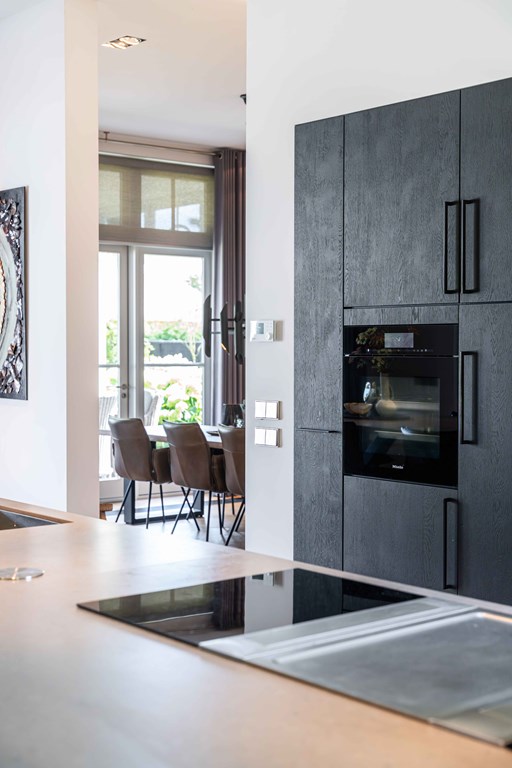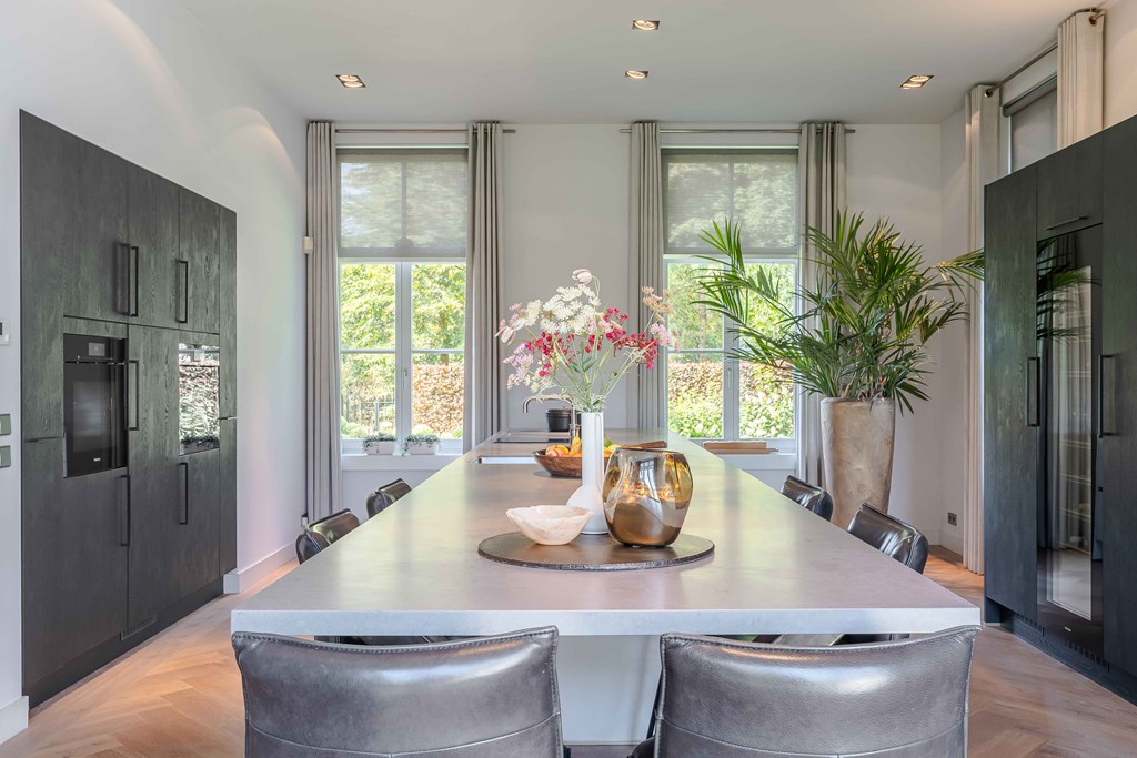Het kloppende hart van deze woning is uiteraard de prachtige leefkeuken. Vanwege het open karakter van deze ruimte is dit de plek waar u als gezin samen kunt komen. Het grote eiland in het midden is een plek om zowel te koken als te zitten.