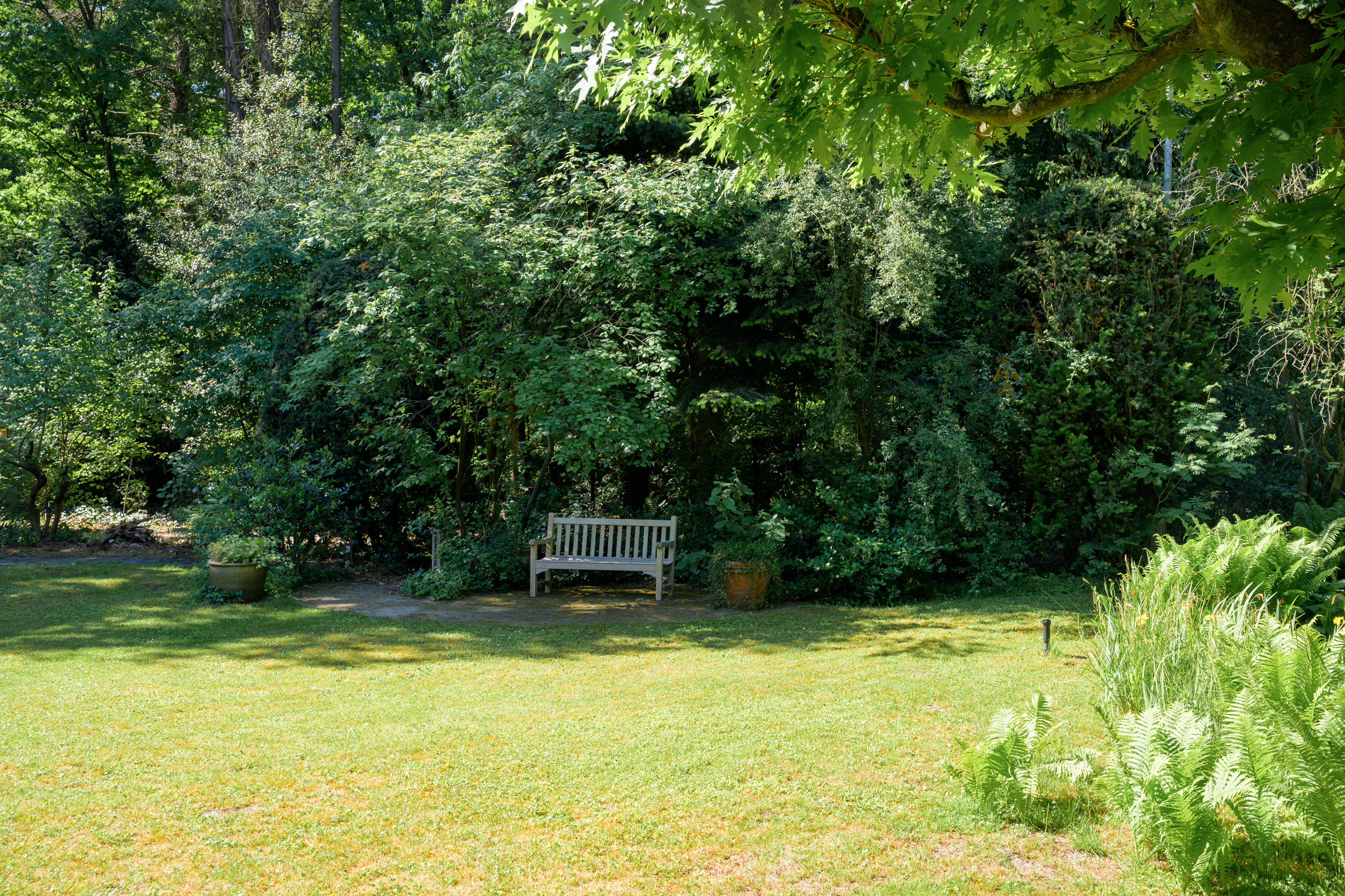 De prachtige, parkachtige (bos)tuin is rondom de woning gesitueerd en biedt ultieme privacy en het genot van het buitenleven. De ligging is uniek, een rustige, groene omgeving maar tevens nabij alle voorzieningen.