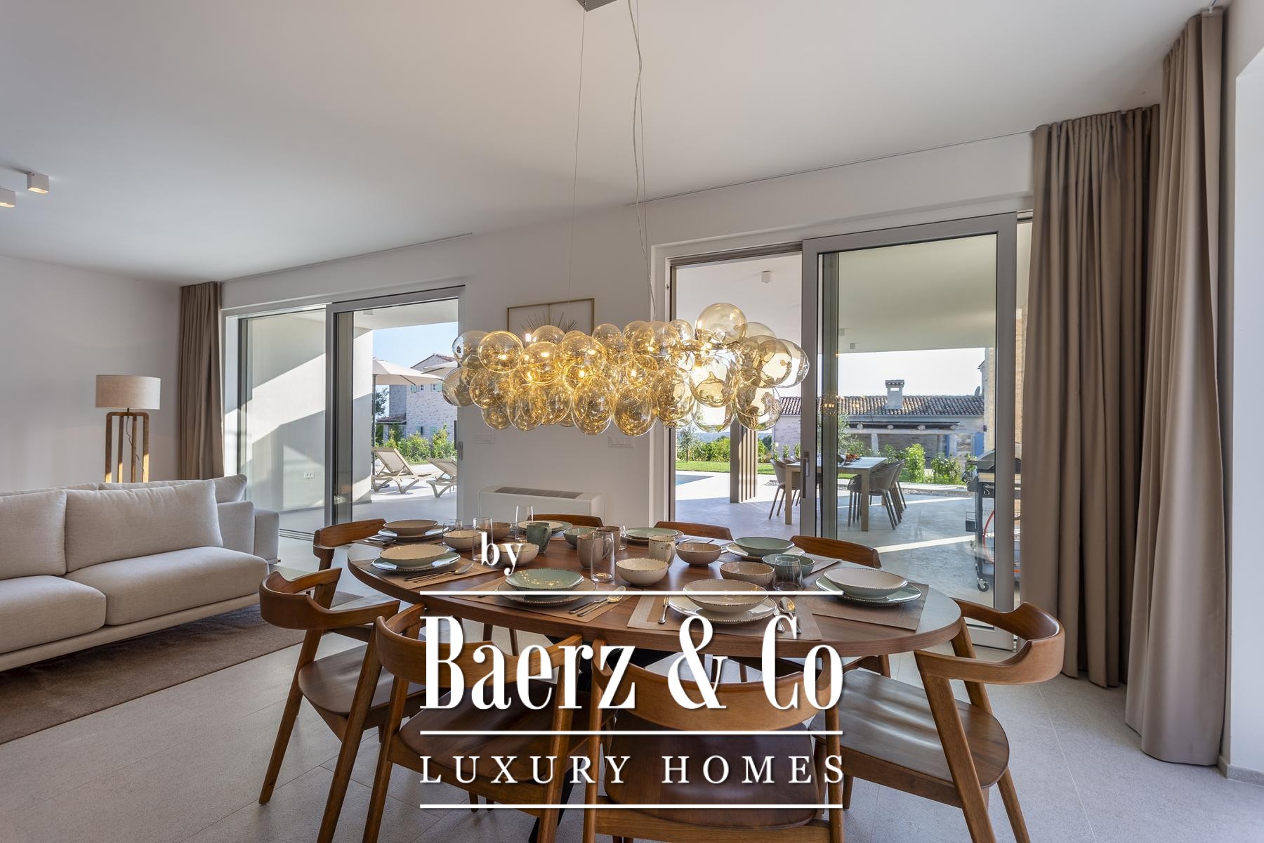 De villa’s karakteristieke eenvoud en strakke lijnen worden verzacht door een warme sfeer; hoogwaardige isolatie en technische systemen garanderen het hele jaar door optimaal comfort. Geautomatiseerde beregening en tuinverlichting accentueren het exterieur en laten de verfijning van binnen buiten weerklinken. Bekend om rust en privacy, ligt Villa Bale Croatia op korte afstand van alle voorzieningen van Istrië en biedt het een toevluchtsoord voor ontspannen gezinsleven en een solide investering.