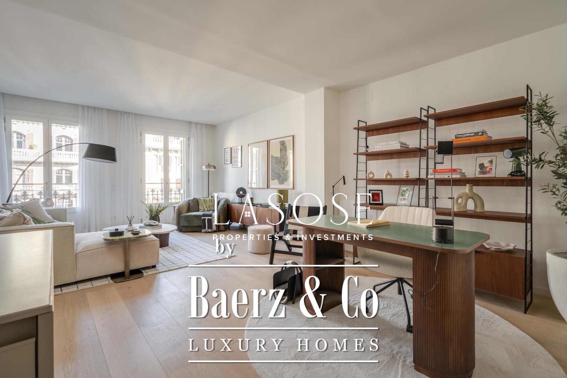Apartment Barcelona Eixample biedt een onderscheidende woonervaring in het hart van de iconische Eixample-wijk. Dit appartement van 96 m² met twee slaapkamers en één badkamer maakt deel uit van een exclusieve collectie van 19 woningen waar verfijnd erfgoed wordt gecombineerd met hedendaags wooncomfort. Klassieke balkons en een royaal penthouse-terras creëren een harmonieus gevoel van licht, stadsritme en privacy.