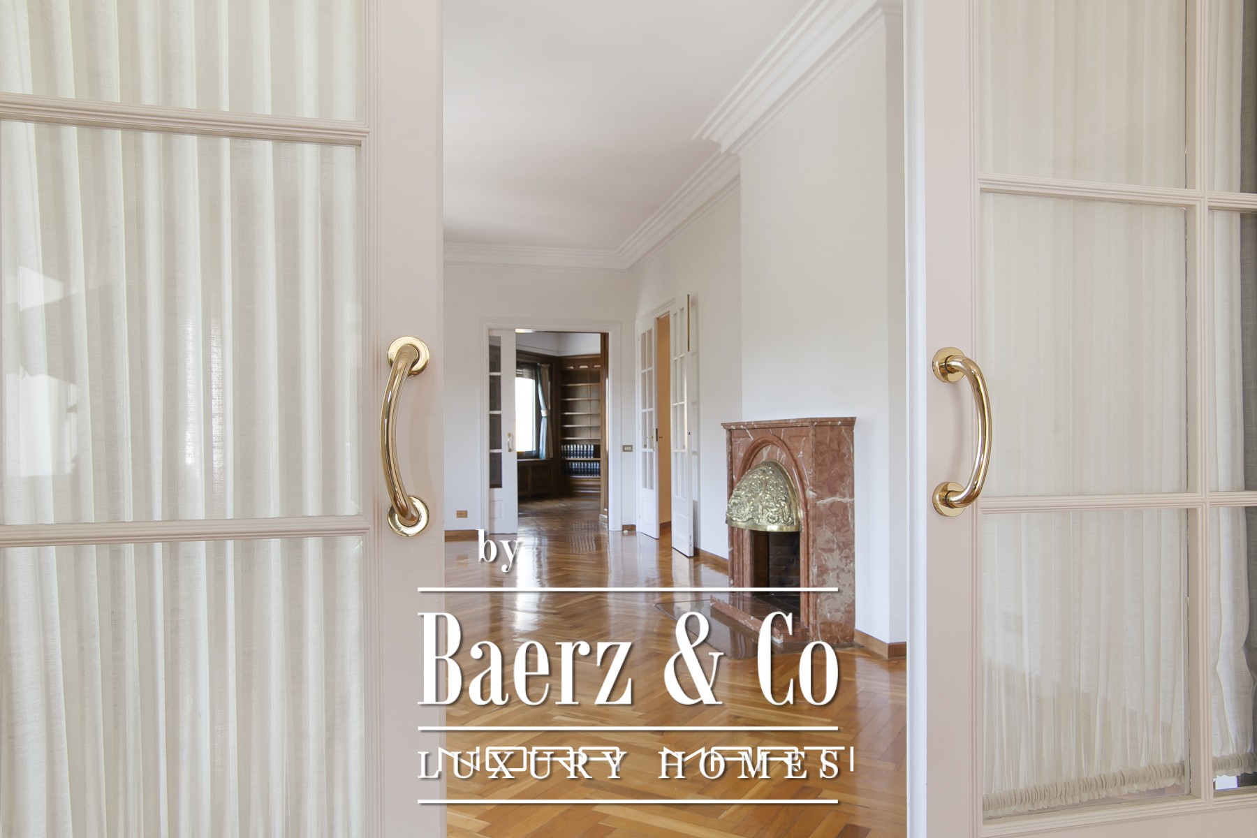 De formele indeling begint met een indrukwekkende entreehal, geflankeerd door een vernieuwde gastenbadkamer en een bibliotheek of kantoor met balkon. De riante woonkamer is rond een open haard gepositioneerd en loopt naadloos over in een eetkamer en de overdekte terrasruimte, bedoeld voor zowel gezinsleven als rustige reflectie. Er zijn vijf slaapkamers, waaronder twee met eigen badkamer, twee dubbele kamers en een eenpersoonskamer. De master suite is voorzien van een privékleedkamer, ruime inloopkasten en een badkamer met daglicht en whirlpoolbad. Hoge, geornamenteerde plafonds, zorgvuldig behouden Hongaarse punt parketvloeren en inbouwkasten kenmerken het interieur.