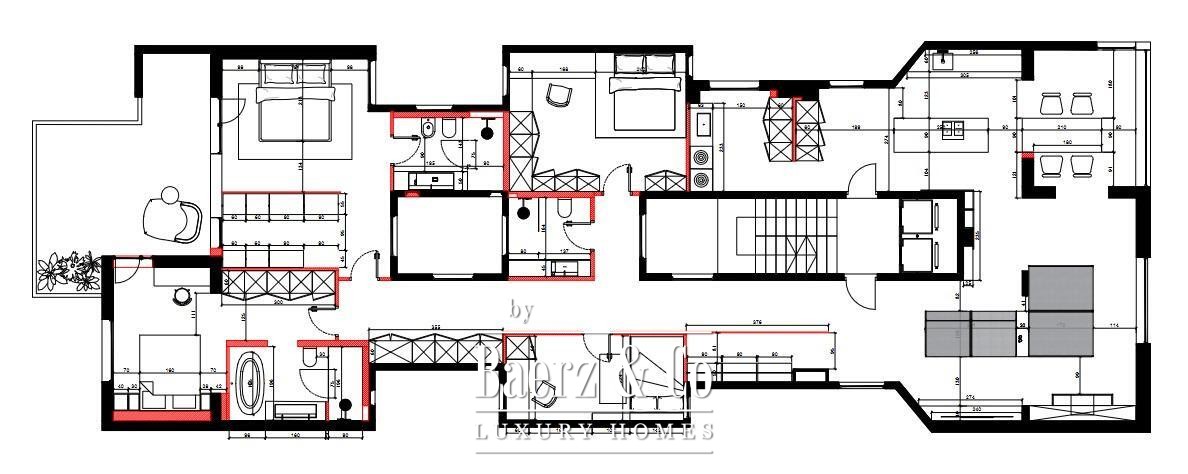 De open Amerikaanse keuken onderscheidt zich door hoogwaardige materialen en een ergonomisch ontwerp, geschikt voor zowel dagelijks gebruik als ontvangst van gasten. Het slaapgedeelte omvat zes slaapkamers, waaronder twee suites – elk met een eigen badkamer, kleedruimte en terras – en vier extra slaapkamers die een stijlvolle badkamer delen. Ochtendlicht verlicht de slaapkamers, terwijl de woonkamer profiteert van het zachte middaglicht. Parketvloeren, gerestaureerd houtwerk en dubbele beglazing versterken het samenspel van traditie en moderniteit. Airconditioning, verwarming op aardgas, inbouwkasten, video-intercom en lifttoegang verhogen het comfort en de discretie.