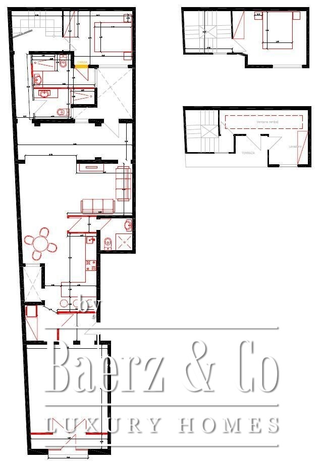 Drie slaapkamers en drie badkamers bieden privacy en gemak; de master suite onderscheidt zich door een Catalaans gewelfd plafond, een inloopkast en een elegante en-suite badkamer. Het privéterras op de bovenste verdieping biedt zowel geborgenheid als functionaliteit, met een subtiel geïntegreerde wasruimte voor dagelijks gemak. Airconditioning, ingebouwde bergingen en hoogwaardige afwerkingen zorgen voor een verfijnde woonervaring.