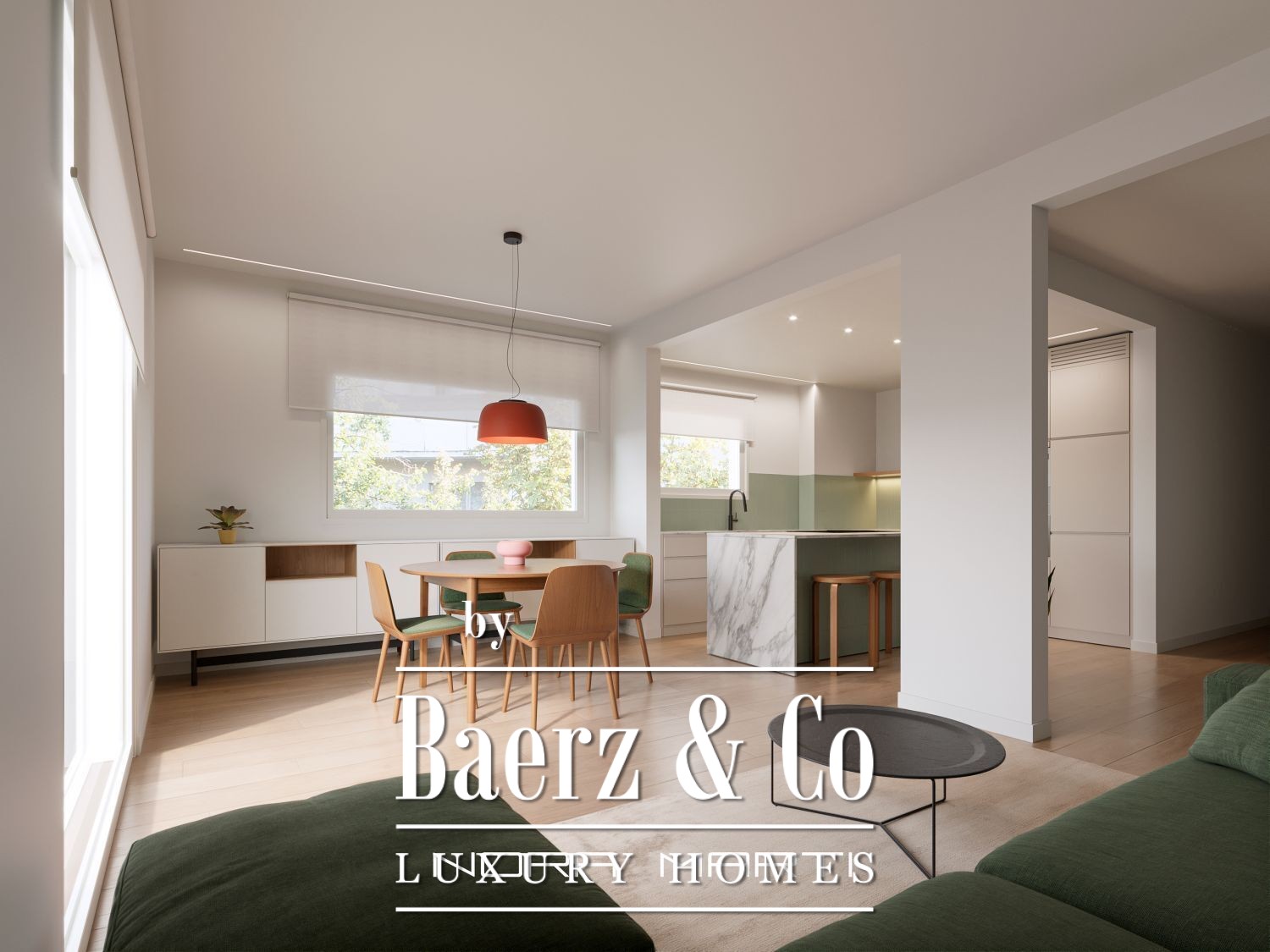 Apartment Barcelona vormt een verfijnd privéverblijf in Eixample, gesitueerd in een gebouw uit 1964 met lift, op slechts enkele stappen van de Passeig de Sant Joan. Deze woning meet 109 m² en is volledig heringericht, met nadruk op zowel elegantie als dagelijks comfort. De living loopt naadloos over naar een terras van 30 m², dat een vrij uitzicht biedt en het gevoel van een exclusieve stedelijke oase creëert. Licht en lucht bepalen hier een ruimte die zich moeiteloos leent voor zowel rustige ochtenden als intieme bijeenkomsten met vrienden.