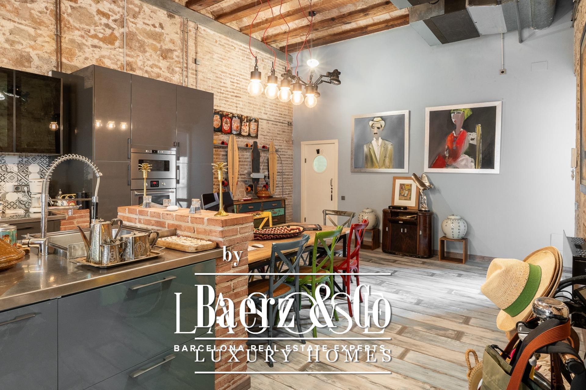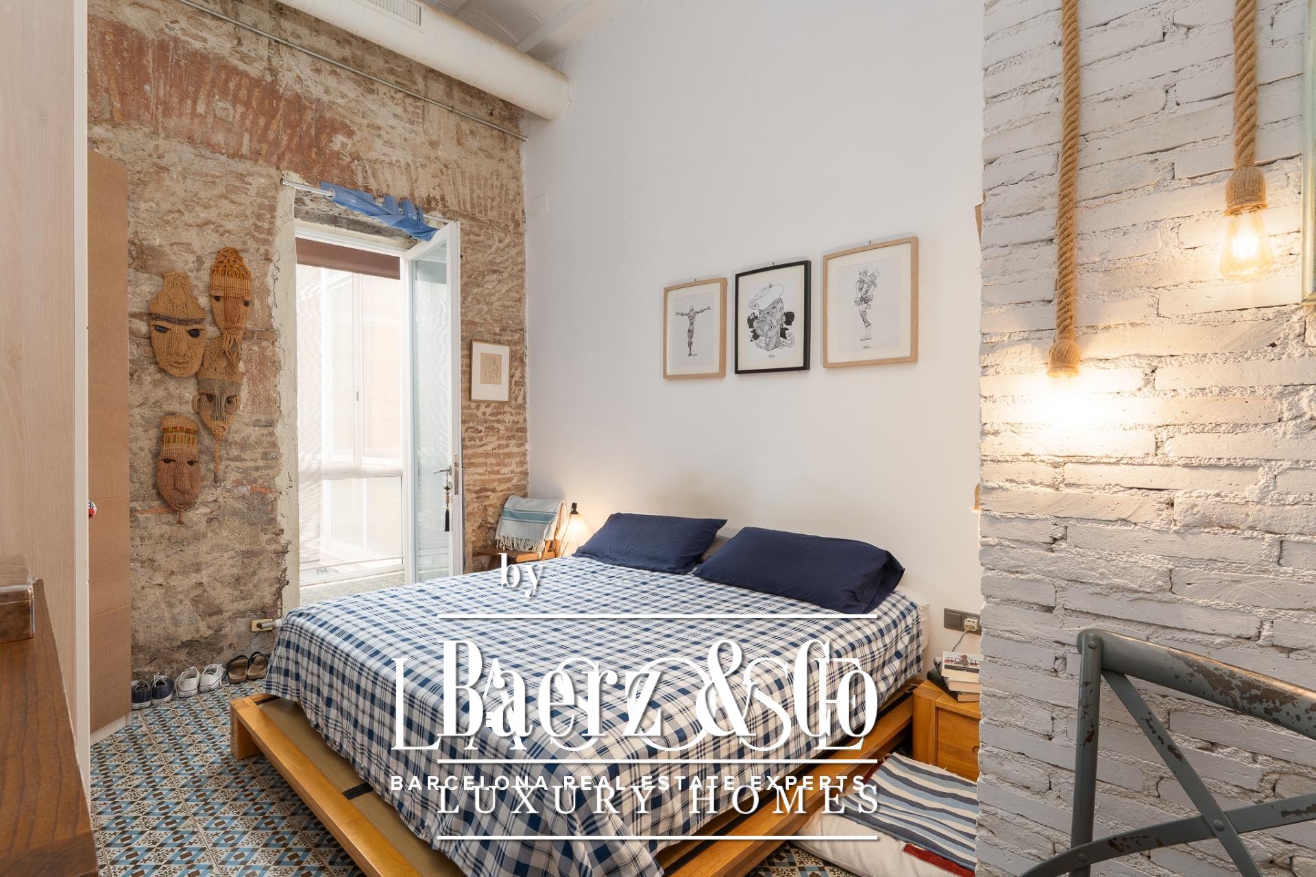 Bij binnenkomst baadt een gang met ramen van vloer tot plafond het interieur in natuurlijk licht en biedt uitzicht op een rustige binnentuin. Drie tweepersoonsslaapkamers, elk met een eigen badkamer, zijn geoptimaliseerd voor privacy en rust. Een royale multifunctionele kamer biedt ruimte voor werk of ontspanning. De living wordt gekenmerkt door een vijf meter hoog plafond, originele bakstenen muren en sierlijke tegels. De open keuken vormt een geheel met de woonkamer, die extra sfeer krijgt door een houtgestookte open haard.