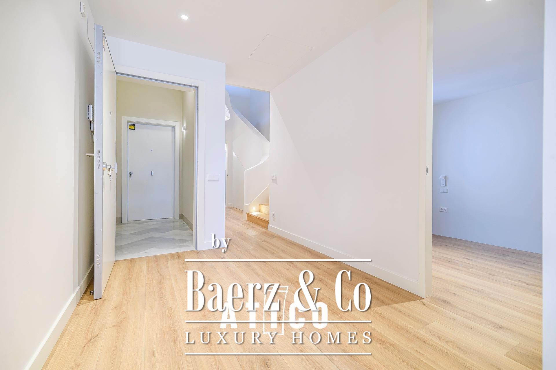 Dit duplex appartement in Barcelona staat symbool voor verfijnd stedelijk wonen en biedt 212,51 m² aan volledig gerenoveerde ruimte verdeeld over twee afzonderlijke verdiepingen. Dankzij de flexibele indeling met zelfstandige entrees ervaart u keuzevrijheid voor privacy, werken of gastvrijheid, waardoor een moeiteloze overgang tussen dag- en nachtzones of gecombineerd gebruik gegarandeerd is. Bij binnenkomst brengt een moderne trap karakter in het interieur en zorgt voor een zelfverzekerd architectonisch ritme dat beide niveaus verbindt.