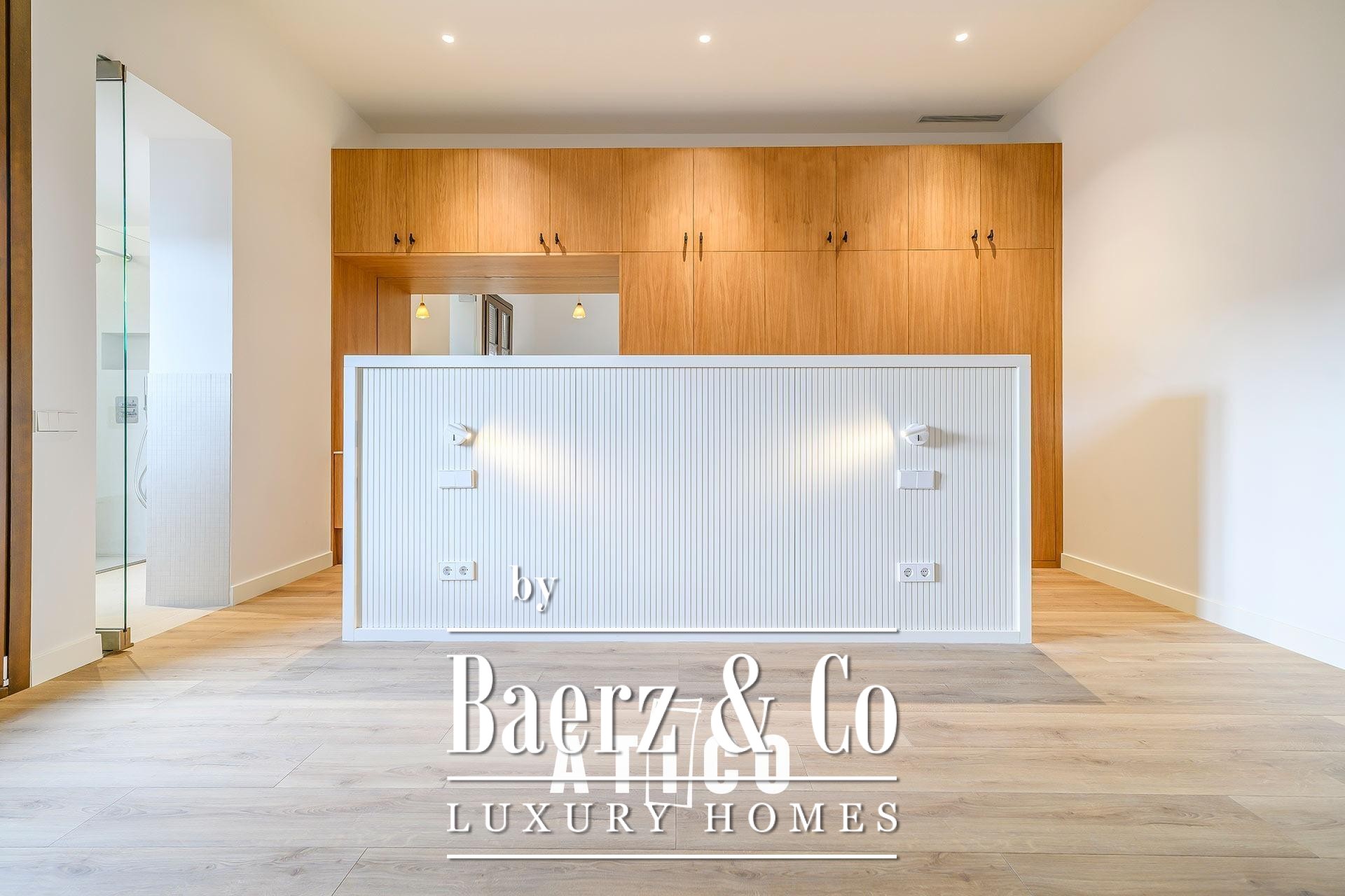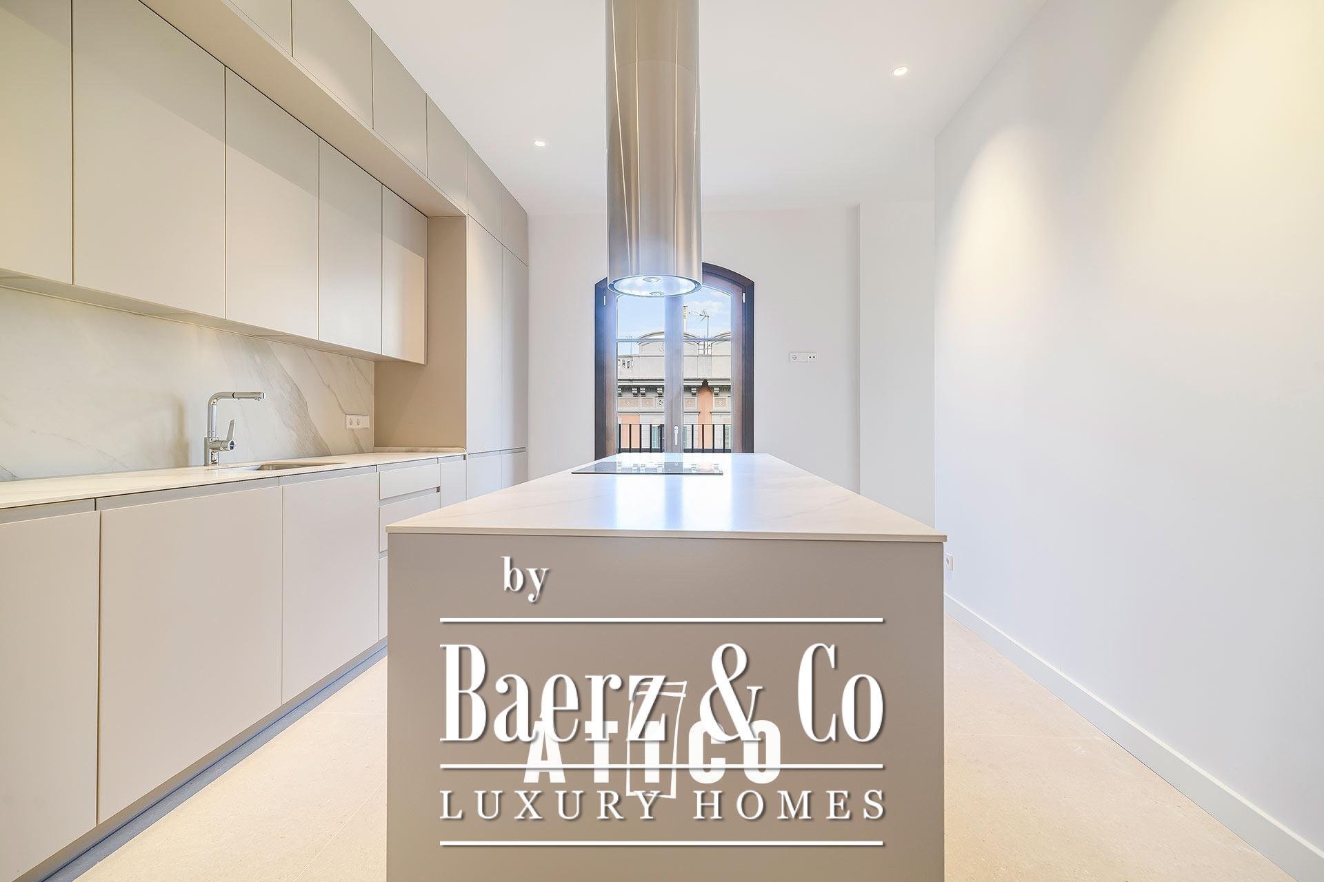 Op de bovenste verdieping bevinden zich een slaapkamer, een veelzijdige multifunctionele ruimte die ideaal is voor werk of ontspanning, en een complete badkamer. Het royale terras van 38,85 m² verlengt het wonen naar buiten; perfect geschikt voor openluchtbijeenkomsten of rustige momenten onder de stadse hemel. Drie slaapkamers en drie badkamers staan borg voor een aangename balans tussen comfort en privacy, terwijl hoogwaardige materialen en een onberispelijke afwerking het vakmanschap in elke ruimte benadrukken. Ook de keuken is zorgvuldig vormgegeven en biedt veel opbergruimte en een evenwichtige functie in het dagelijks leven.