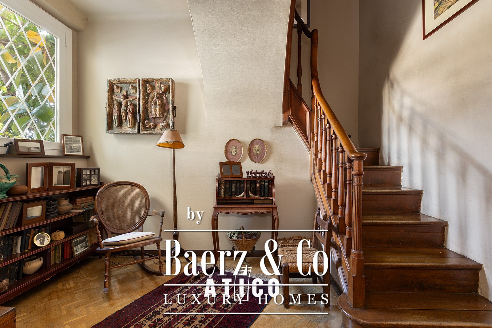 De eerste woonlaag beschikt over een verfijnde hal, die leidt naar een warme woon-en eetkamer met open haard en toegang tot een balkon van 9 m². Onbelemmerd uitzicht richting Tibidabo en Puxet Park verbindt het dagelijkse leven met het elegante stadslandschap van Barcelona. Op deze verdieping bevinden zich verder een aparte keuken met bijkeuken, een gastentoilet, twee tweepersoonsslaapkamers, een complete badkamer en een lichte studeerkamer ideaal voor geconcentreerd werken of rustig lezen.