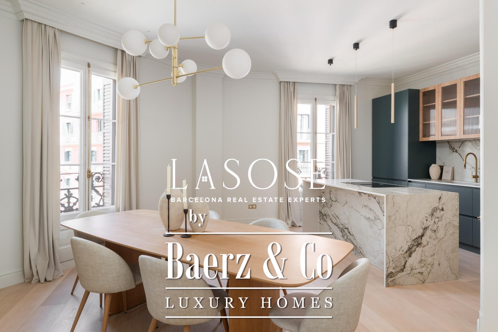 Penthouse Barcelona Quadrat d'Or bevindt zich op het felbegeerde kruispunt van Calle Girona en Gran Via de les Corts Catalanes en biedt 201 m² aan verfijnde leefruimte met een terras van 20 m². Deze woning combineert historie met hedendaags design, op slechts enkele passen van de Passeig de Gràcia en Plaça Catalunya. Omringd door hotels, theaters, restaurants, scholen en exclusieve winkels en volledig ontsloten door het openbaar vervoer, bevindt u zich hier in het hart van Barcelona’s iconische Quadrat d'Or.