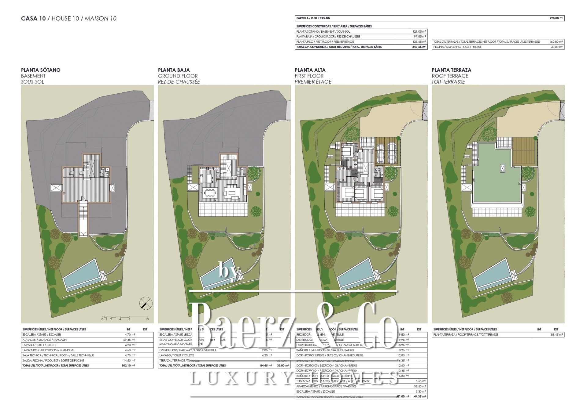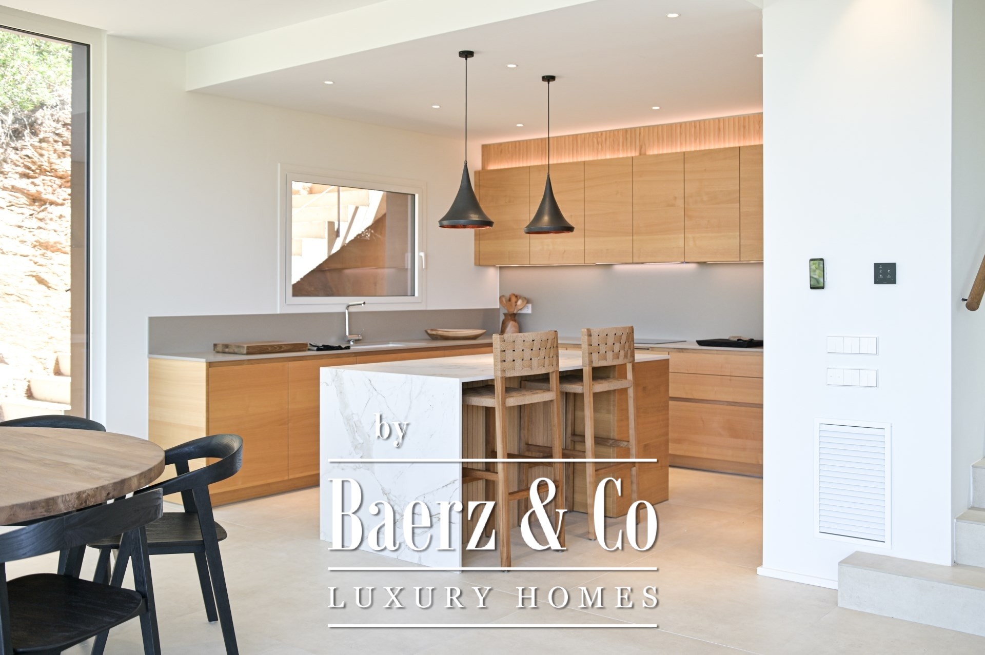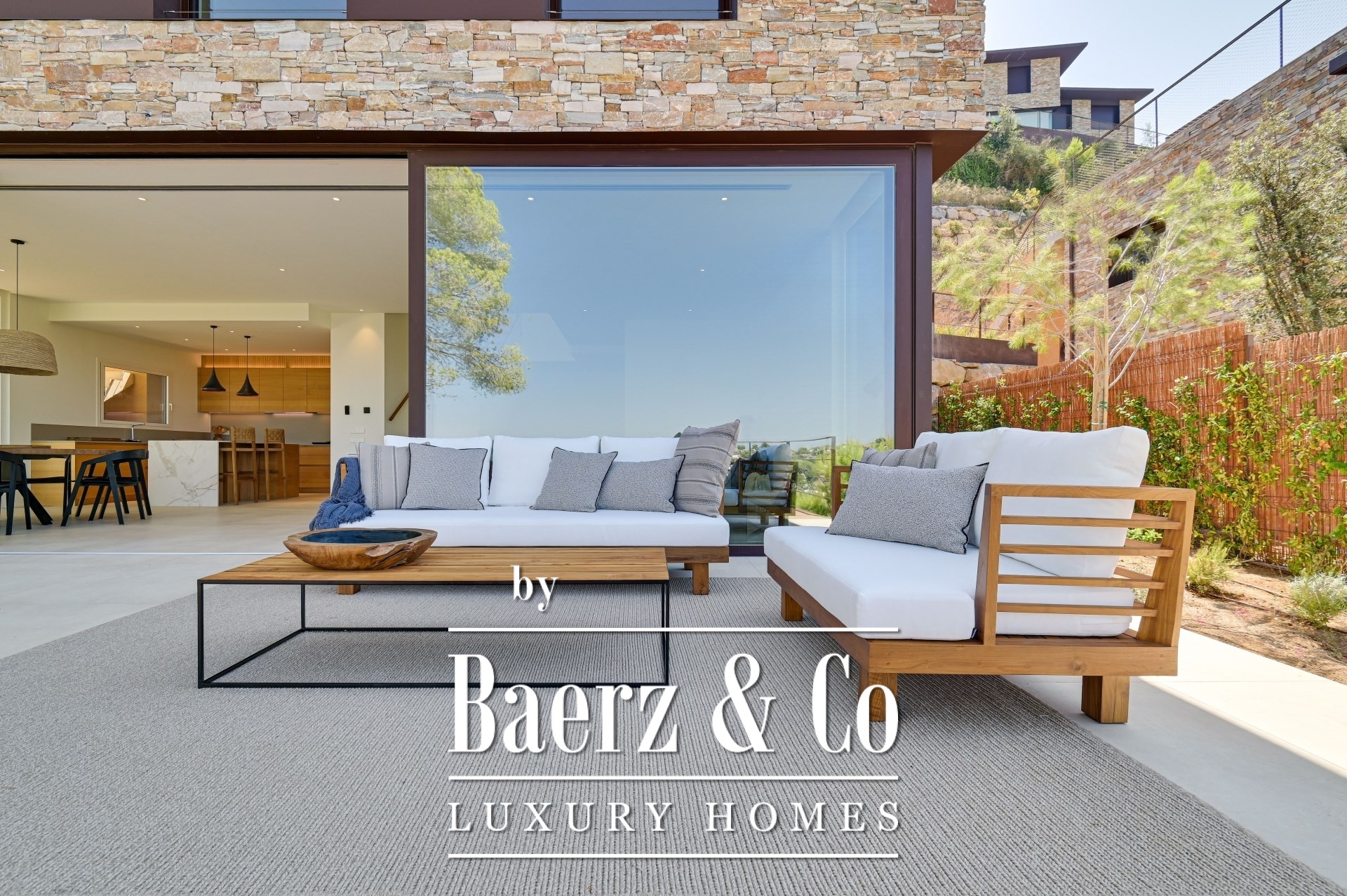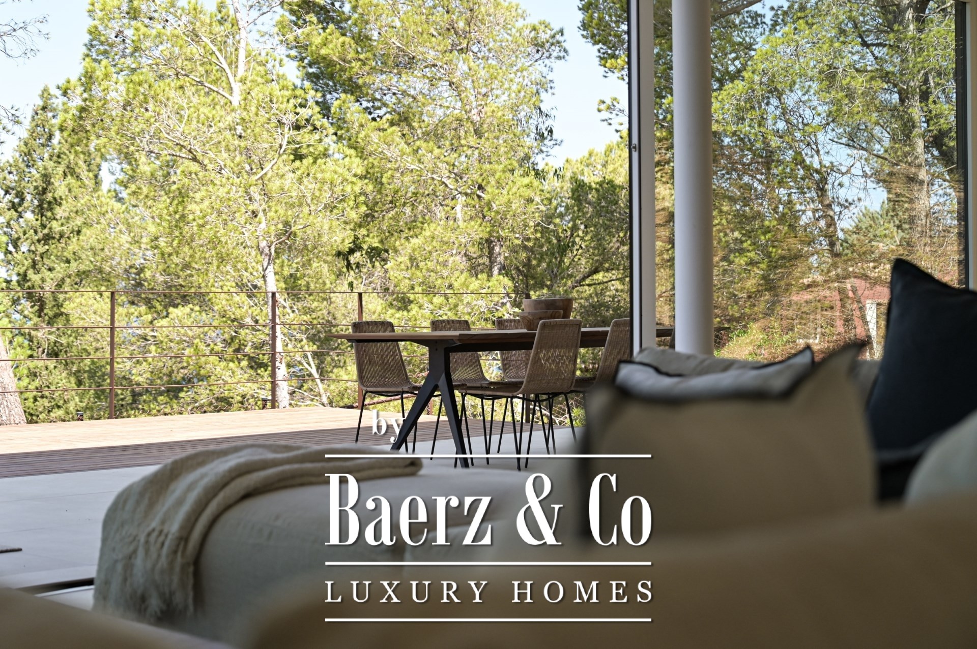 De villa beschikt over 347 m² woonruimte op een perceel van 925 m², met vier slaapkamers en drie badkamers. De glazen wanden verbinden binnen en buiten, waardoor het mediterrane licht overal naar binnen stroomt. Hoogwaardige materialen en op maat gemaakte afwerkingen bepalen het serene ritme, terwijl terrassen, een zwembad, carport en aangelegde tuin bewonen in alle rust mogelijk maken. De toegang is beveiligd met een alarmsysteem en poort, airconditioning en verwarming bieden comfort in elk seizoen.