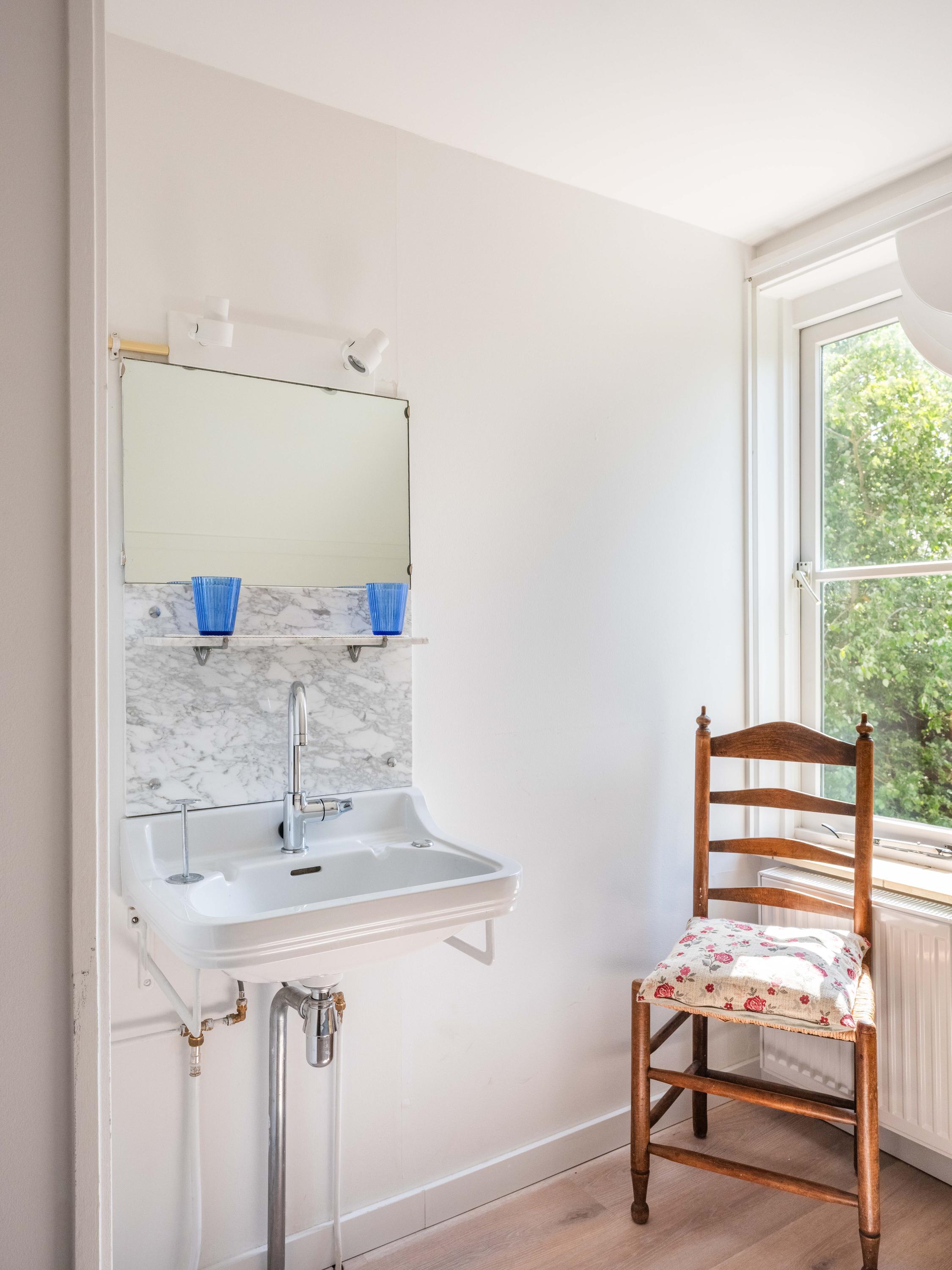 De eerste verdieping beschikt over drie slaapkamers, elk met een wastafel en vaste kast. Dankzij meerdere dakkapellen is er veel licht en ruimte. Er is een aparte cv-kast en een tweede badkamer met ligbad, douche, toilet, dakraam en mechanische ventilatie.