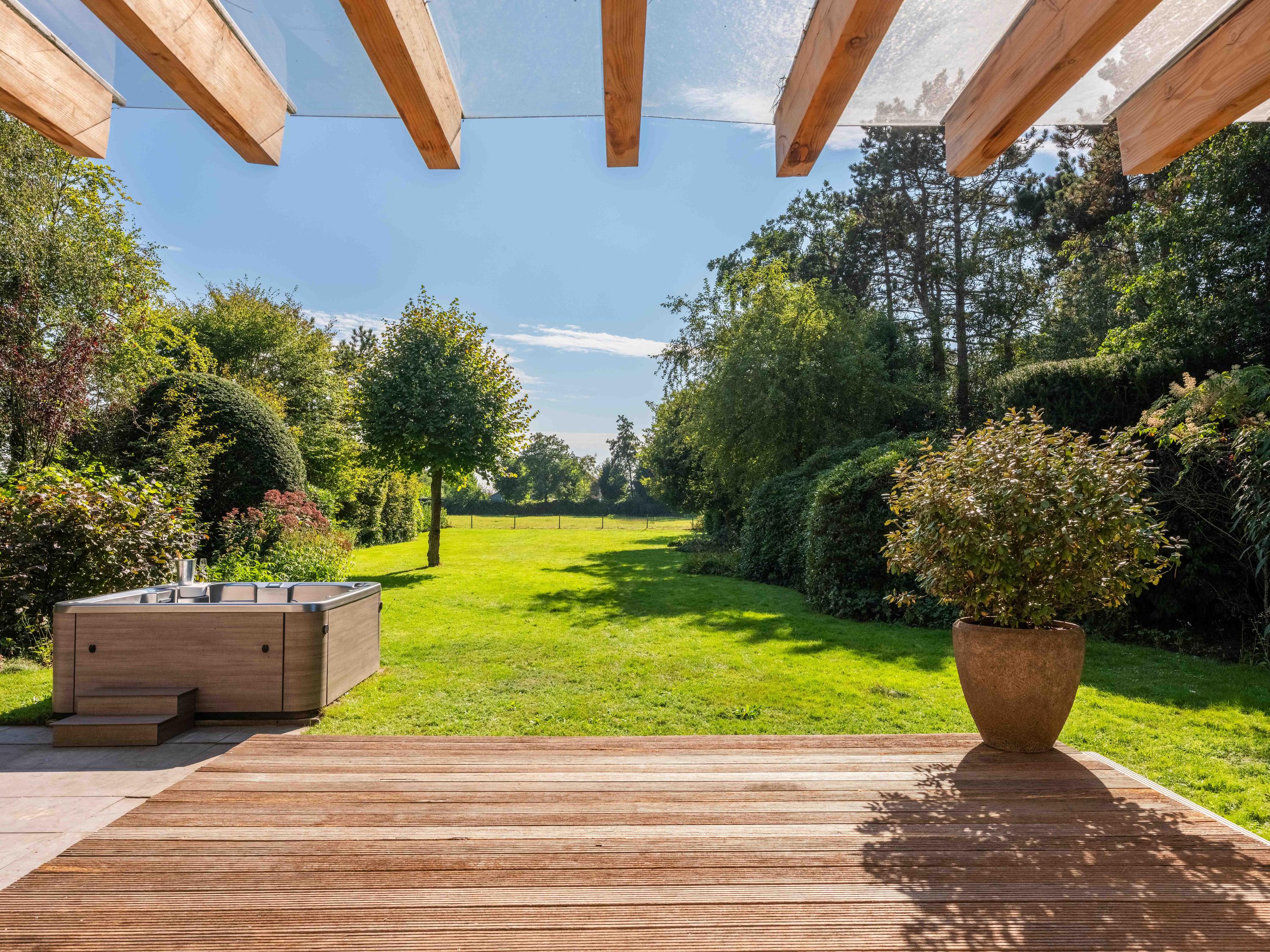 We beginnen in de royale living, deze is heerlijk licht en kijkt uit over het gazon richting het achtergelegen weiland. Een open haard zorgt voor een gezellige sfeer en warmte in de namiddag en de avonden.