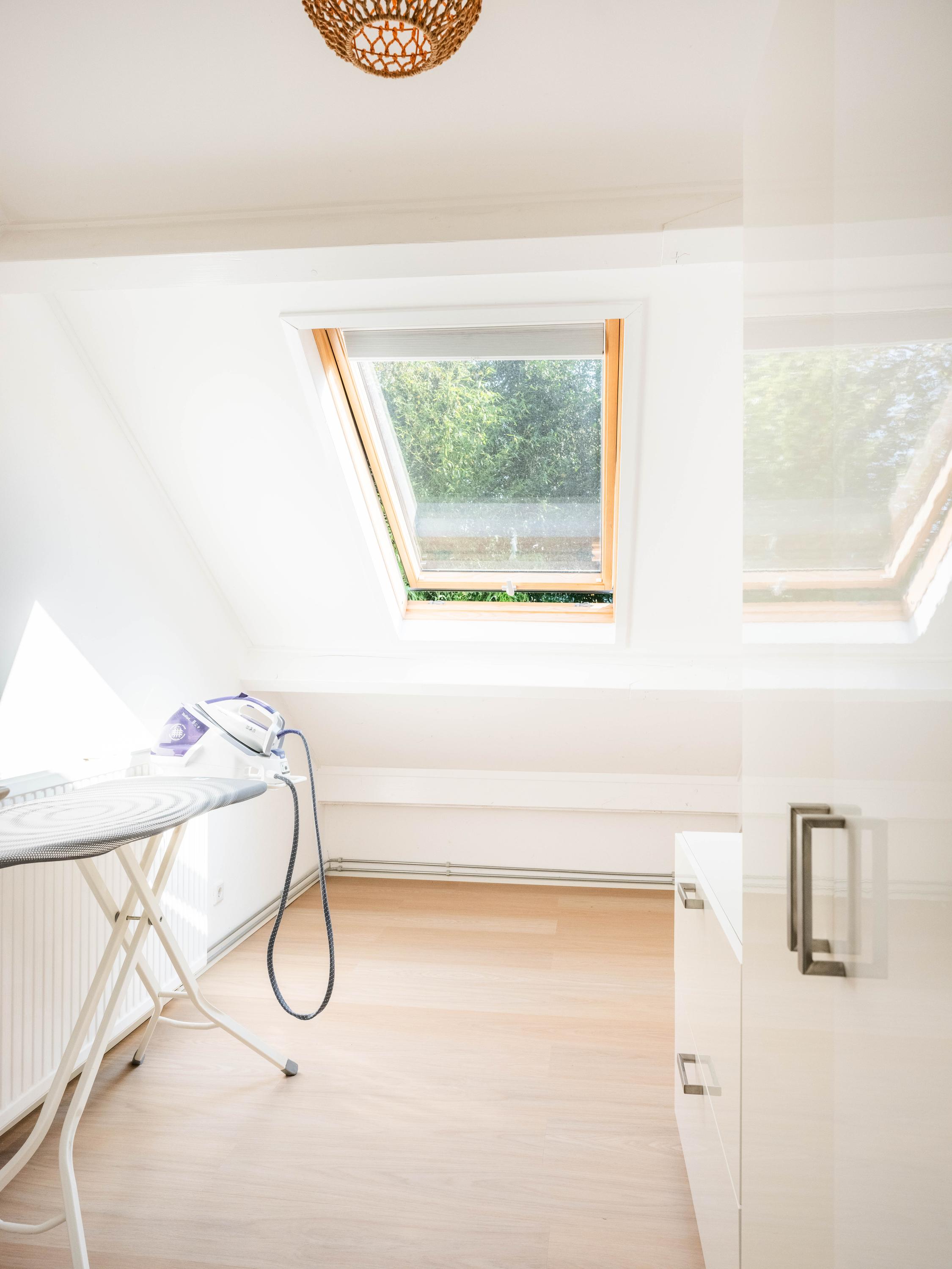 Ook de technische ruimte bevindt zich op deze verdieping, naast de warmtepomp, boiler en waterontharder treffen we hier de aansluitingen voor de wasmachine en droger.