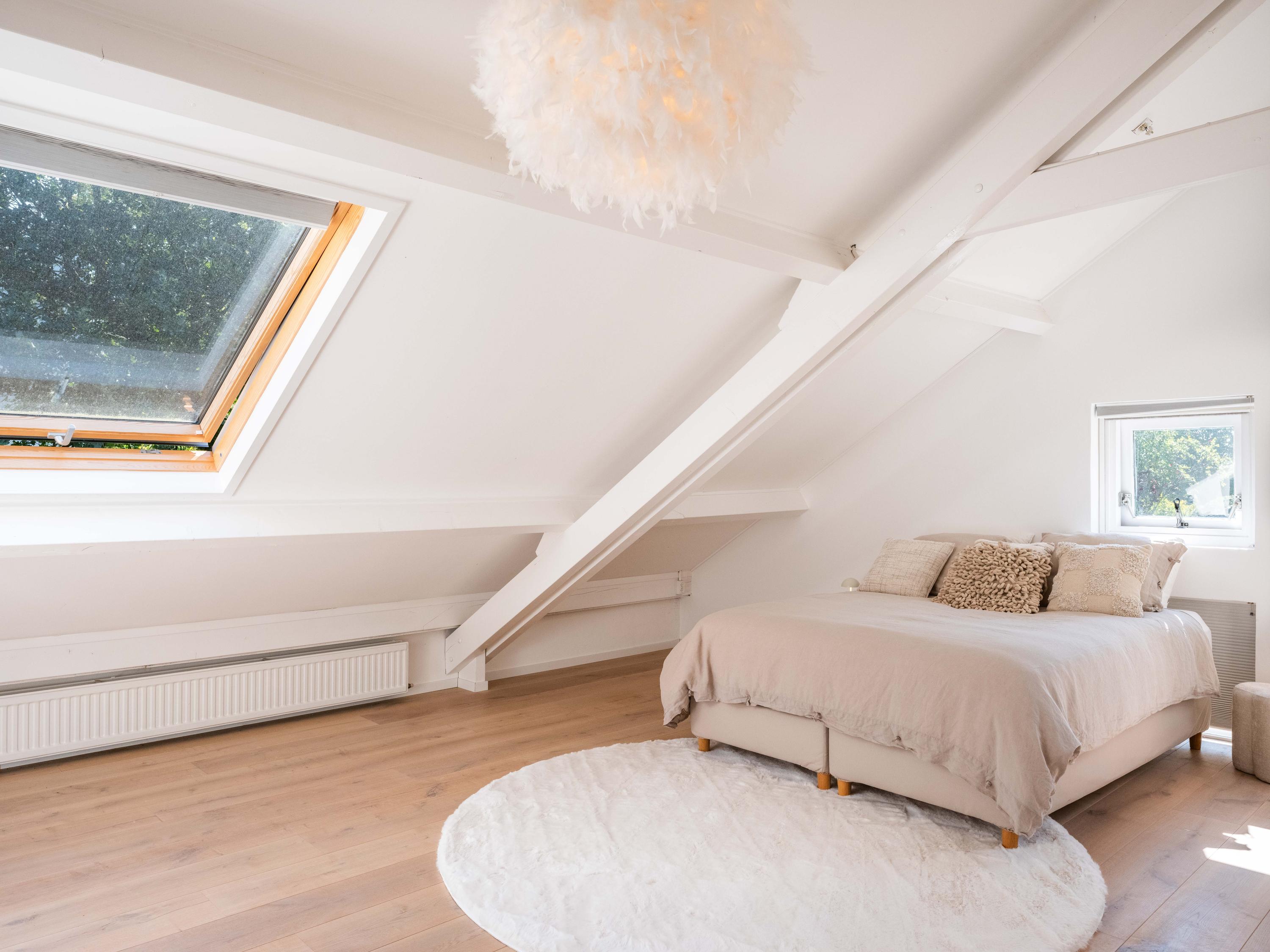 Eén kamer biedt toegang tot de royale zolder waar bij plaatsing van een vaste trap nog diverse kamers te creëren zijn. Momenteel is de zolder alleen via een vlizotrap te bereiken.