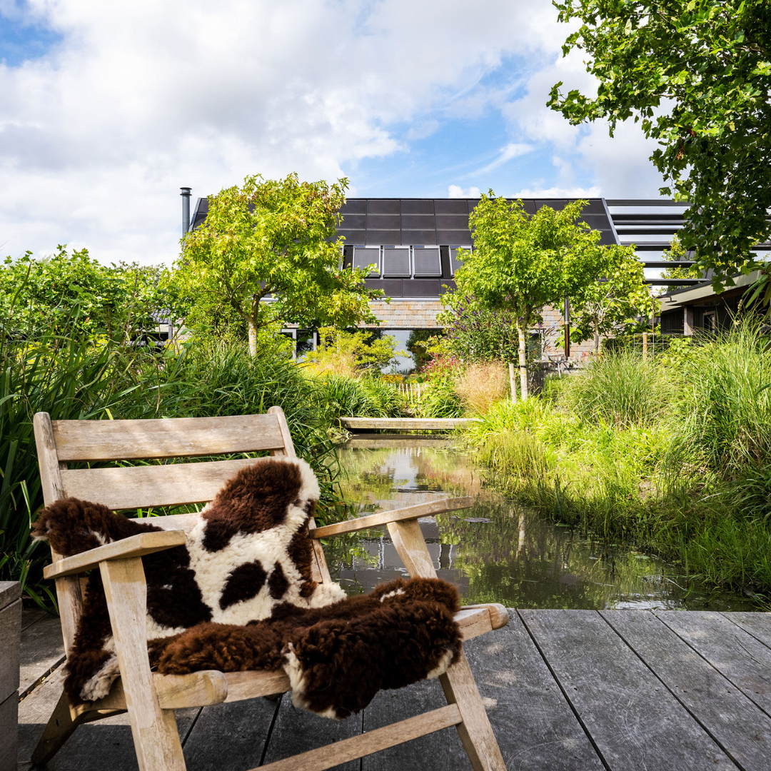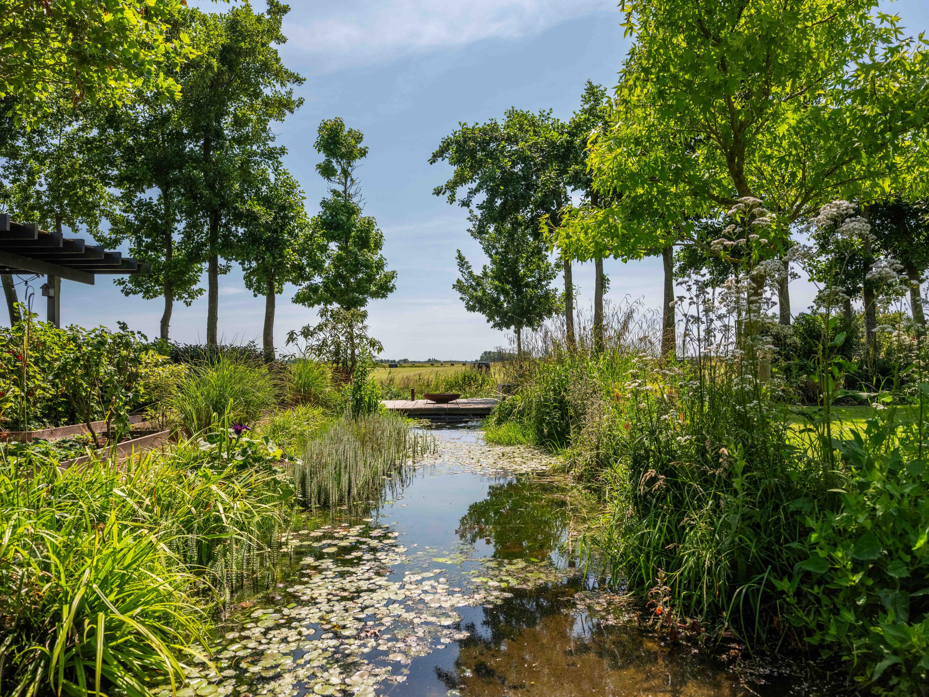 De tuin is een oase van rust en inspiratie, met meer dan fraaie beplanting, verschillende zitjes, een fantastische kas, kippen, zon- en schaduwplekken en een schitterend uitzicht. De kas is direct gekoppeld aan de fraai aangelegde moestuin. De kippen en een fruittuin maken het plaatje daarbij af.