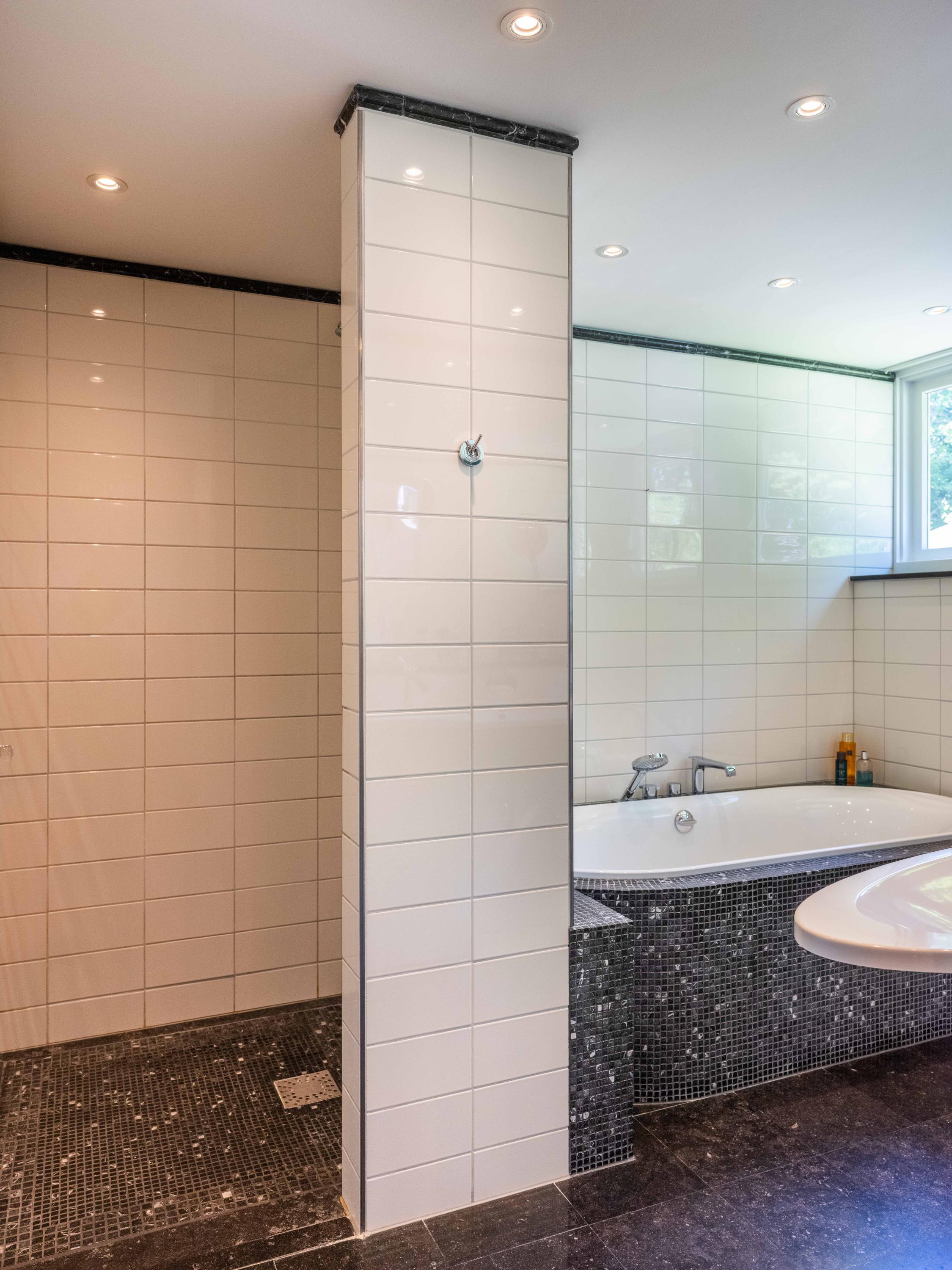 Tevens aan de overloop is nog de tweede kleinere badkamer met wastafel en douche te vinden.