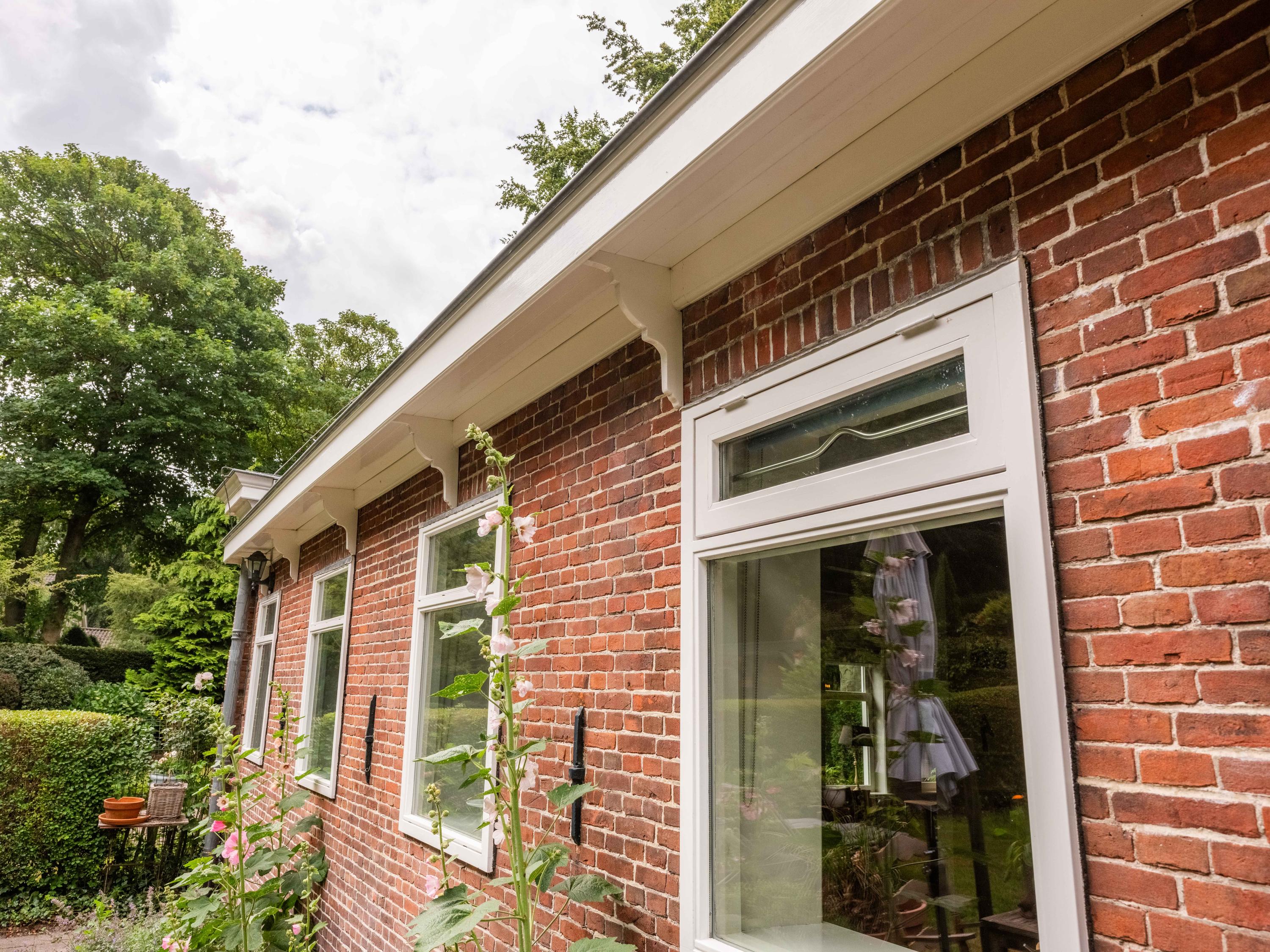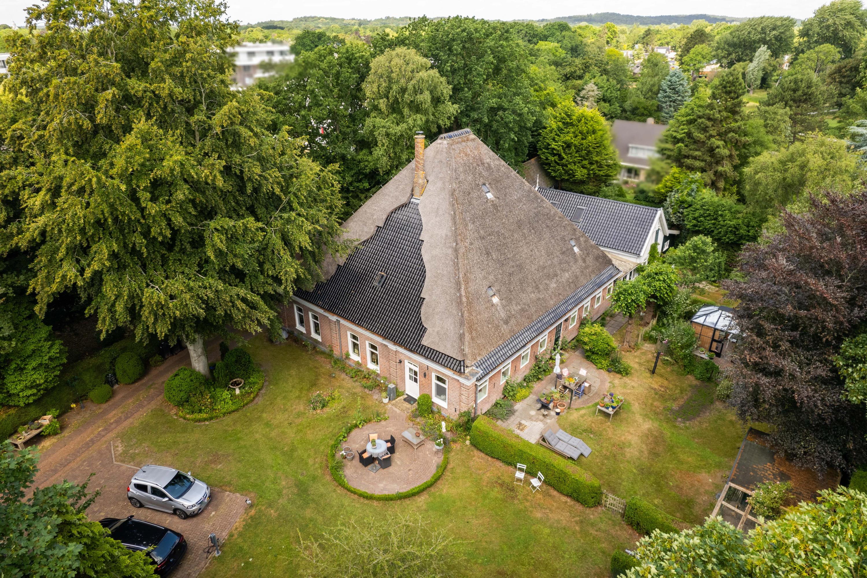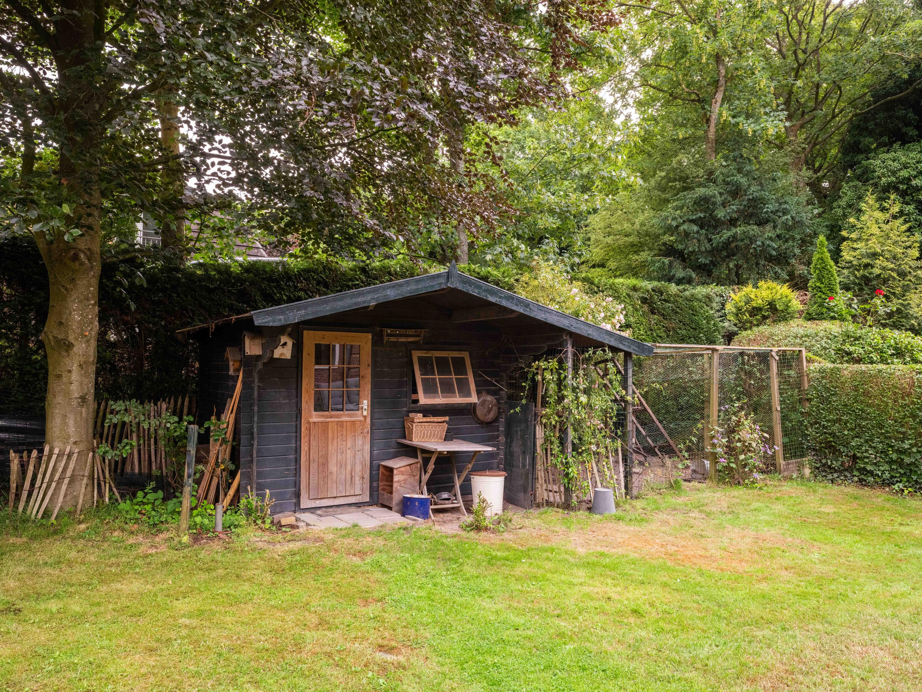 De tuin: Veel rust en privacy vindt u in de vol begroeide tuin rondom de woning. Het is een weelde om er doorheen te lopen. Zo vinden we er meerdere terrassen, een luxe plantenkas/orangerie, een kippenhok, een ruime houten garage met vide ( voor meerdere auto’s) en voldoende parkeergelegenheid daarnaast voor 2 auto’s. Tevens is de tuin voorzien van een bron en een bewateringssysteem.