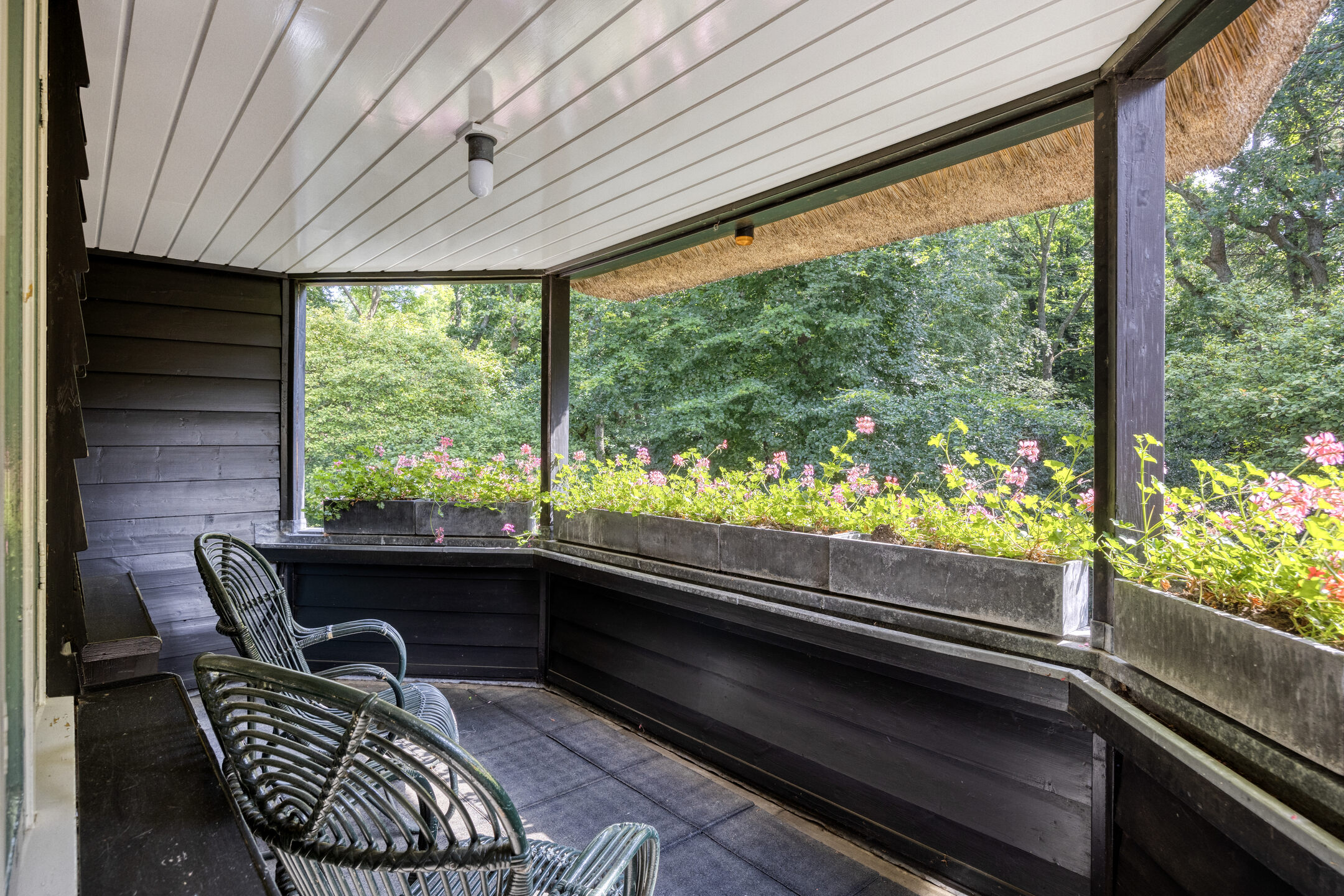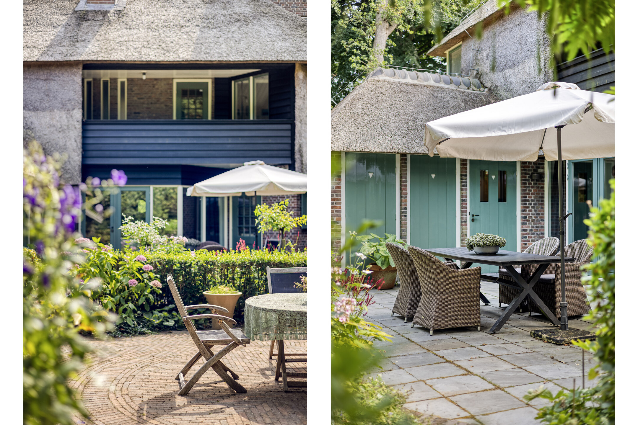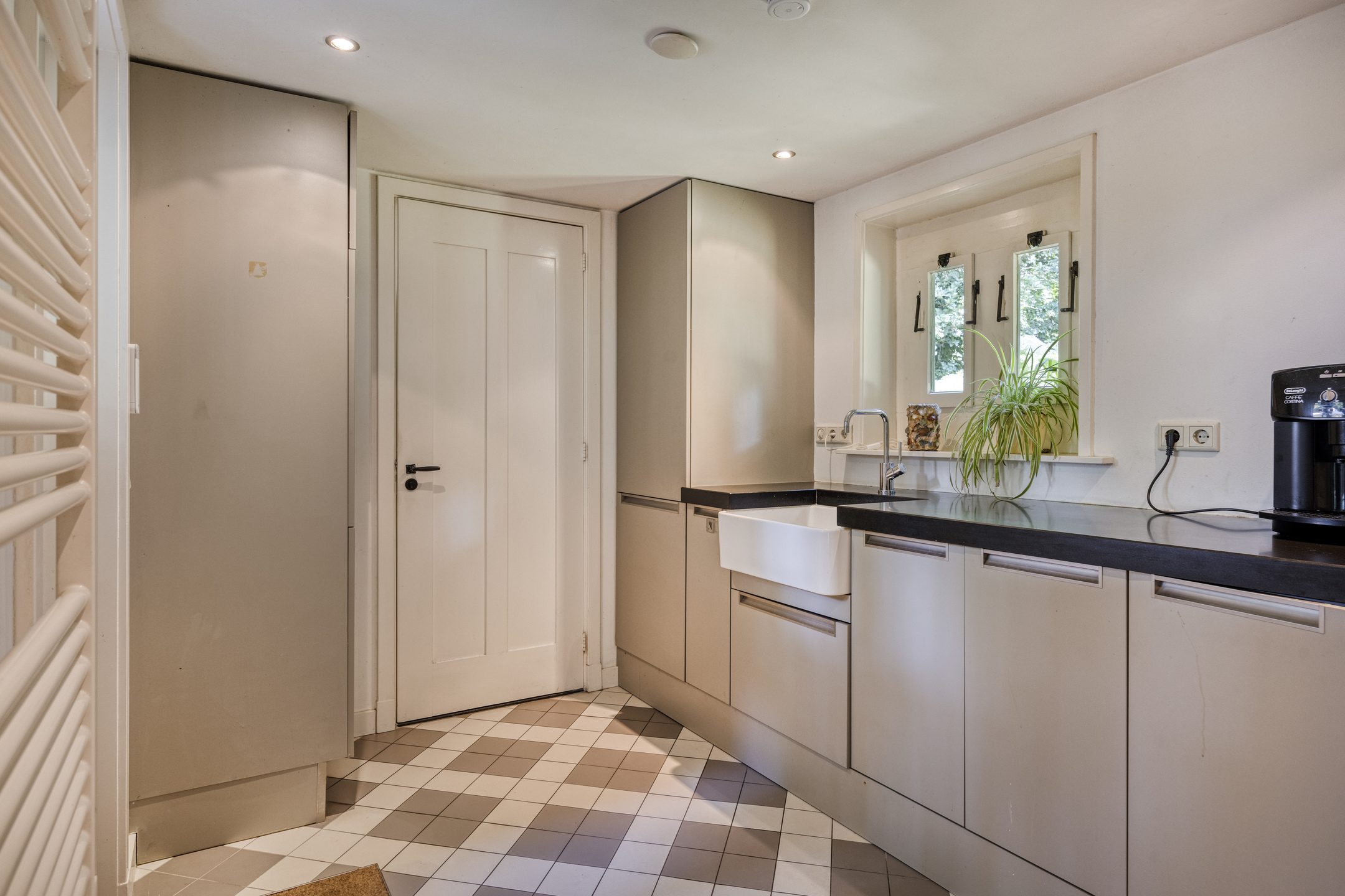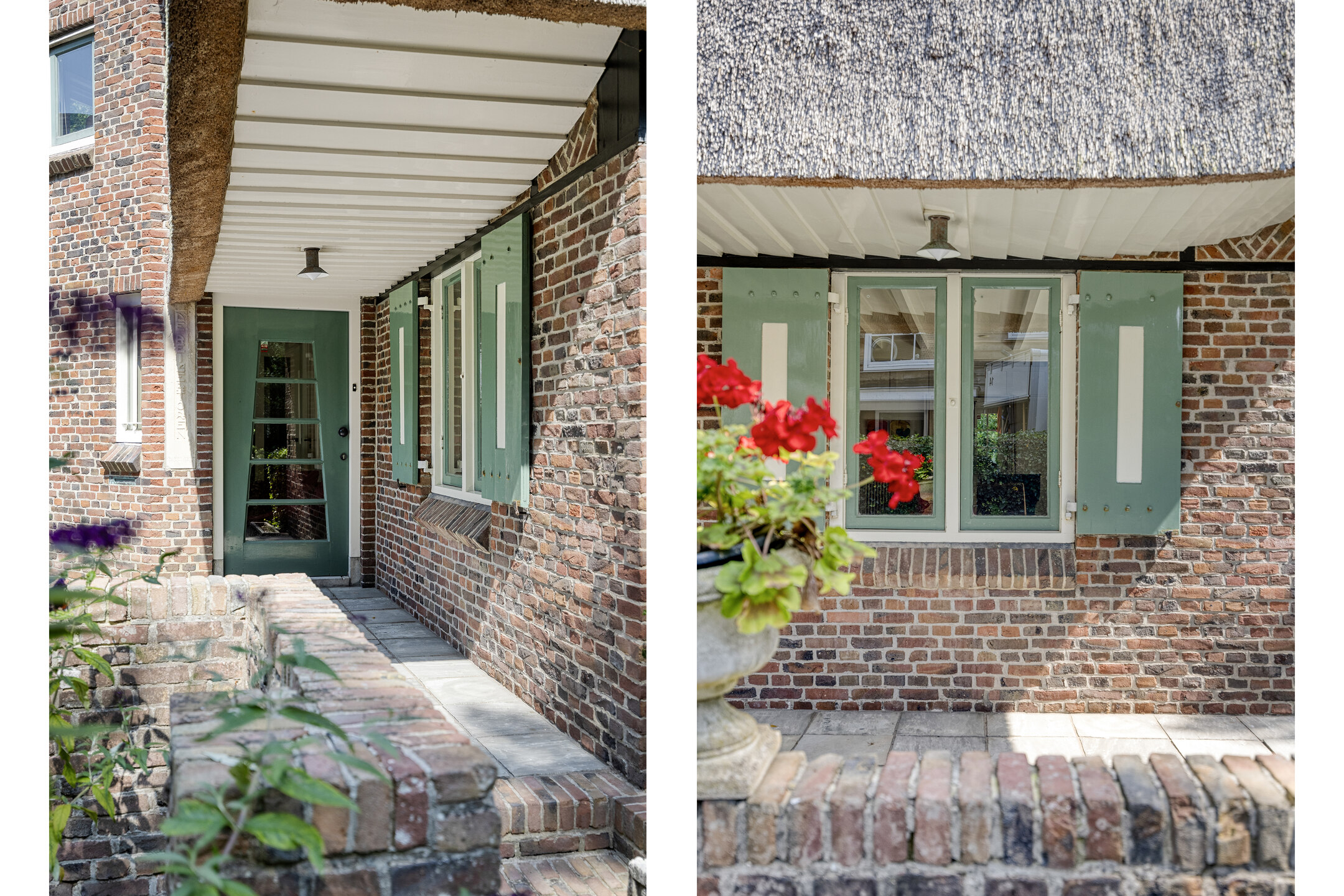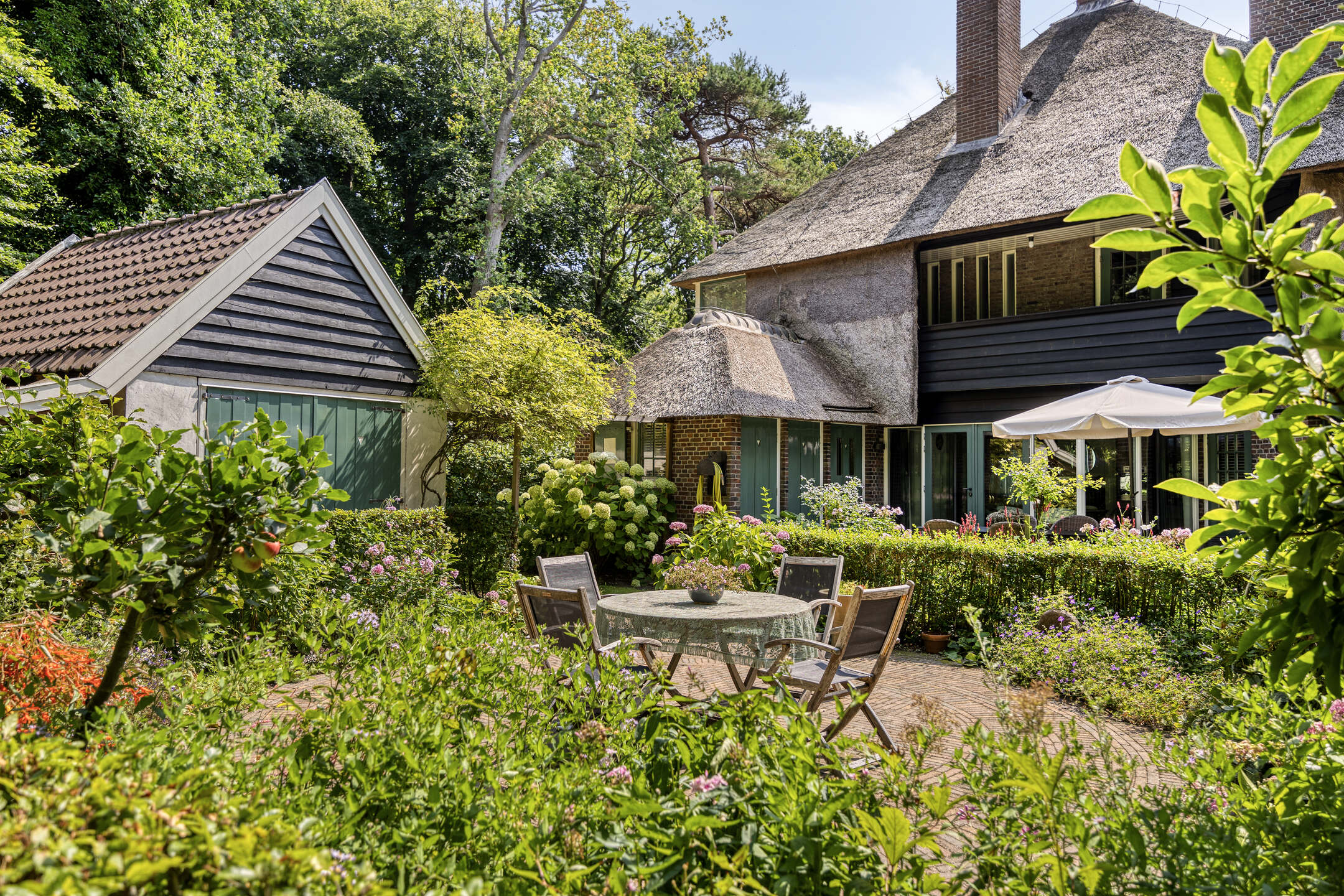 U bereikt de villa via een royale oprit met ruimte voor meerdere auto’s. Aan de voorzijde valt de imposante rieten kap direct op. Vanuit de entree komt u in de hal, die toegang geeft tot zowel de woonkamer als de woonkeuken. De keuken is voorzien van Bosch combimagnetron, AEG-inductiekookplaat, vaatwasser, koel-vriescombinatie, recirculatiekap en heeft vloerverwarming. De keuken heeft openslaande deuren naar een groot terras en de achtertuin. Aangrenzend aan de keuken ligt de bijkeuken met vloerverwarming, wasmachine- en drogeraansluiting en een douche met toilet en fontein.