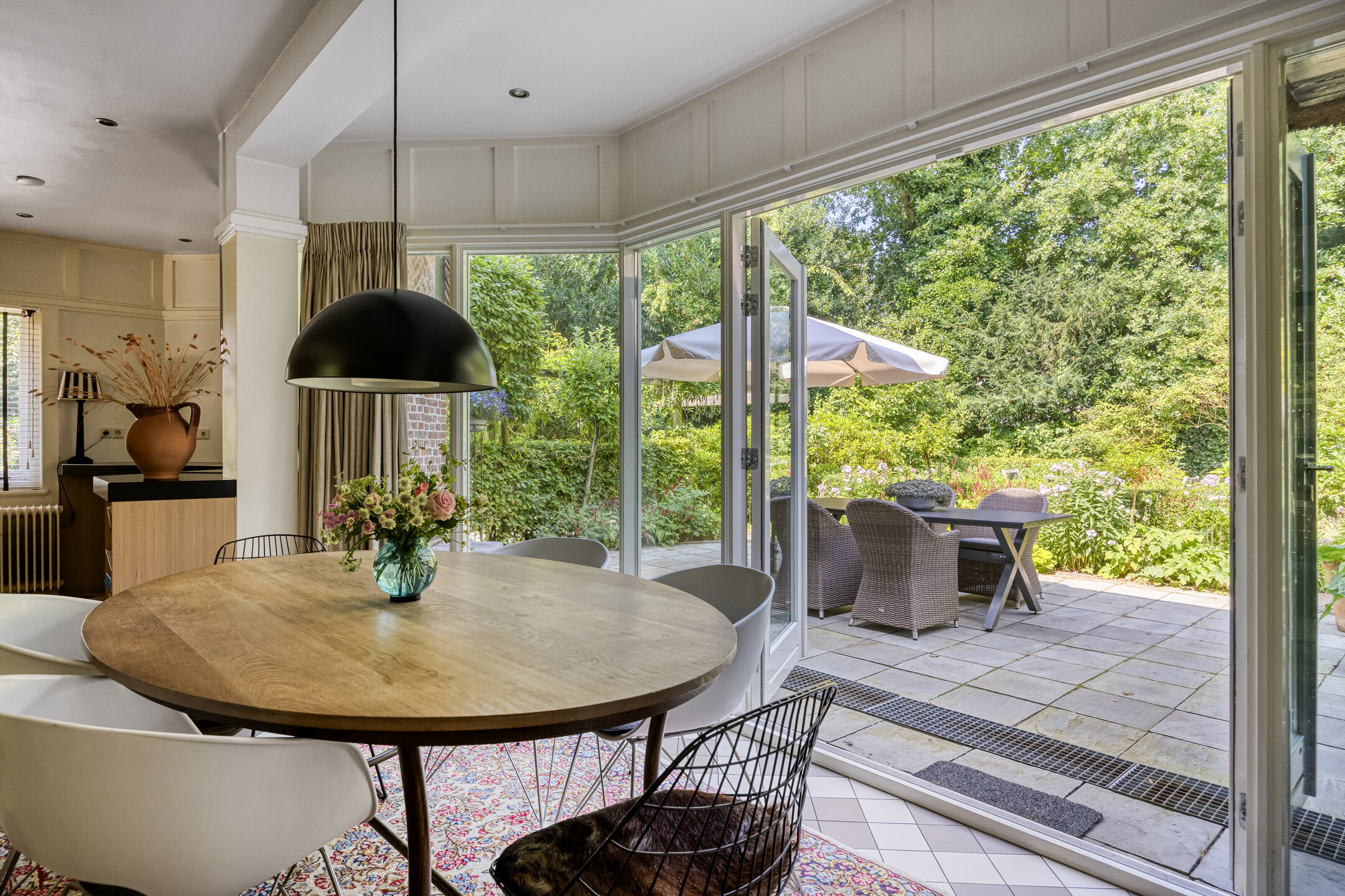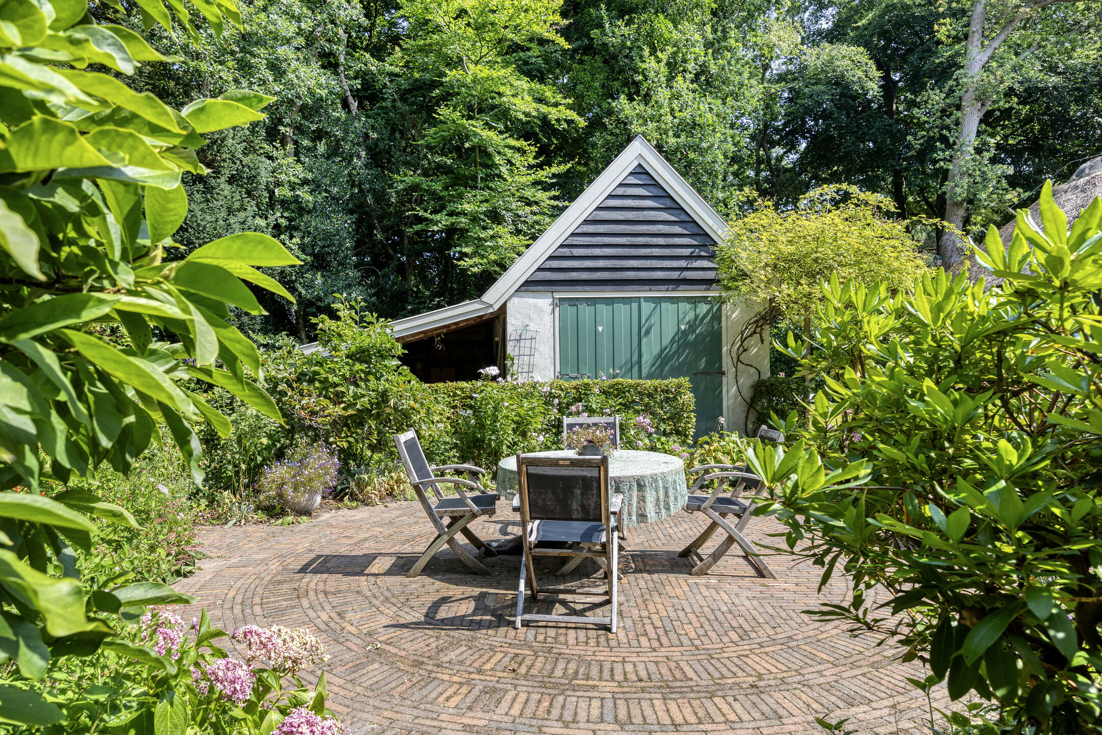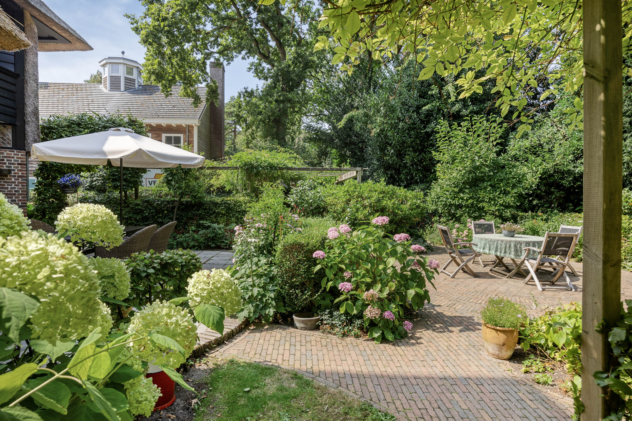 De tuin van de villa is een prachtig groen geheel. Op het ruime perceel van 1.310 m² vindt u prachtige borders, volwassen bomen en meerdere zonnige én beschutte terrassen waar u op elk moment van de dag een fijn plekje vindt. De royale oprit biedt plek voor meerdere auto’s en voor de elektrische rijder is er een laadpaal met eigen tussenmeter, handig voor privé én zakelijk gebruik. Een bronpomp zorgt ervoor dat u de tuin eenvoudig met grondwater kunt besproeien. Daarnaast beschikt de woning over een ruime garage/schuur met 8 zonnepanelen op het dak!