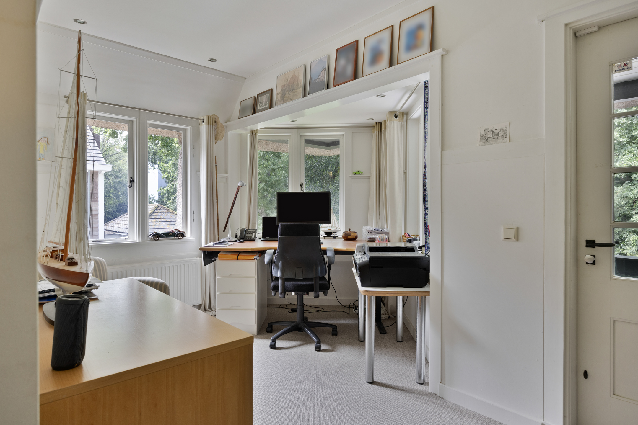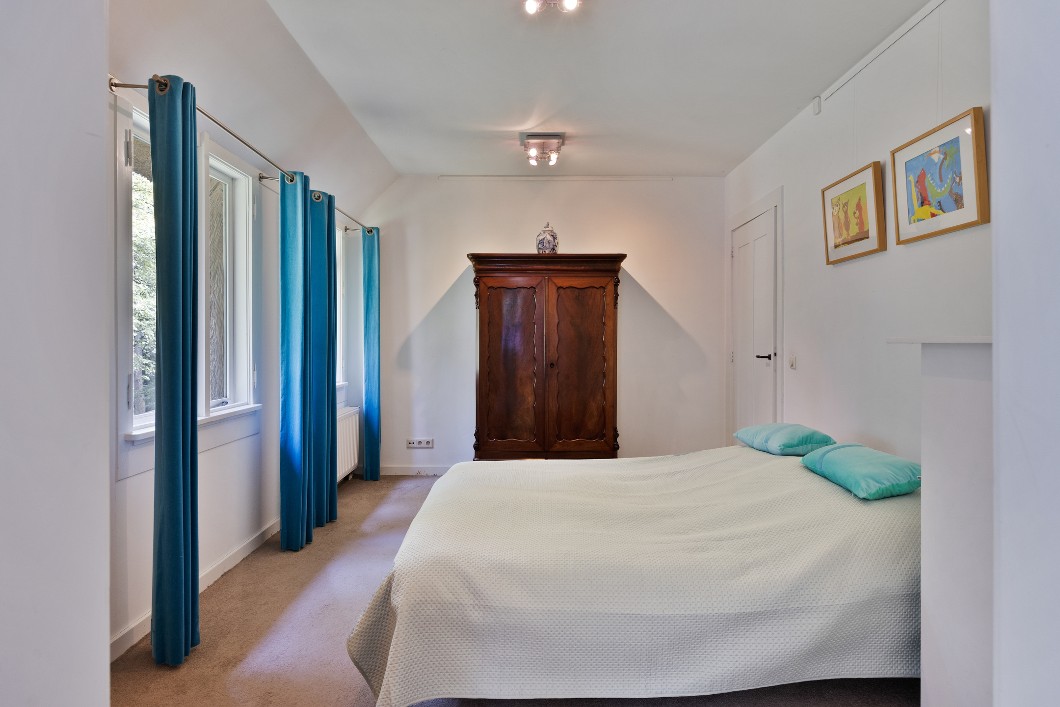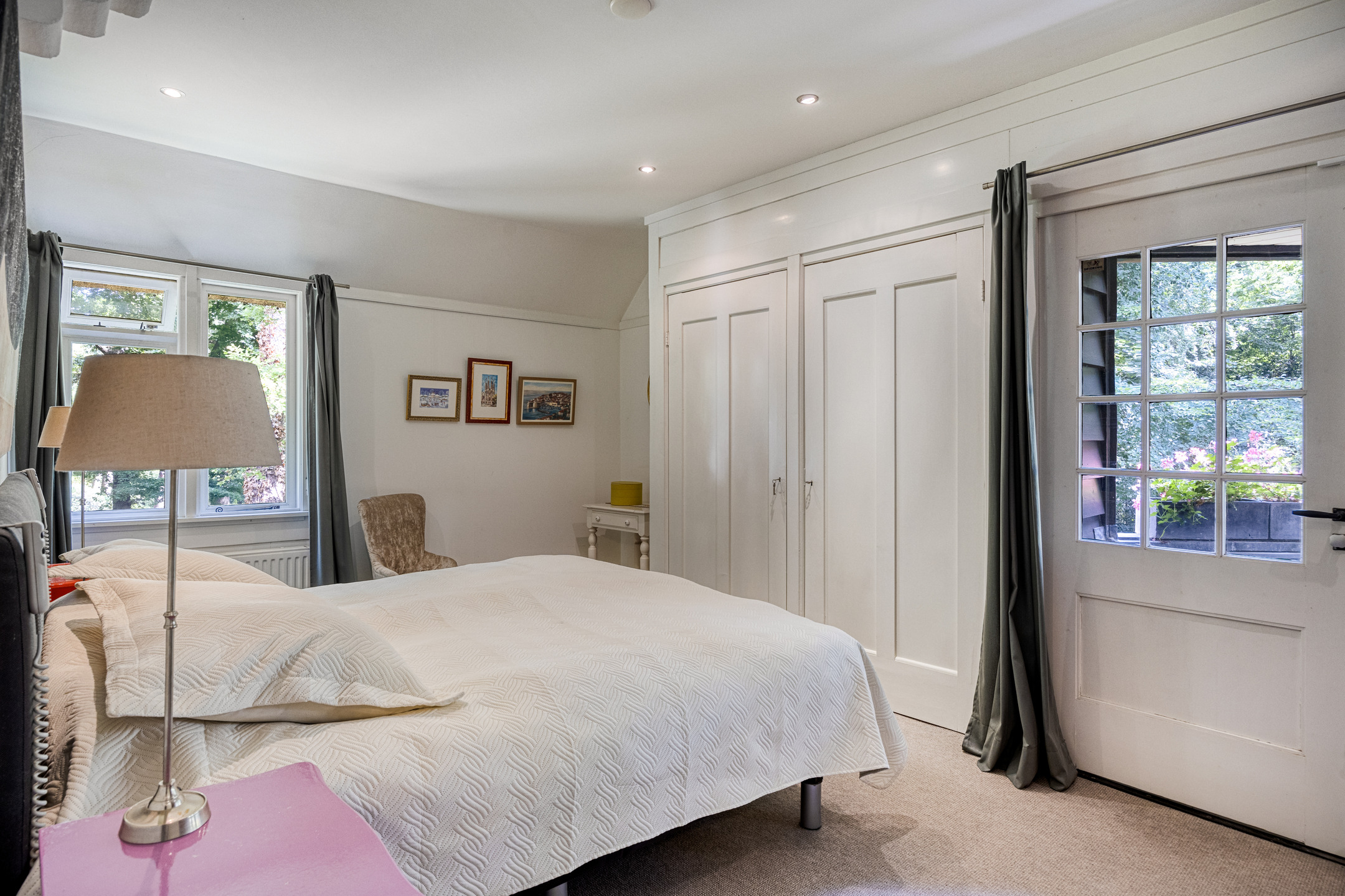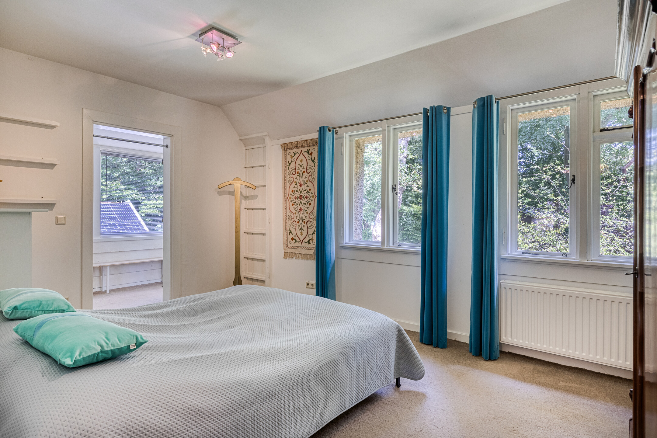 Op de 1e verdieping vindt u vier ruime slaapkamers, waarvan twee toegang hebben tot een zonnig balkon aan de voorzijde. Aan de achterzijde is een sfeervol kantoor ook voorzien van een karakteristieke schouw. De kamer geeft toegang tot het balkon aan de achterzijde van de villa. De vierde slaapkamer beschikt over een handige zijkamer en heeft tevens toegang tot het balkon aan de achterzijde. Vanaf de ruime overloop zijn de badkamer en het separate toilet met fonteintje te bereiken. De badkamer is licht en verzorgd, met een ligbad, inloopdouche en wastafel met meubel. De badkamer en het toilet zijn ook voorzien van vloerverwarming.
