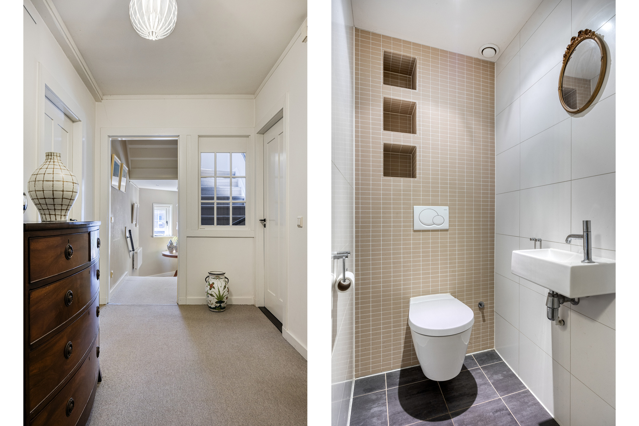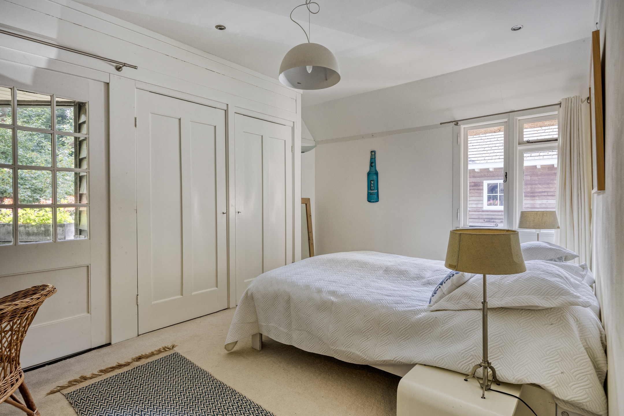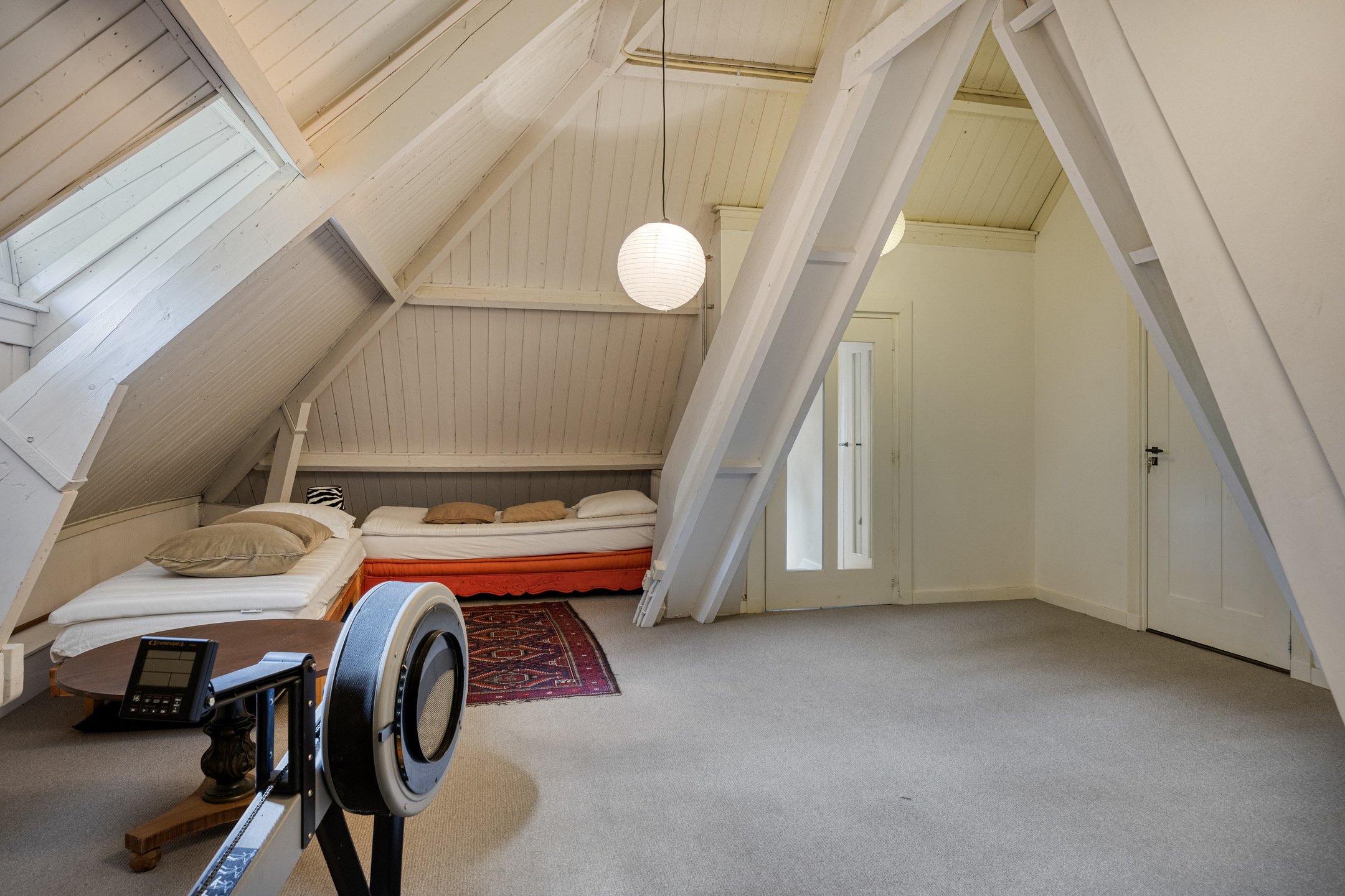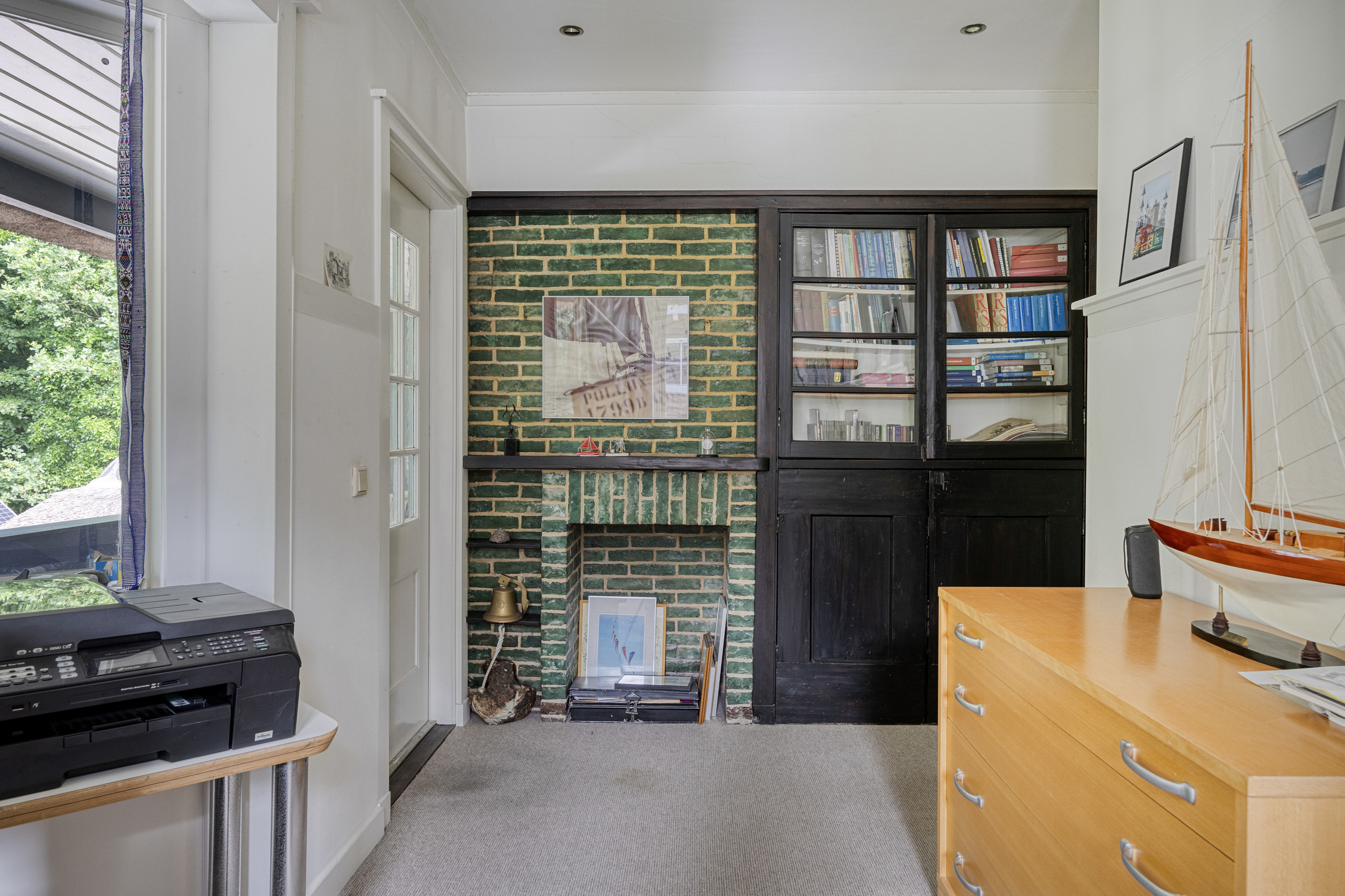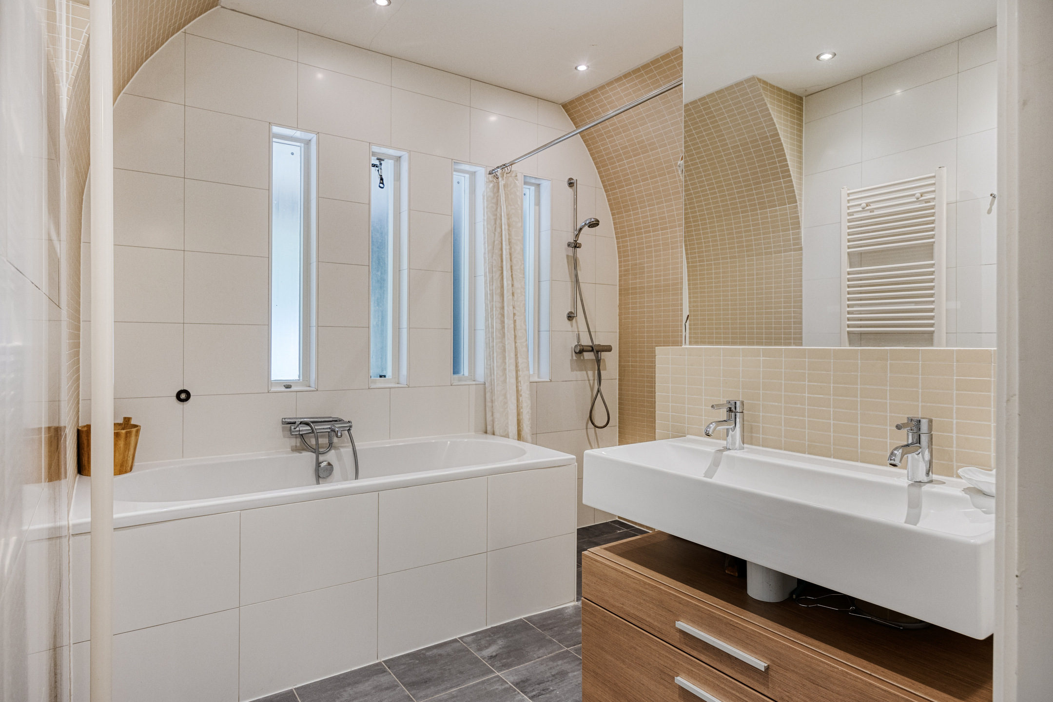 Op de 1e verdieping vindt u vier ruime slaapkamers, waarvan twee toegang hebben tot een zonnig balkon aan de voorzijde. Aan de achterzijde is een sfeervol kantoor ook voorzien van een karakteristieke schouw. De kamer geeft toegang tot het balkon aan de achterzijde van de villa. De vierde slaapkamer beschikt over een handige zijkamer en heeft tevens toegang tot het balkon aan de achterzijde. Vanaf de ruime overloop zijn de badkamer en het separate toilet met fonteintje te bereiken. De badkamer is licht en verzorgd, met een ligbad, inloopdouche en wastafel met meubel. De badkamer en het toilet zijn ook voorzien van vloerverwarming.