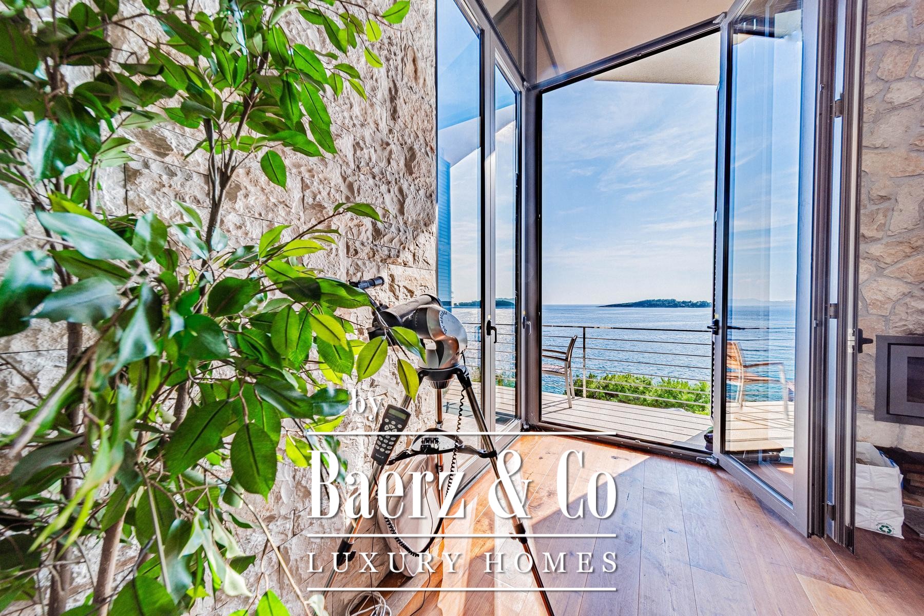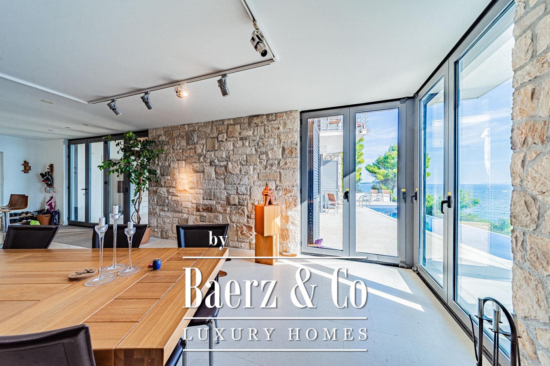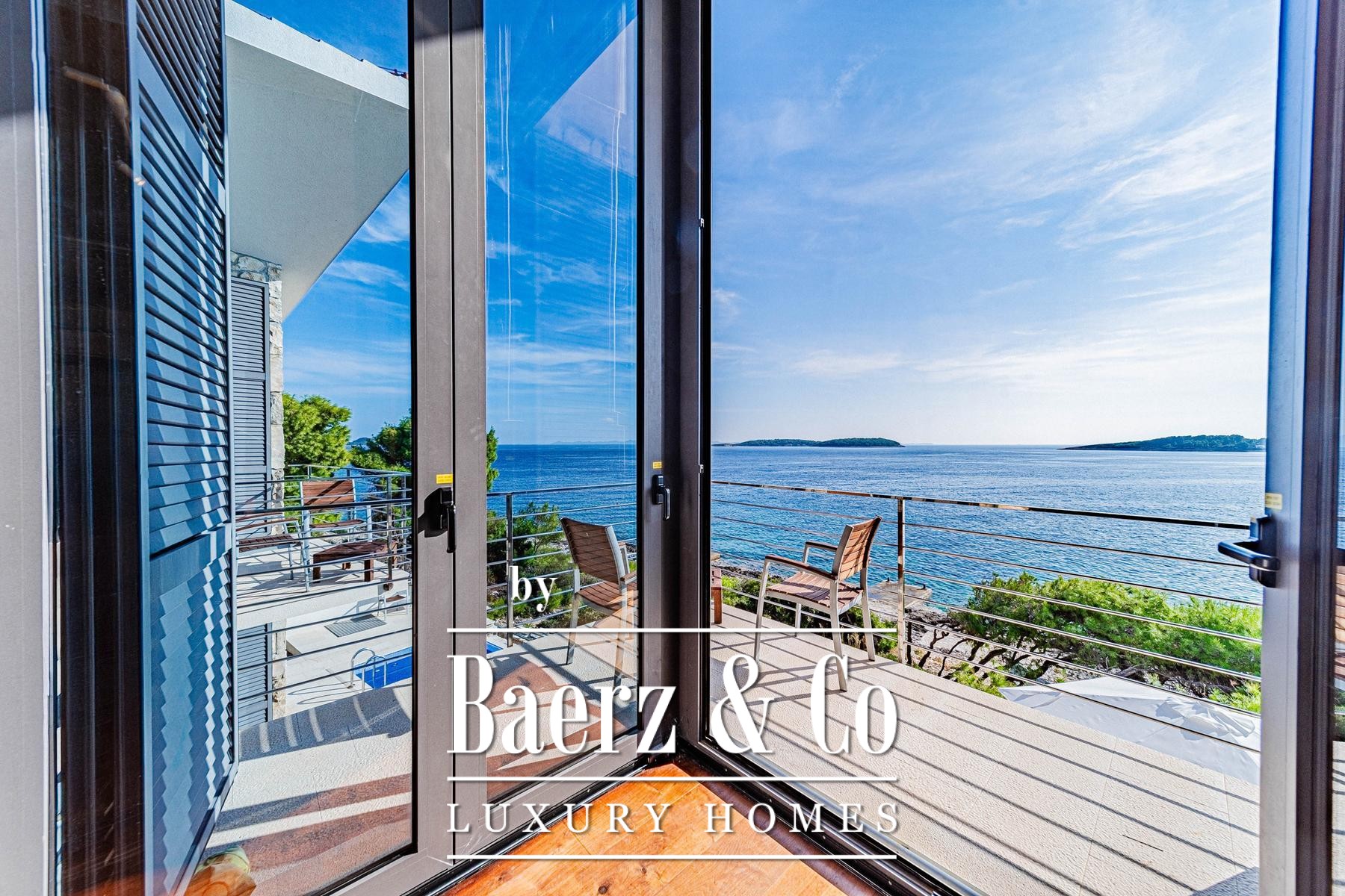 Vloer-tot-plafond uitzichten over de Adriatische Zee en de Lastovo archipel versterken de villa Blato-beleving als een plek van privacy, rust en pure schoonheid, een authentieke verbeelding van het Kroatische kustleven.