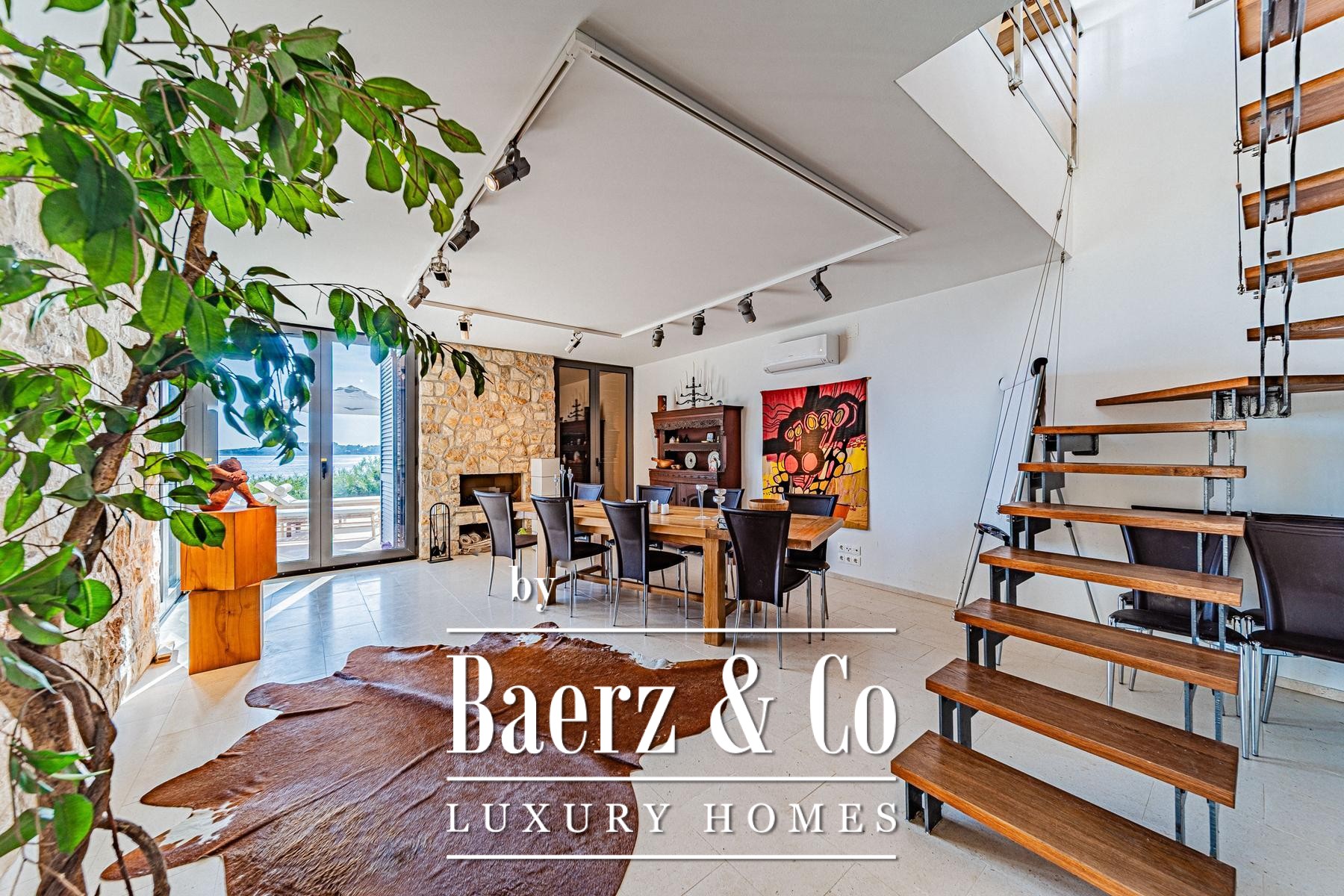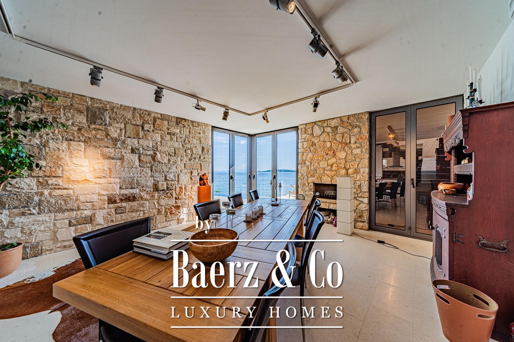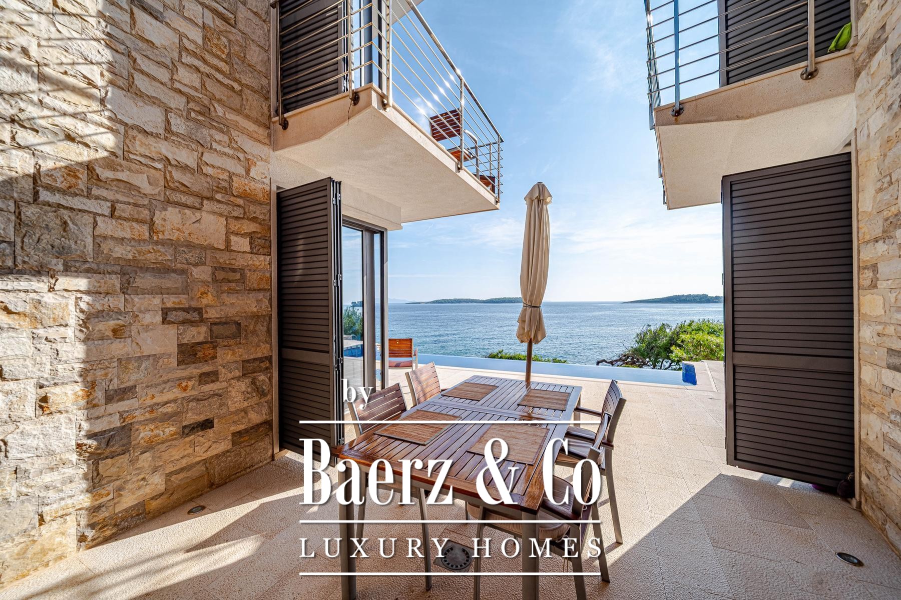Vloer-tot-plafond uitzichten over de Adriatische Zee en de Lastovo archipel versterken de villa Blato-beleving als een plek van privacy, rust en pure schoonheid, een authentieke verbeelding van het Kroatische kustleven.