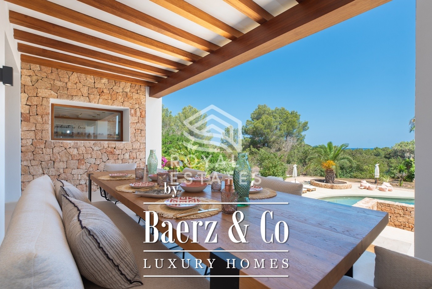 Villa Cala Bassa verenigt ingetogen luxe en de Ibiza-lifestyle in een uitzonderlijke woning van 586 m². Deze villa in Cala Bassa onderscheidt zich door panoramisch zeezicht en een bevoorrechte ligging op loopafstand van Cala Bassa en Cala Comte. De woning valt op dankzij het verfijnde comfort, volledige inrichting en een zorgvuldig uitgevoerde turn-key standaard die inspeelt op de wensen van internationale eigenaren.