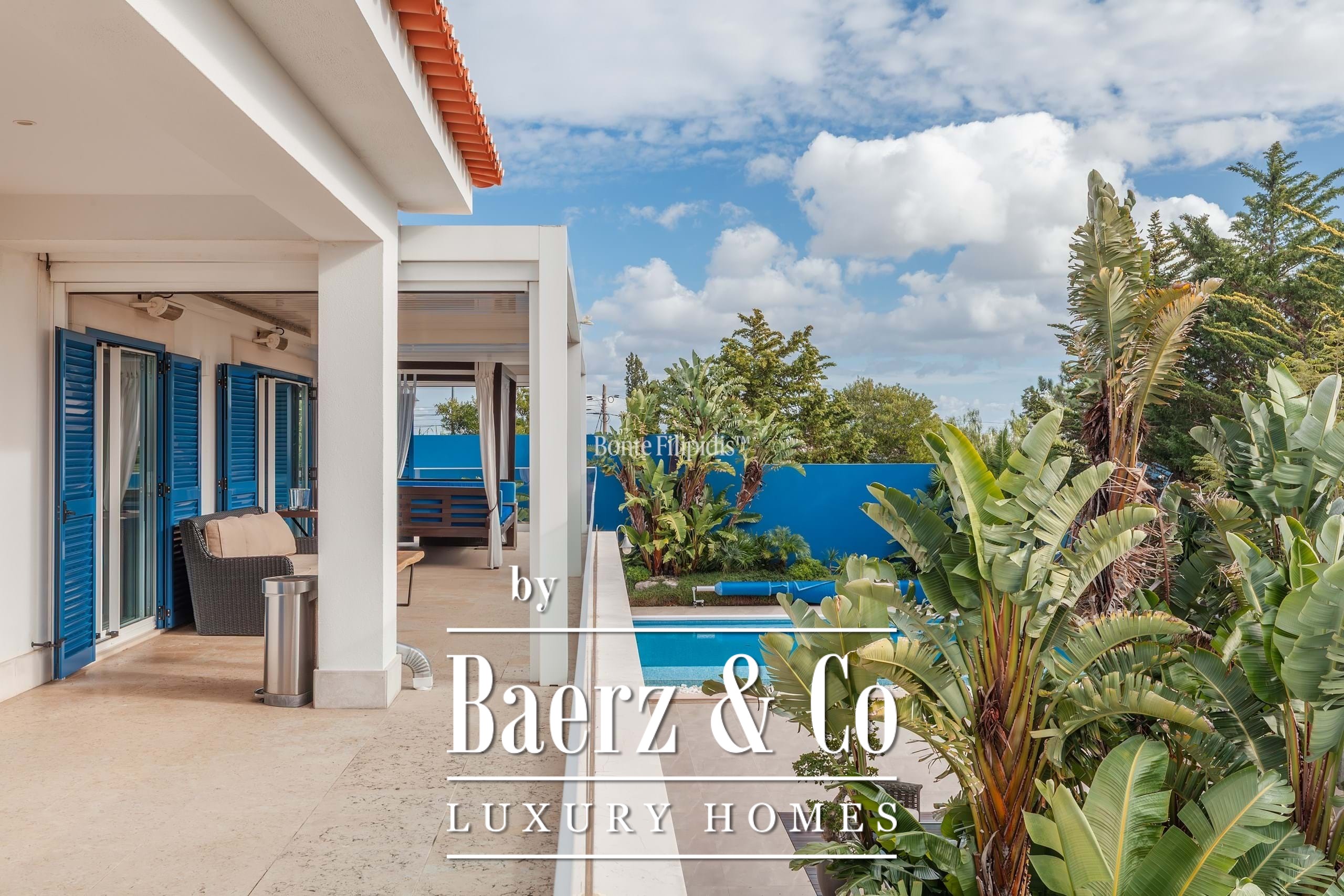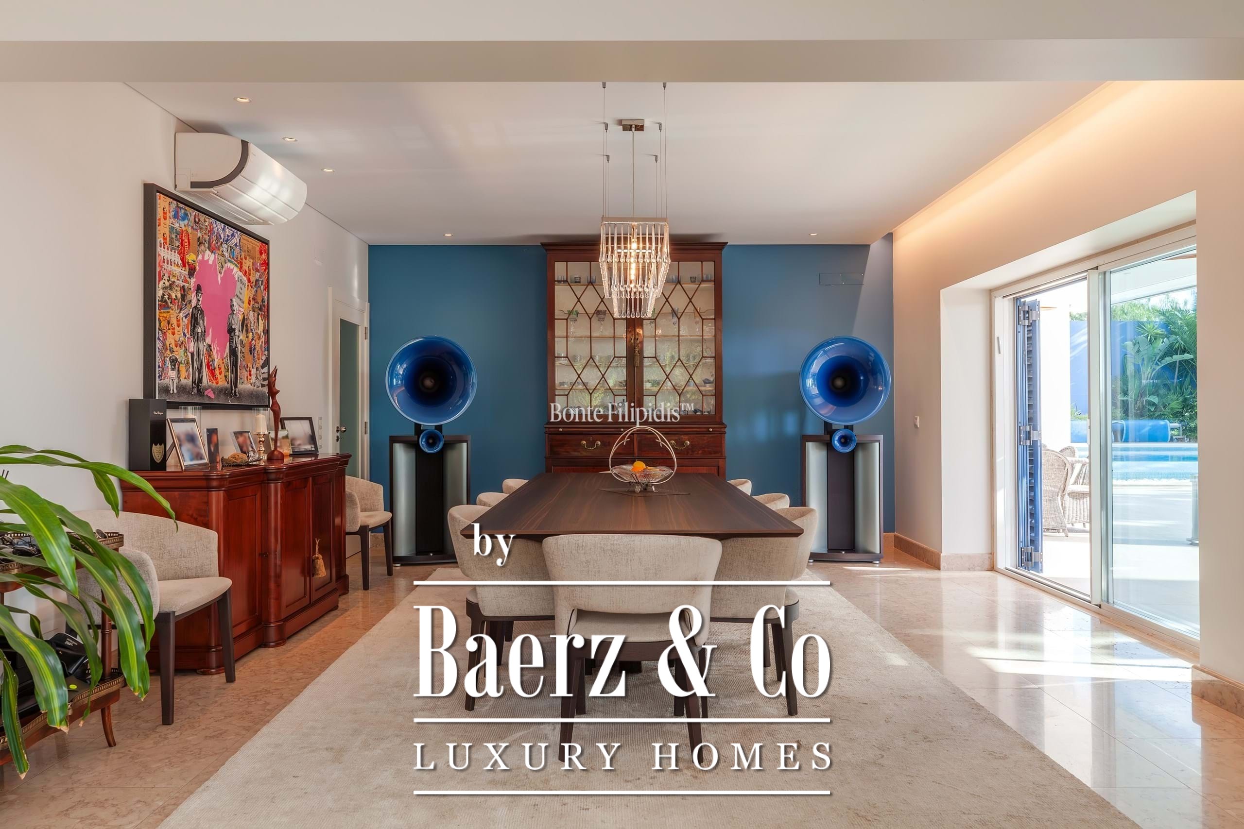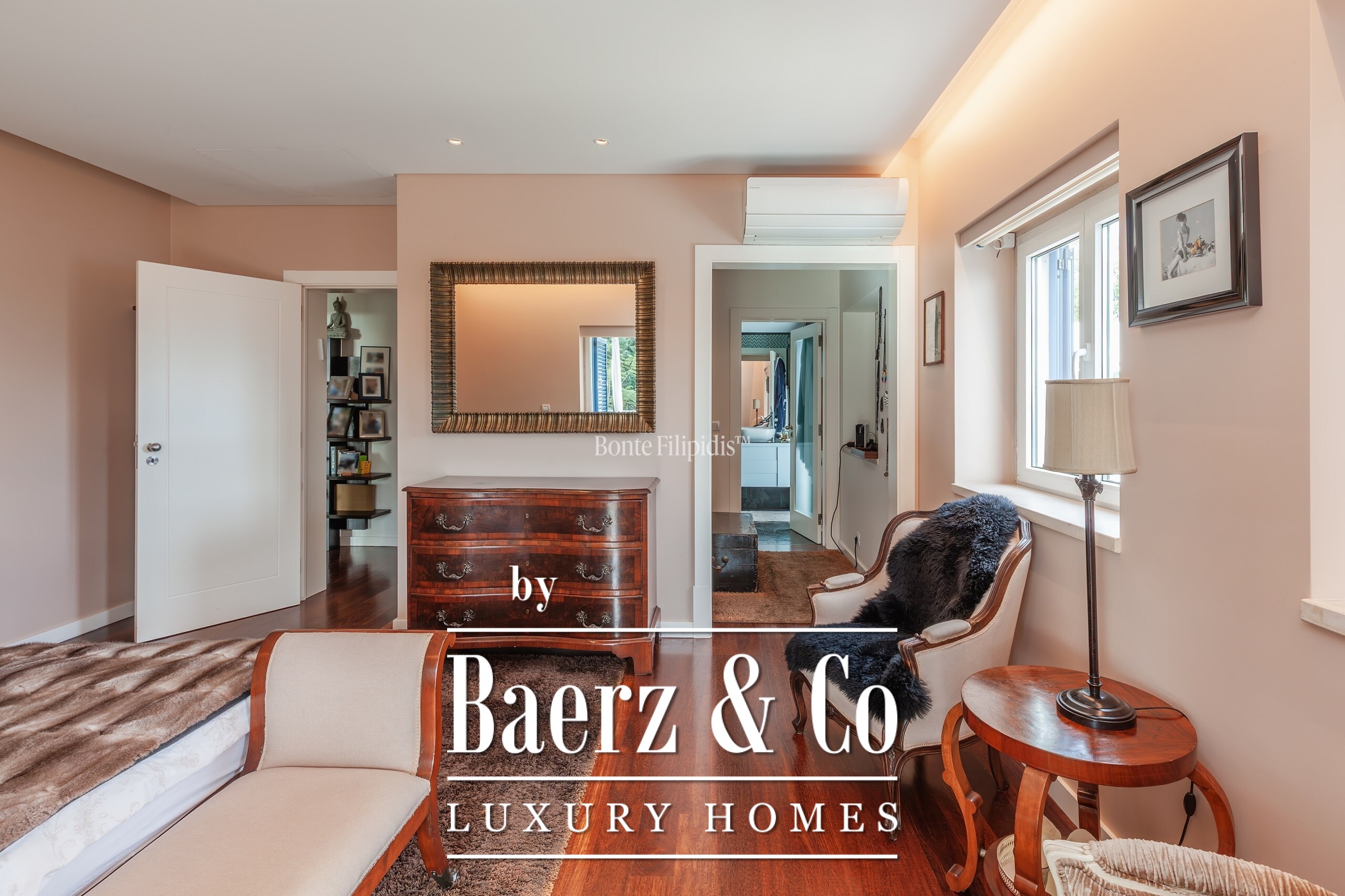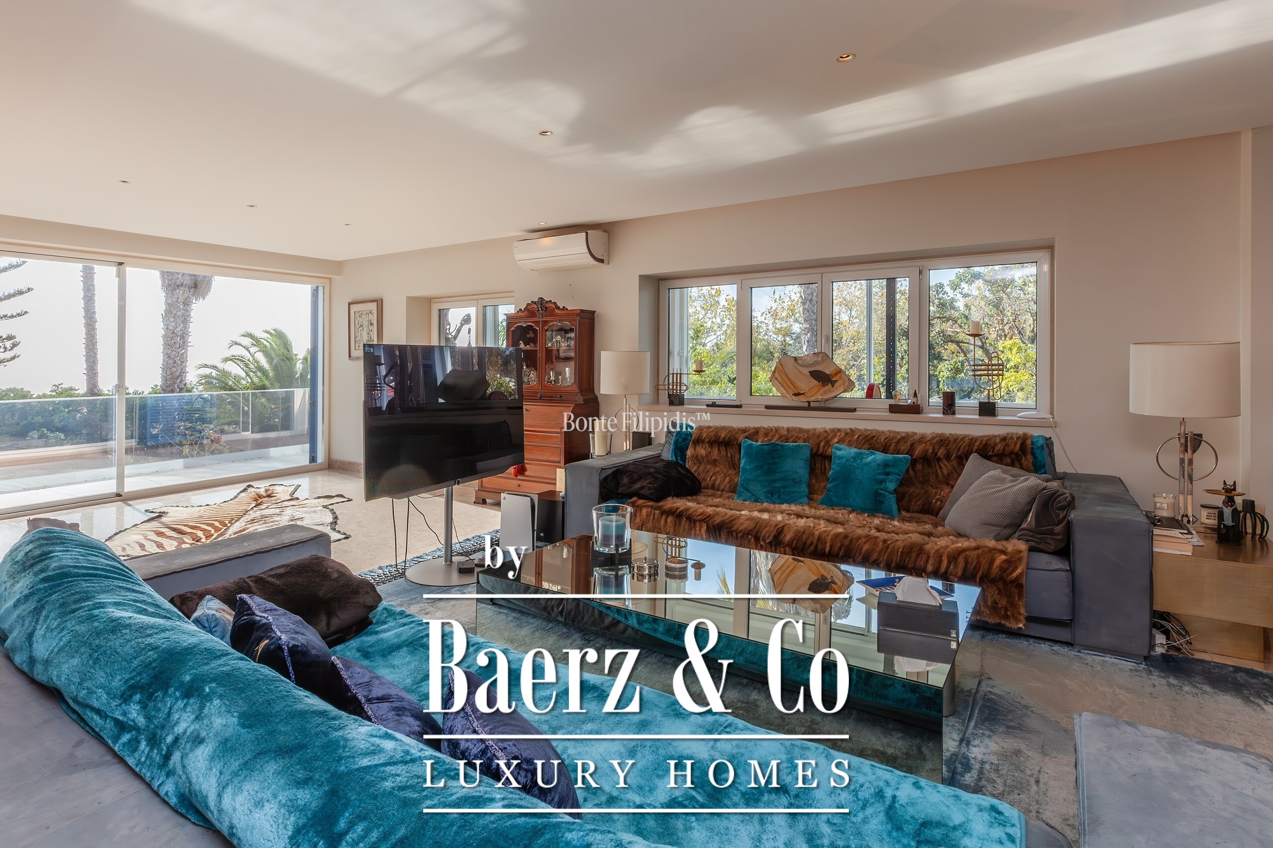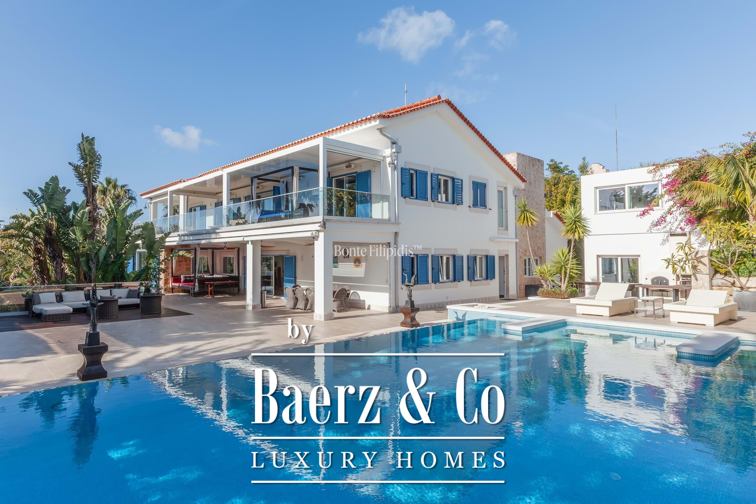 Villa Cascais e Estoril ligt op een uitzonderlijk perceel van 2.100 m² op het hoogste punt van Estoril en creëert een zeldzame balans tussen beslotenheid en comfort. Deze villa bevindt zich tussen de gerenommeerde Estoril Golf Course en directe, exclusieve toegang tot de Estoril Tennis Club; een harmonieuze combinatie van privacy en verbondenheid. Over twee verdiepingen ontvouwt zich het zeezicht, terwijl royale terrassen de tuin verdelen in diverse leefruimtes, voorzien van overdekte zitplekken, een vijver, waterval, jacuzzi en verwarmd zoutwaterzwembad voor een serene ambiance.