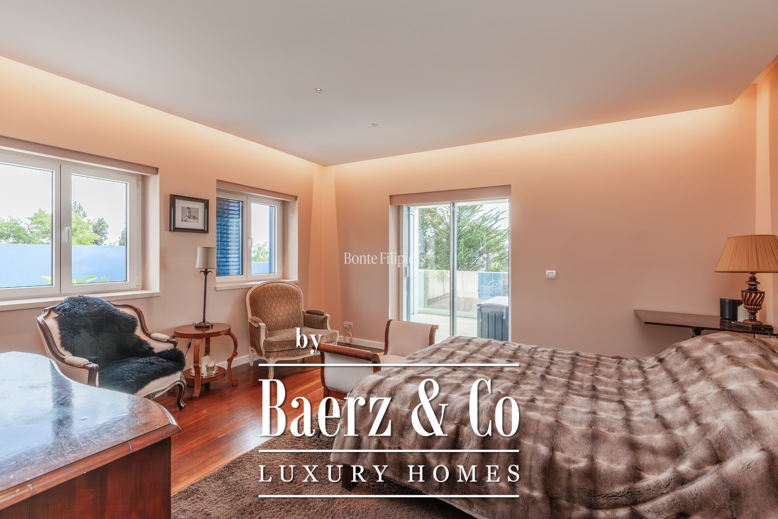 Een afzonderlijke wellness-suite omvat een gym, pilatesstudio, sauna, hamam en bioscoop, buiten aangevuld met een poolhouse voorzien van bar, buitenkeuken en ontspanningsruimtes. De garage herbergt meer dan zes auto's en combineert praktisch gemak met ingetogen luxe. Op korte afstand van Casino Estoril en centrale faciliteiten onderscheidt deze woning zich door haar omvang, verfijnde discretie en complete voorzieningen in een felbegeerd segment. Woningen met deze omvang en privacy, zoals deze luxe villa te koop in Cascais e Estoril, blijven uiterst bijzonder.