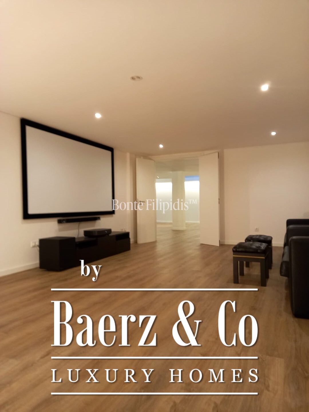 Op de benedenverdieping is veelzijdigheid troef. De garage van 61,49 m², een personeels- of logeersuite met eigen toegang vanaf de straat, een homecinema van 31,29 m², een entertainmentruimte van 74,39 m² en een wijnkelder van 31,59 m² bieden samen een as voor ontspanning en privacy. Multifunctionele ruimtes kunnen dienstdoen als fitness, spa of speelkamer, afhankelijk van de behoefte. Door het hele huis garanderen vloerverwarming, airconditioning, ook in het souterrain, en voorgeïnstalleerde home-entertainmentsystemen een verfijnde en comfortabele leefomgeving. De lokale voorzieningen—dichtbij restaurants, stranden, golfbanen, scholen en stedelijke verbindingen—maken het plaatje voor eigentijds wonen in deze villa in Cascais e Estoril compleet.