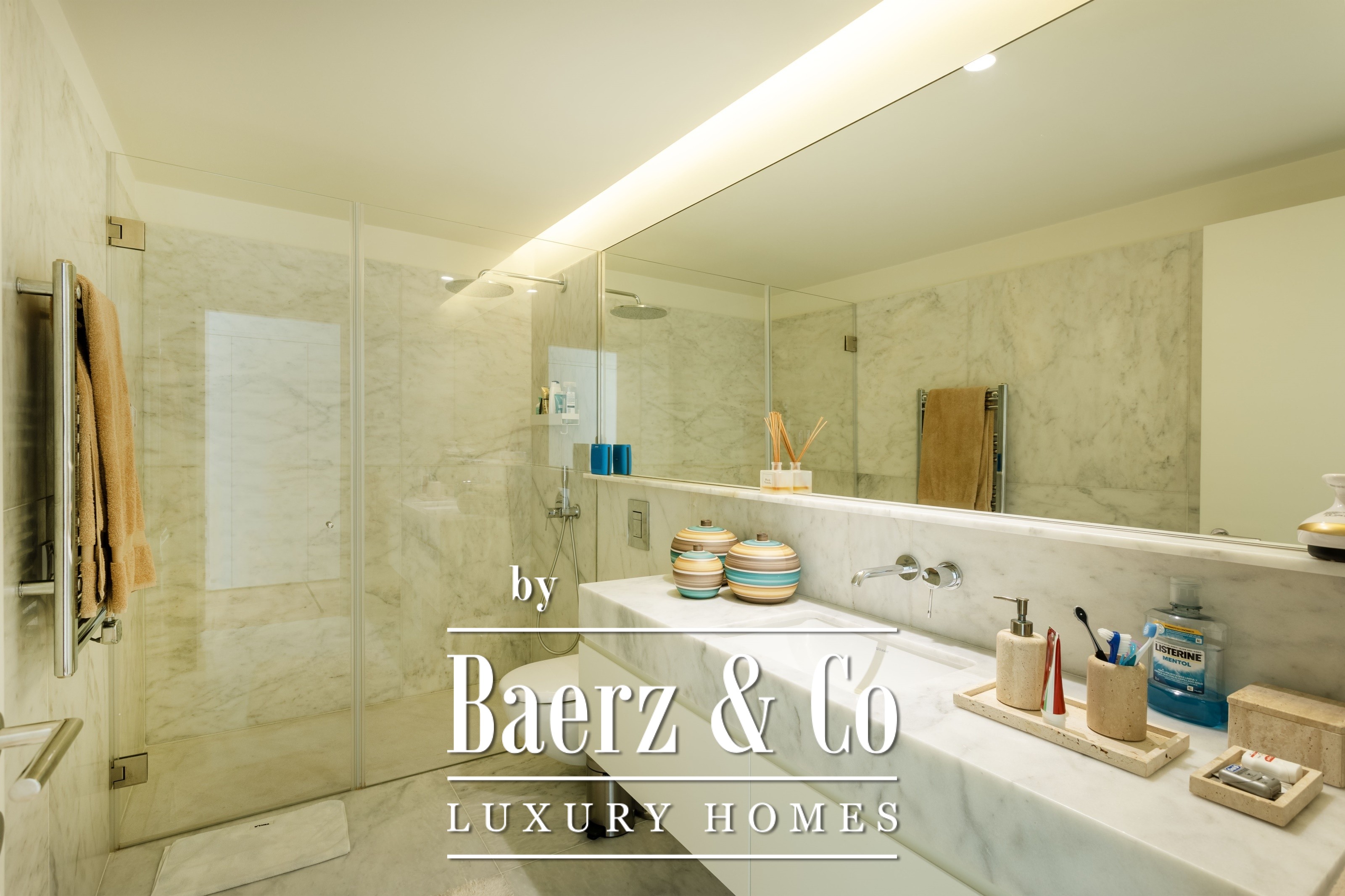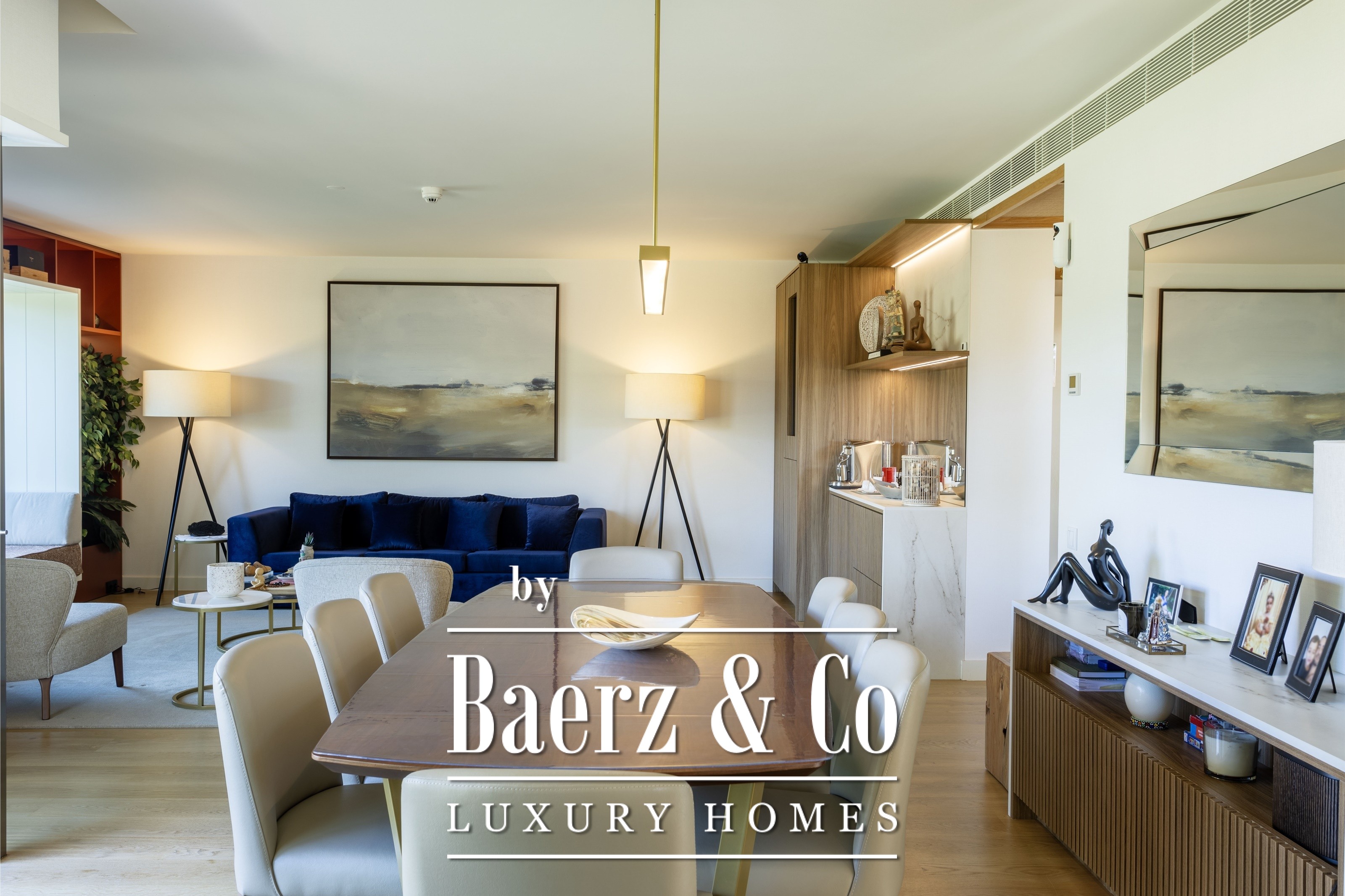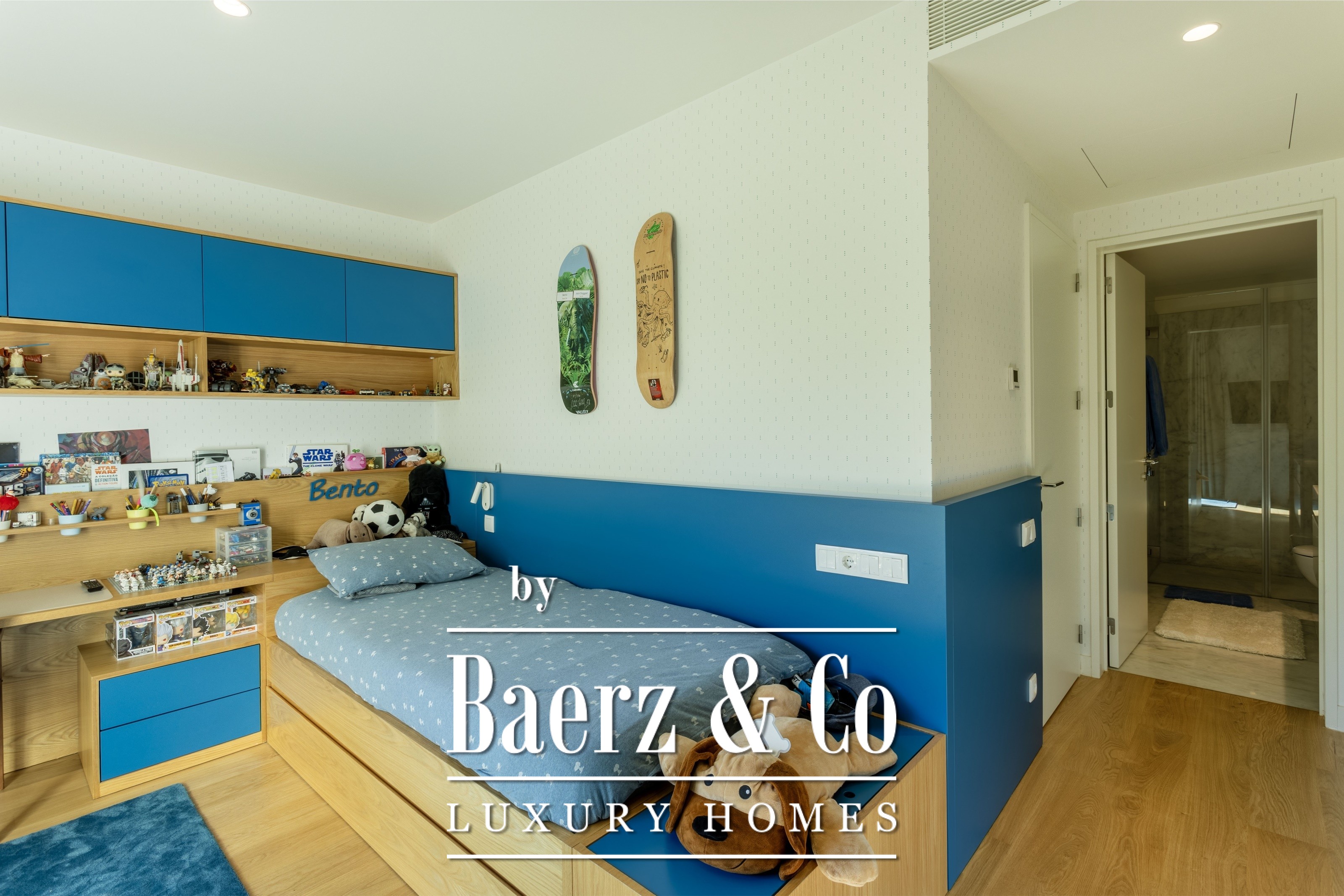 Appartement Cascais verenigt architectuur en rust in het Marinha Prime Condominium, waar design en privacy samenkomen. Deze driekamerwoning met een bruto privéoppervlak van 182 m² biedt een harmonieuze overgang tussen het binnenleven en een fraai aangelegde tuin van 400 m². Iedere slaapkamer is een suite, allen voorzien van inbouwkasten, badkamers met vloerverwarming en rustgevend uitzicht op de tuin. De woon- en eetkamer komen uit op het terras van 33 m² dat direct toegang geeft tot een privé verwarmd zwembad. De volledig uitgeruste keuken grenst aan een afgesloten balkon; een aparte werkkamer, tv-ruimte en wasruimte maken het dagelijks wonen compleet. Volledige airconditioning zorgt voor comfort in elk seizoen.