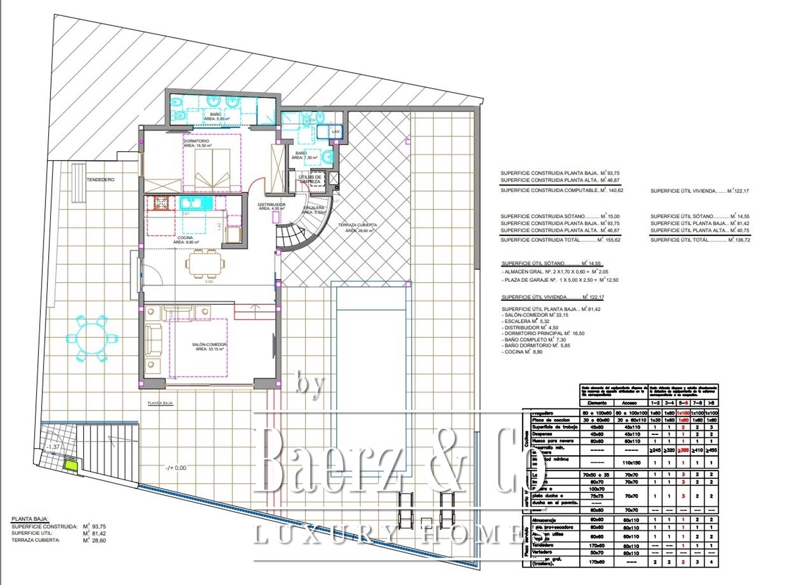 Er is een groot overdekt terras, ontworpen als buitenlounge, maar het kan gemakkelijk worden afgesloten met ramen om een extra woonkamer te creëren, waardoor de huidige woonkamer kan worden omgebouwd tot een eetkamer of een extra slaapkamer. Er blijft nog voldoende ruimte over op het terras voor een buitenlounge en eethoek.