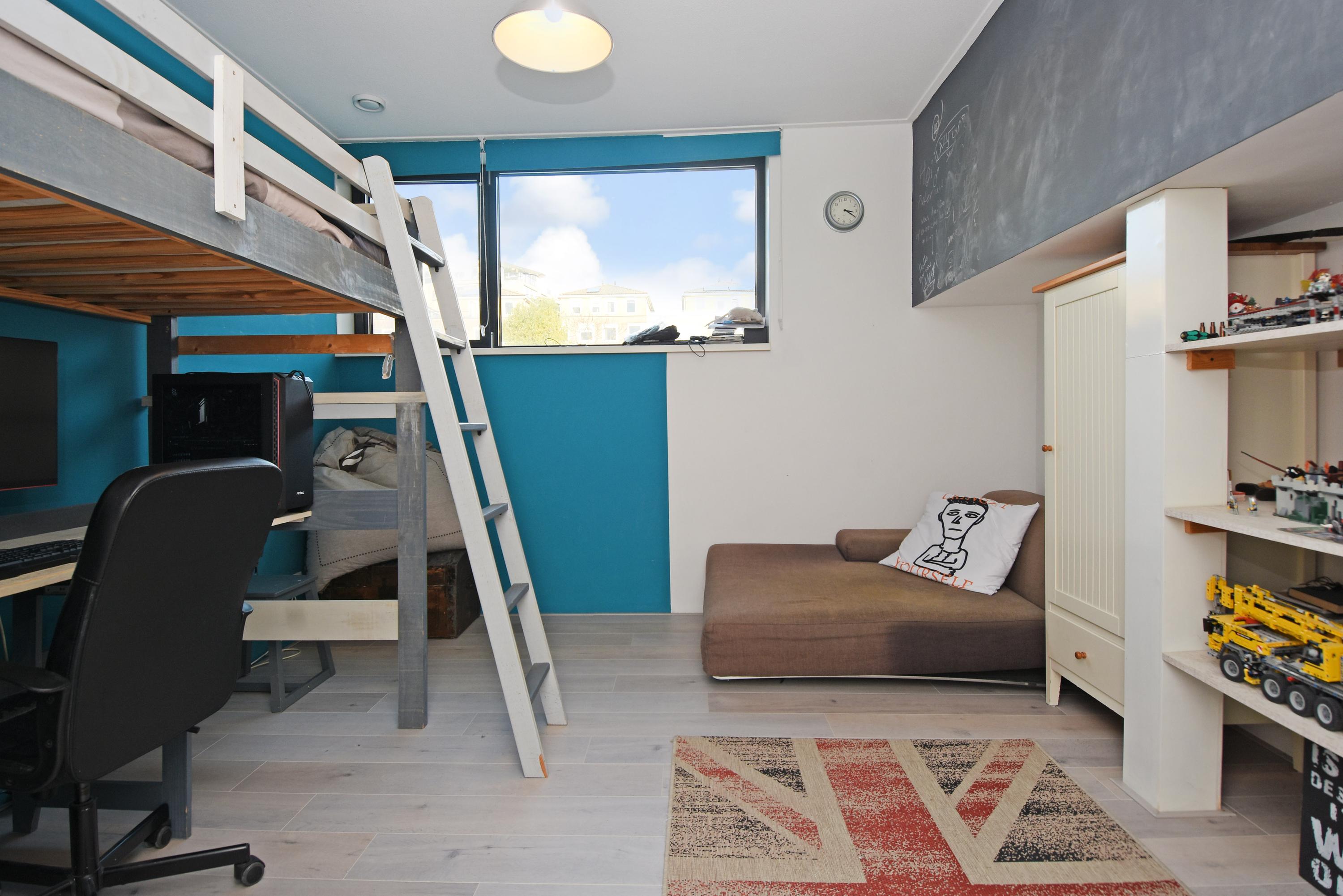 Vanuit de woonkeuken kom je via een vaste trap naar boven op de vide, die je voor meerdere doeleinden (o.a. werkplek, bibliotheek, tv-kamer) kunt gebruiken. De grote verrassing is het aansluitend gelegen, fraai aangelegde en royale dakterras met veel privacy en gezelligheid, waar je werkelijk de gehele dag de zon kunt vinden.
