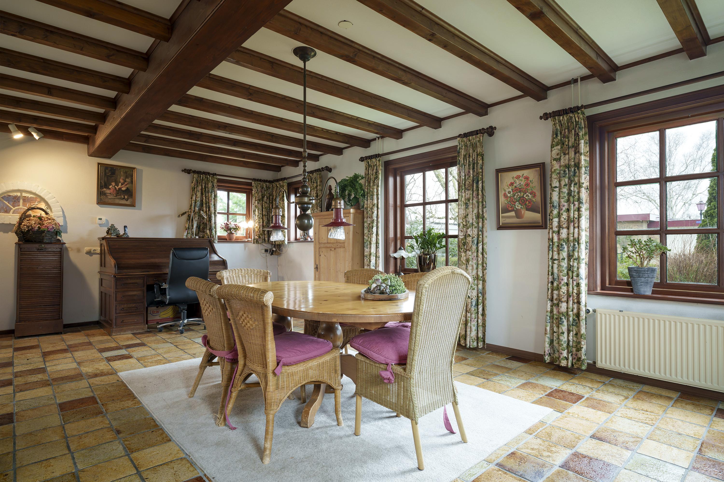 Een meesterstuk van de hand van architect Tom Markus, is deze royaal bemeten boerenvilla (312 m2 GO, NEN 2580). Perfect 'dwars' gesitueerd op een handzaam kavel met veel privacy (4460 m2 EIGEN GROND). Oerdegelijke bouw, maar met nostalgische elementen zijn verwerkt in het ontwerp. De gemetselde gevels met ijzeren ankers en houten luiken in het zicht, de samengestelde kap met wolfseinden en gemêleerde klassieke dakpannen en het luik in de gevel van de garage, zijn een knipoog naar het verleden.