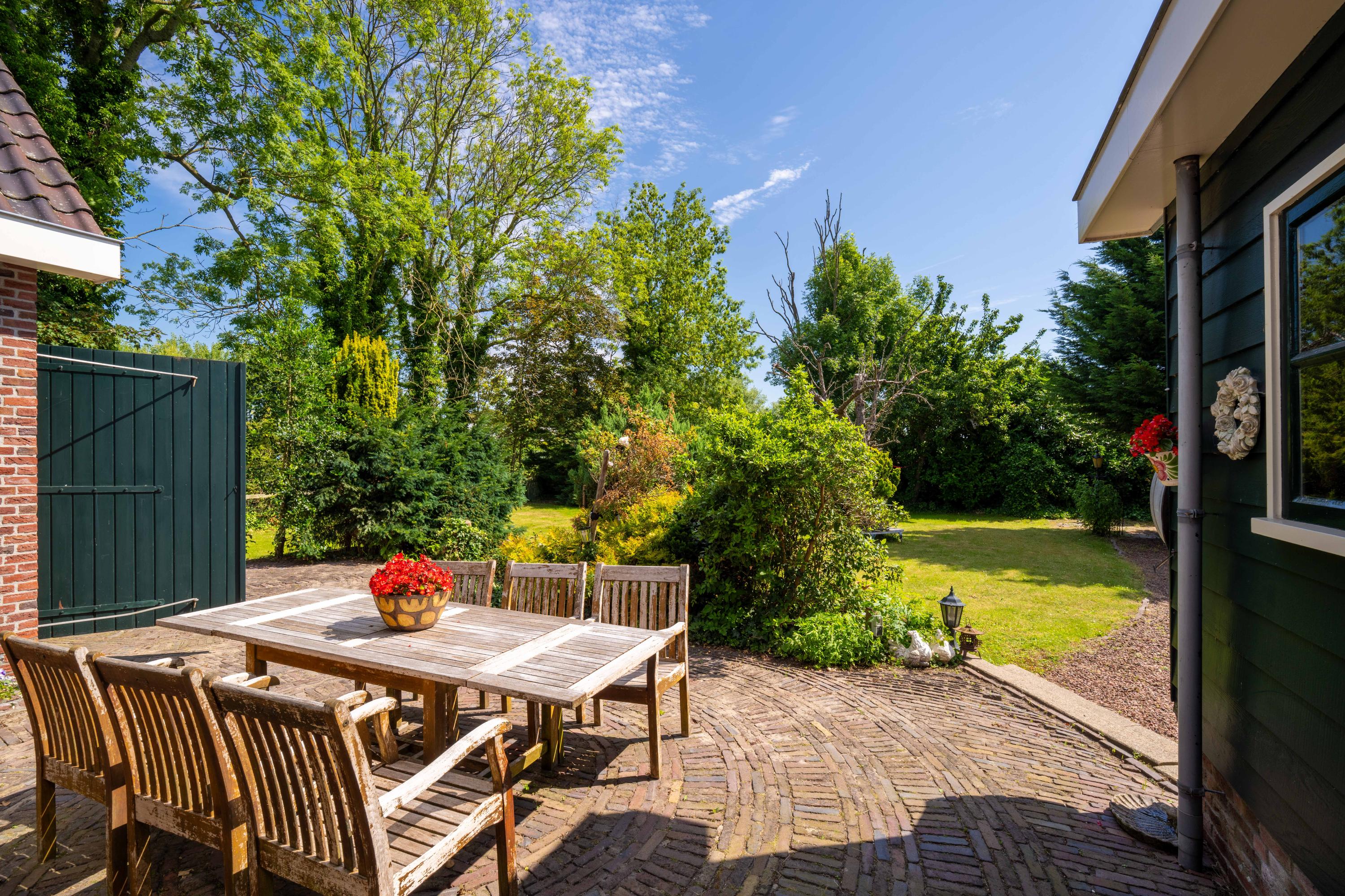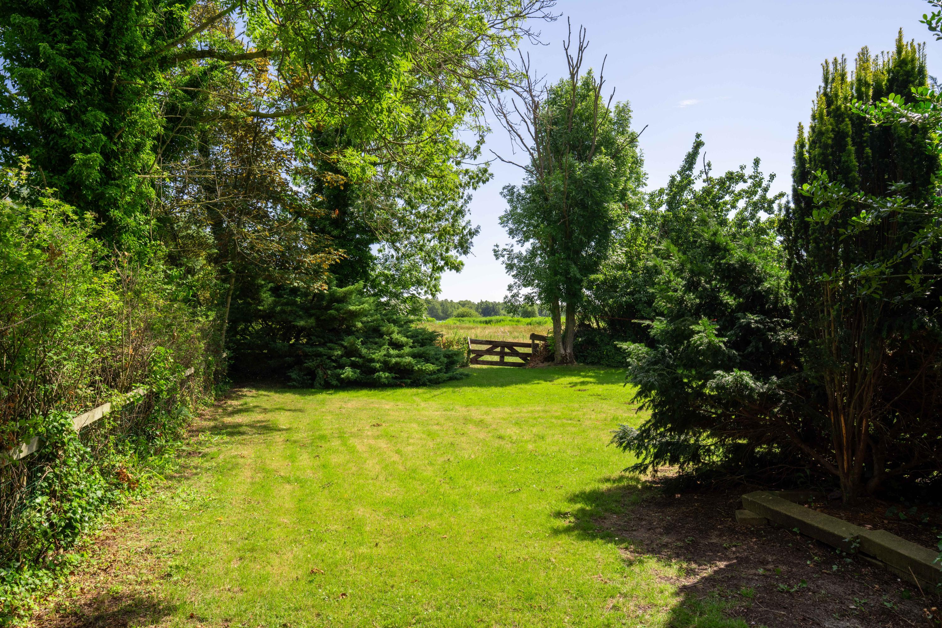 De kavel is echt goed ingedeeld. Een oude bomen opstand rondom het woonerf en en een open boerenweide aan de achterzijde. Sloten rondom, dus ideaal voor het houden van dieren op het erf, of wandelingen met je hond op je eigen terrein.