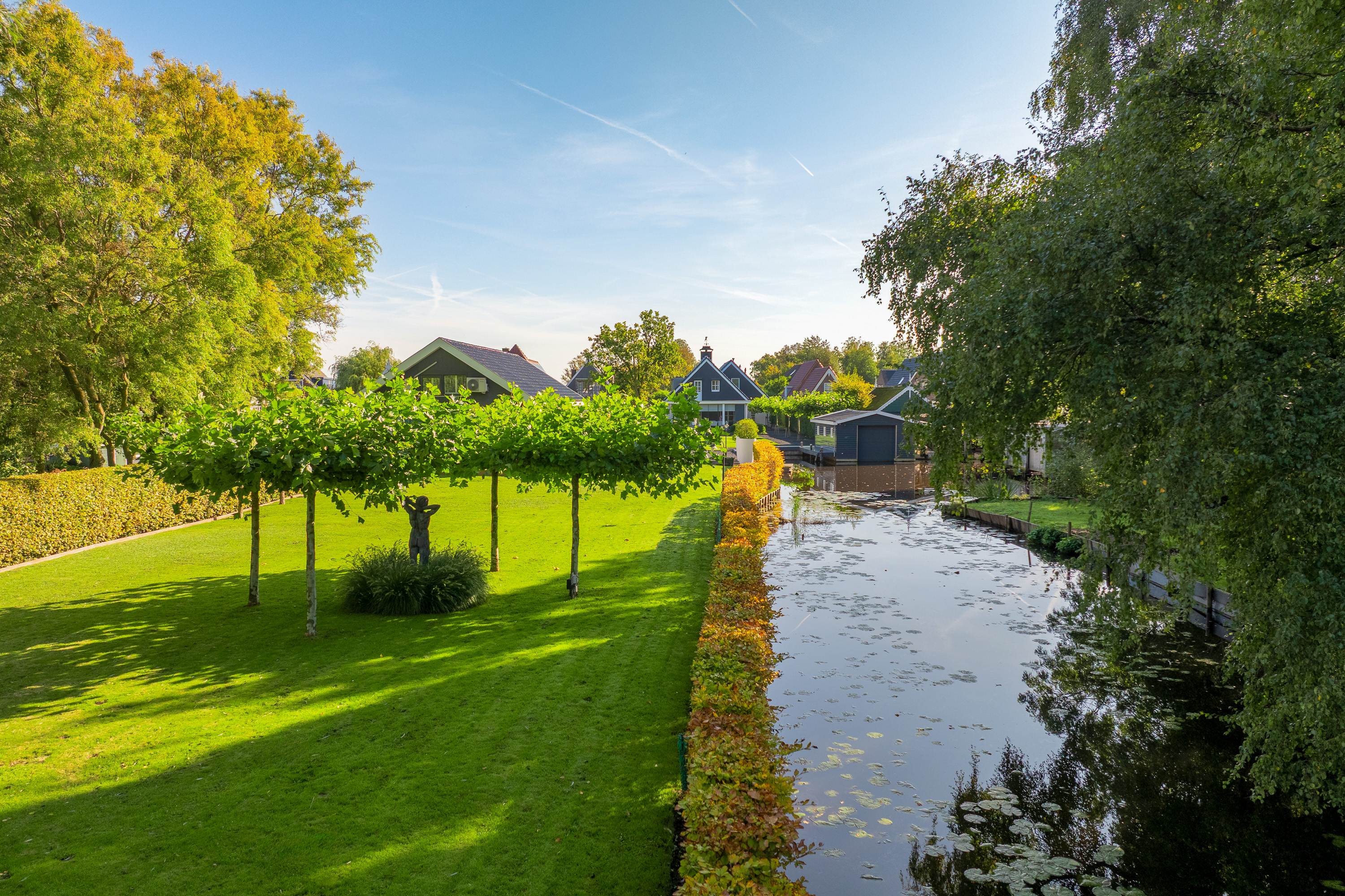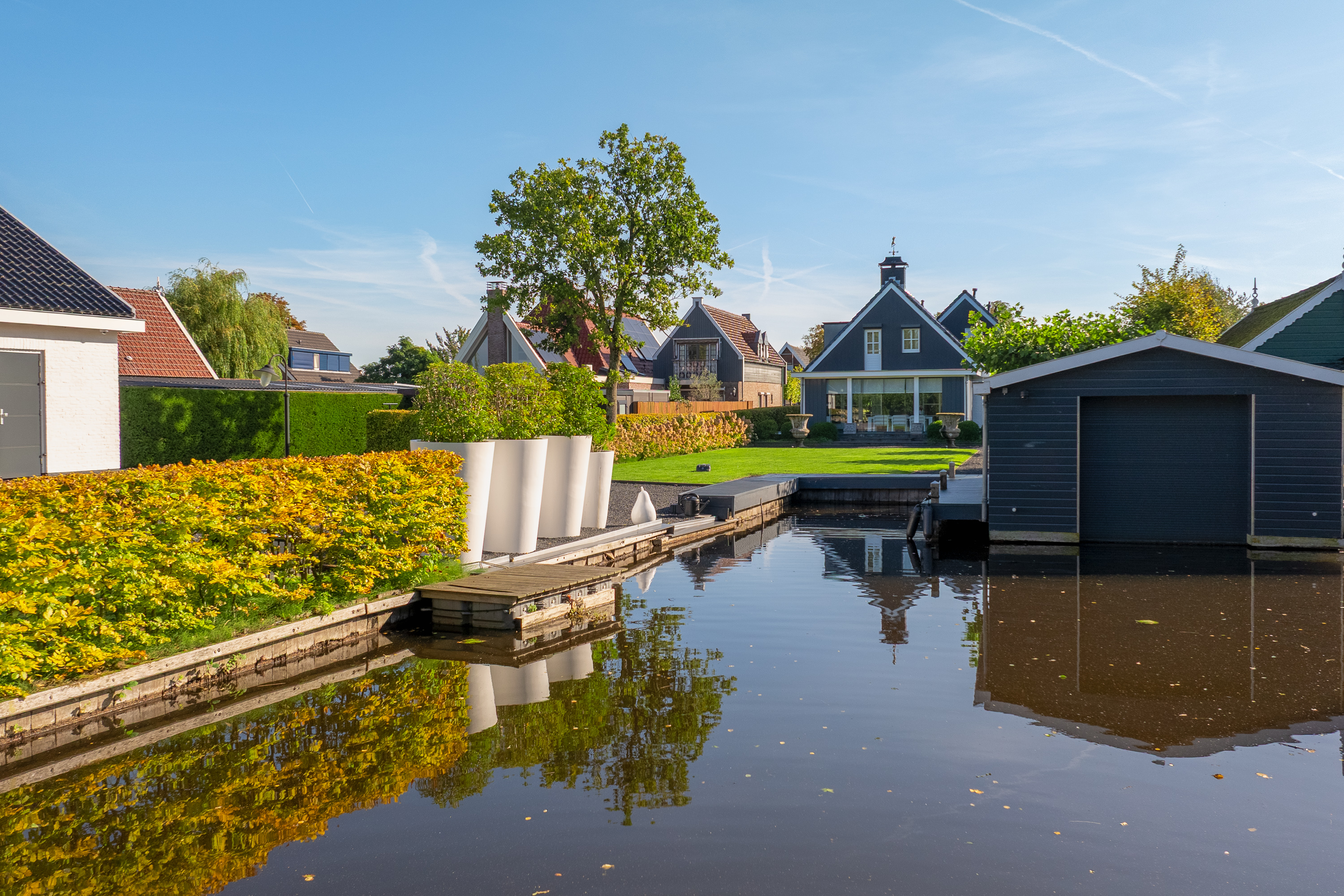 De fraai aangelegde tuin is een oase van rust en elegantie. Strakke terrassen, volwassen bomen en een perfecte oriëntatie op zon en water creëren een omgeving waar privacy en ontspanning centraal staan. Vanuit het eigen boothuis stapt u direct in uw sloep voor een tocht over open vaarwater – van Het Twiske tot de Amsterdamse grachten.