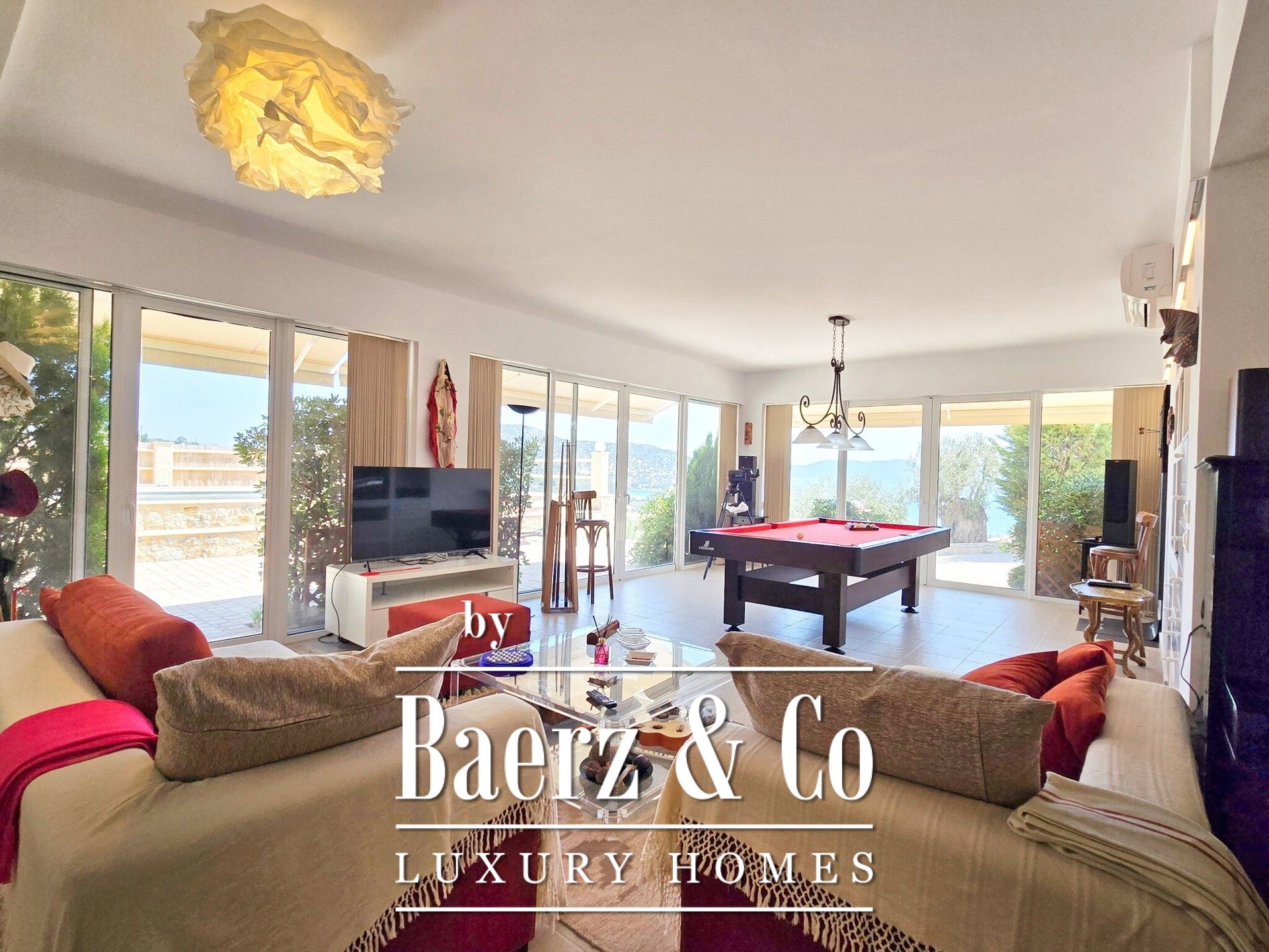 Villa Ermioni met zeezicht en een eigentijds ontwerp ligt op slechts 500 meter van de kustlijn in een van Ermioni’s meest serene en zorgvuldig onderhouden enclave, omringd door exclusieve vakantieverblijven. Deze villa van 296 m², verdeeld over twee niveaus, kenmerkt zich door rust, moderne mediterrane esthetiek en panoramisch zeezicht. Gebouwd op een fraai aangelegd en volledig omheind perceel van 2.000 m², weerspiegelt de woning een toewijding aan duurzame kwaliteit, comfort en ingetogen verfijning.
