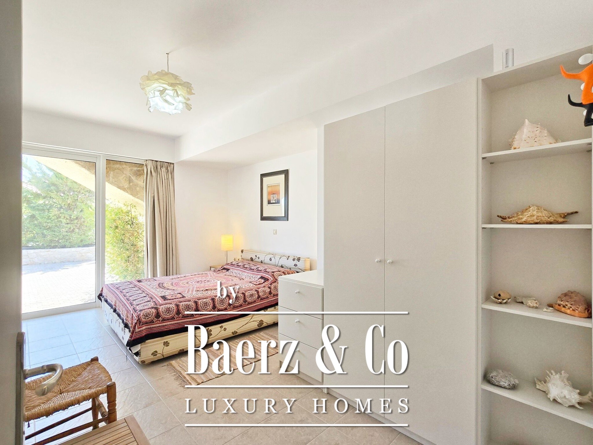Het gelijkvloerse niveau omvat een appartement van 123 m² met een lichte woonkamer, eetgedeelte en een keuken die naadloos overloopt in de tuin en het zwembad. Drie slaapkamers bieden direct toegang tot buiten, naast een badkamer met hammam en een tweede badkamer met sauna. Een extra zelfstandig appartement – ideaal voor personeel of flexibel gebruik – en 58 m² aan bijruimten waaronder een dubbele garage, berging en stookruimte maken dit niveau compleet.